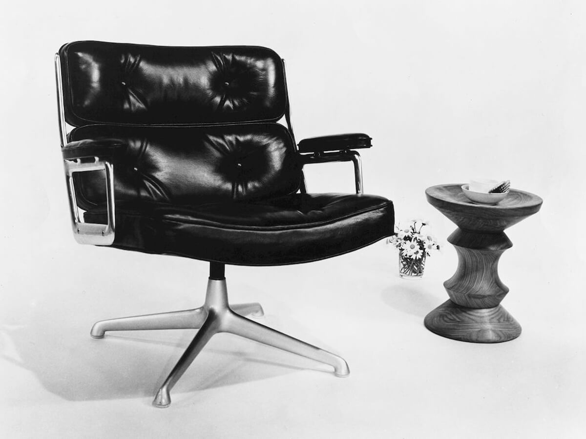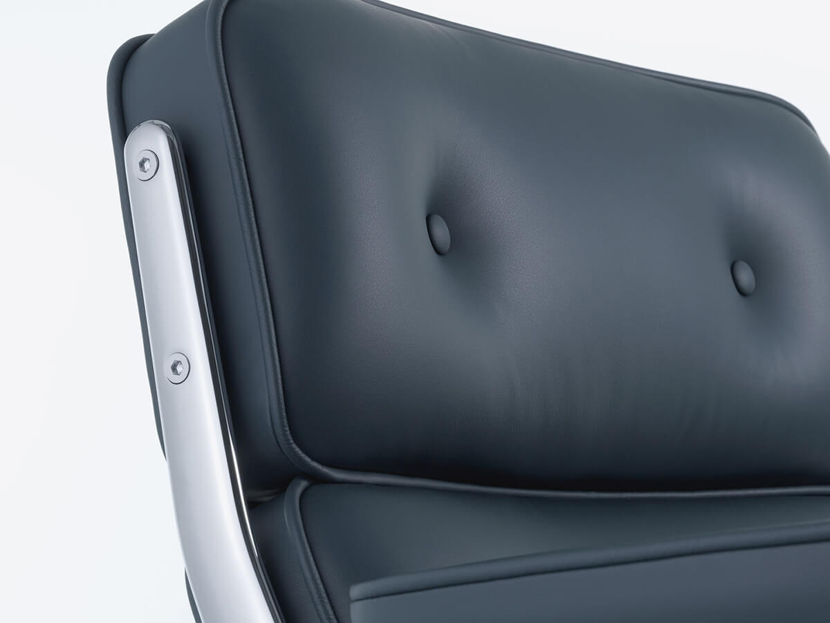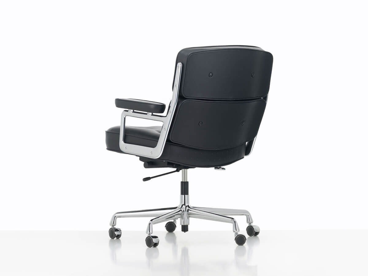The Lobby Chair ES 104 is a seat of great comfort. Originally conceived to furnish the lobby areas of the Time Life Building in New York, it was successful enough to deserve many versions that enriched the Vitra catalog from 1960 onwards. The Lobby Chair is currently available in three versions: the ES 104 office chair with wheels, the ES 108 conference chair with glides and the wider and lower ES 105 chair for lounges and waiting rooms. Ideal for classy office environments, it stands out for the attention to detail given to the large seat and back cushions, as well as to the refined shape of the armrests.