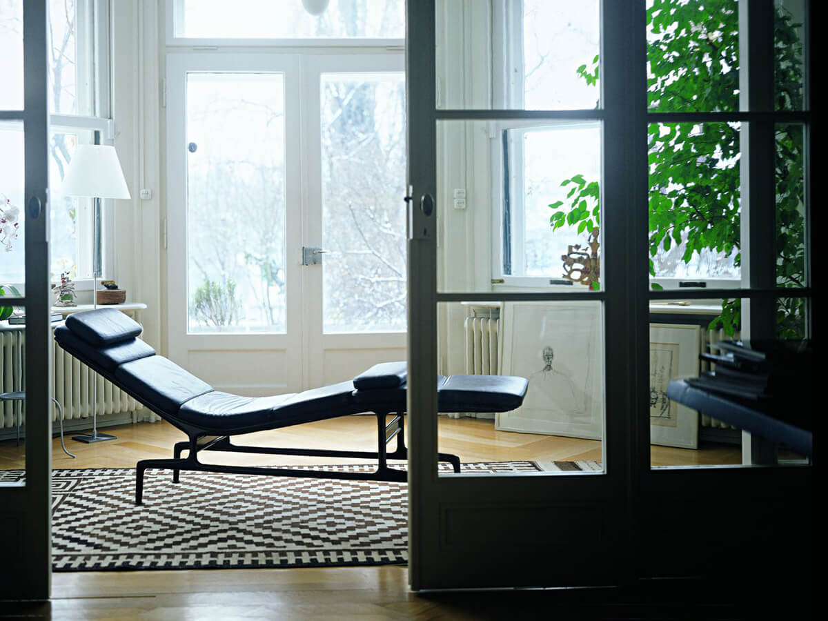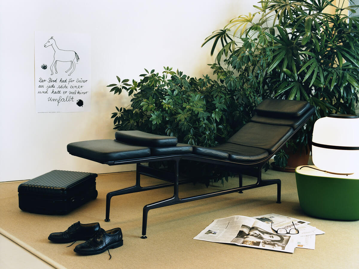 The Soft Pad collection boasts numerous seats where the cornerstone is comfort and extreme simplicity of shapes. The idea for the Soft Pad Chaise came from director Billy Wilder, a long-time friend of Charles & Ray Eames, looking for a recliner to doze off during breaks. The result was in 1969 a model which in terms of shape and construction is very reminiscent of the design of the Aluminium Group. Of that series, the Vitra product retains its aesthetics while improving its quality and above all its comfort. Six cushions joined by zippers are fixed to the aluminium frame with movable cushions created to ensure extra comfort for the body.