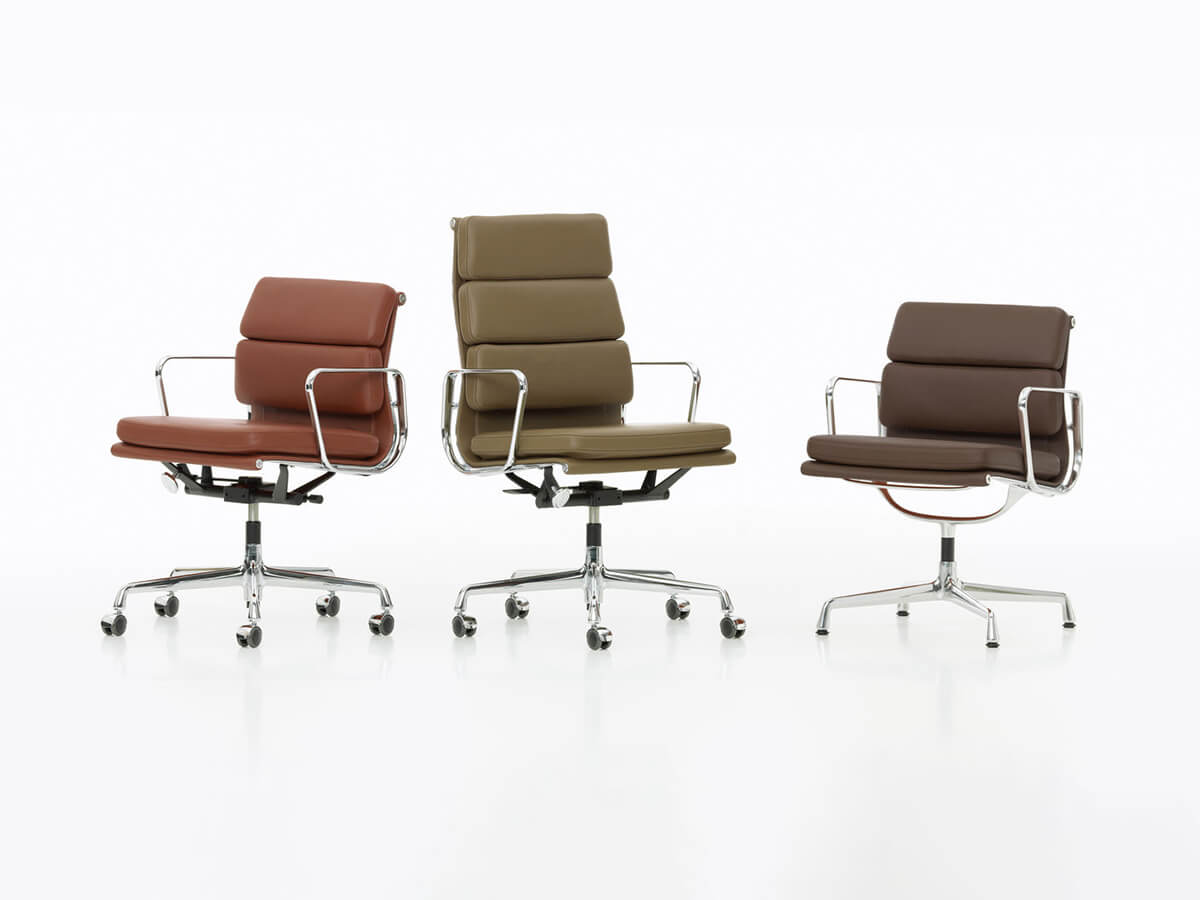 Soft Pad is a dynamic seat, where style blends with attention to detail. Comfortable and functional, it succeeds in the difficult task of combining design and technology in a single piece of furniture. The Pad series of chairs designed by Charles & Ray Eames are available in numerous versions with or without armrests and high or low backrest. We mention here the EA 205-207-208-216-215 where all the conformations appear. There is a further differentiation for the EA 217-219 swivel models where the most important mechanical structure further improves the comfort performance of the entire seat. The leather upholstery guarantees maximum wear resistance.