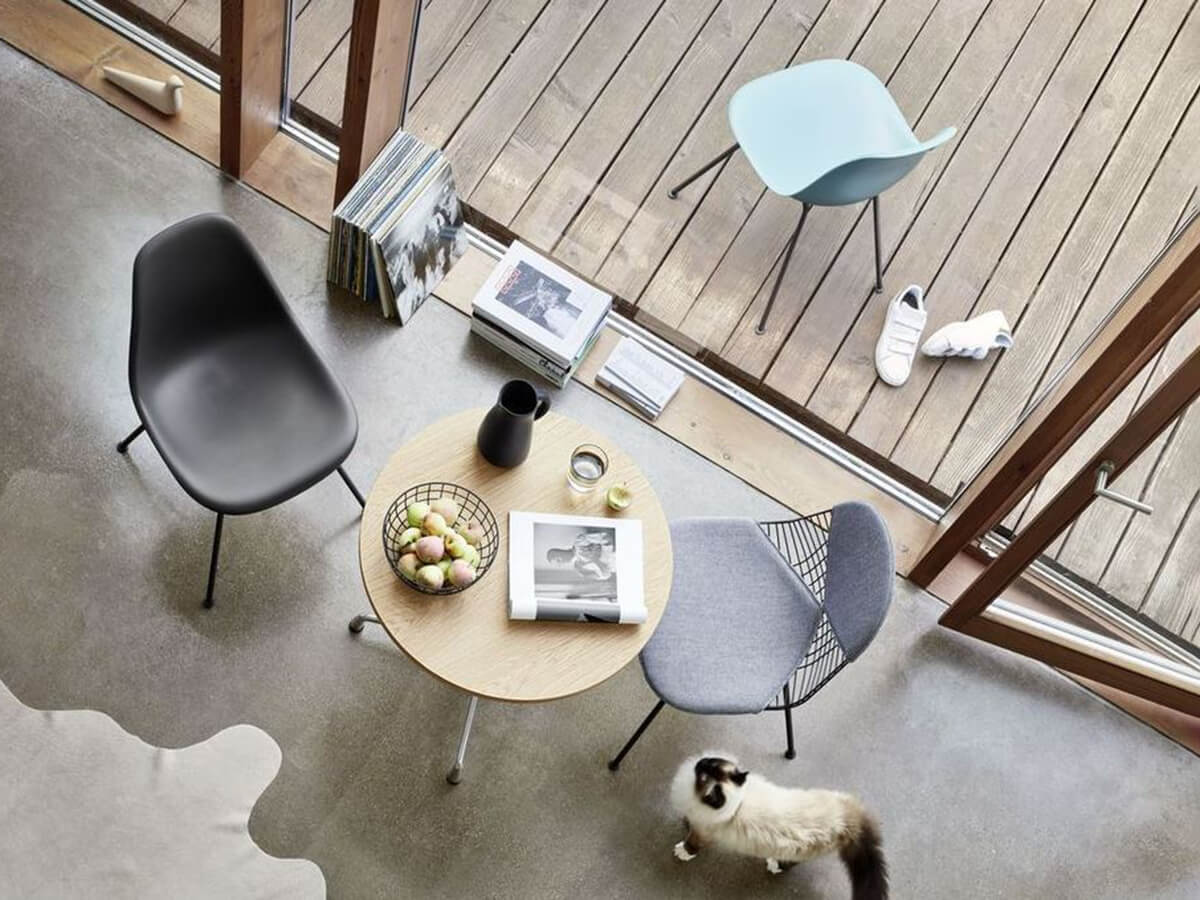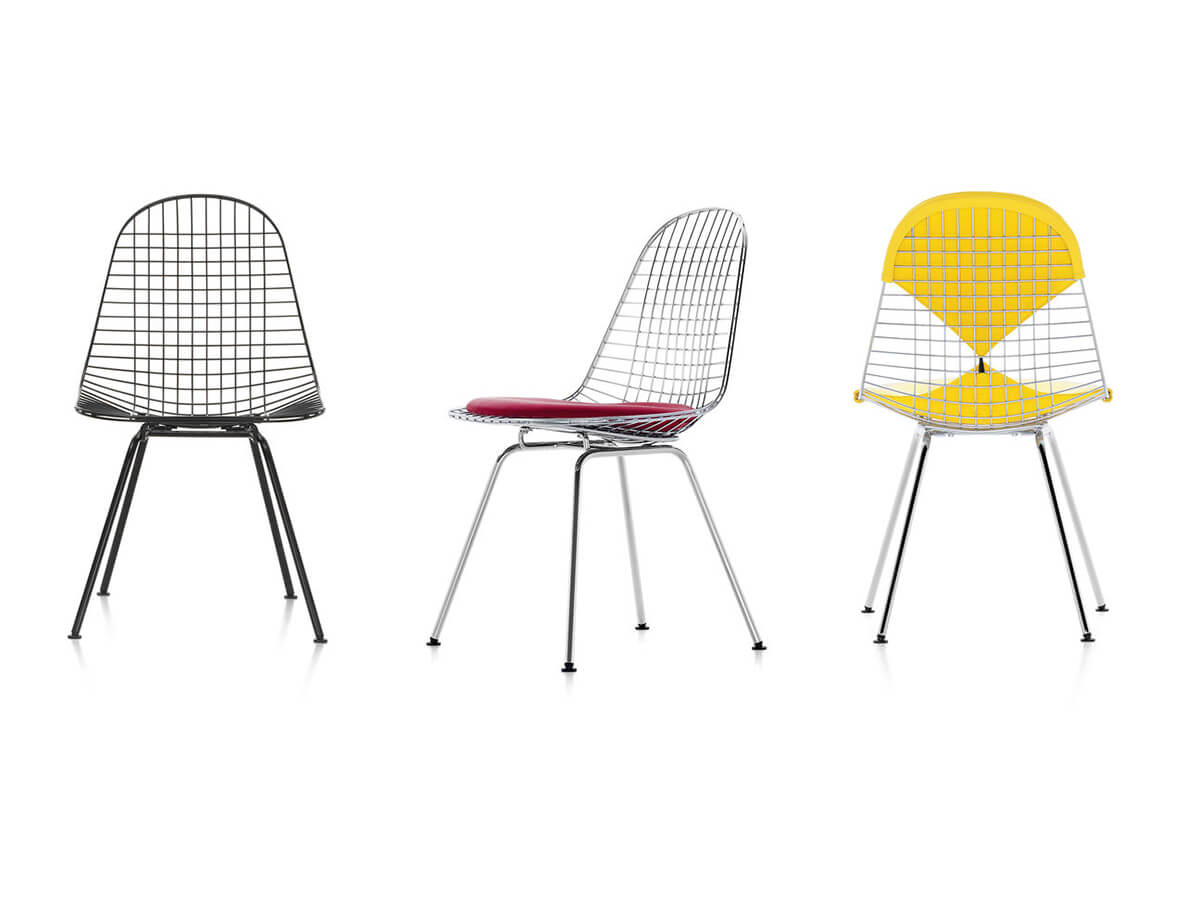 Wire Chair represents an elegant variation of the famous Eames Plastic Chair designed by Charles and Ray Eames. The shell can be combined here with a variety of bases and customized according to taste, including or not the padding, seat and back cushion. The steel mesh of the backrest gives an unnatural lightness to this model, depriving it of the solidity of the body but of retaliation enriching it with a new versatility that also lends itself well to outdoor use. Among the numerous variants we mention the DKR, the DKW and the DKX, personalizations of a taste that Vitra has been able to make unmistakable over the years.