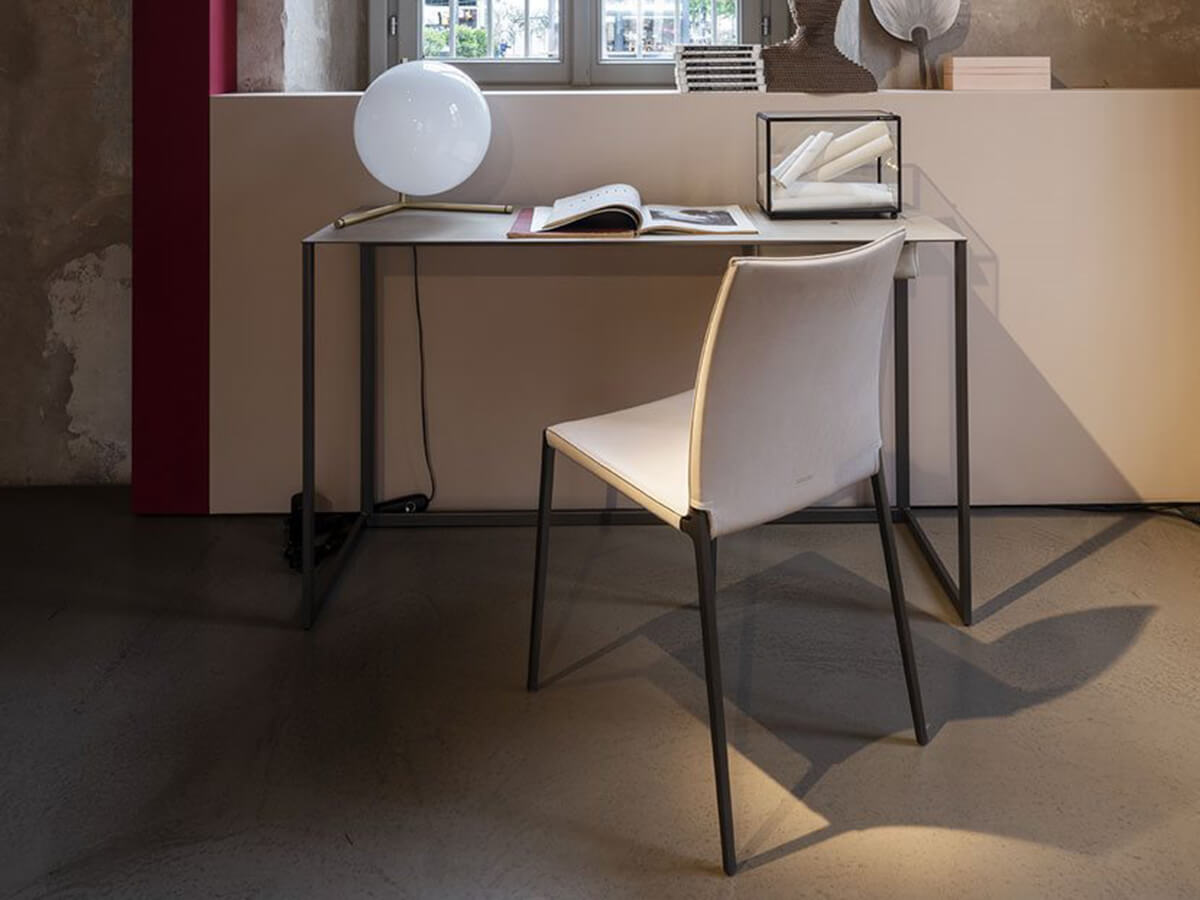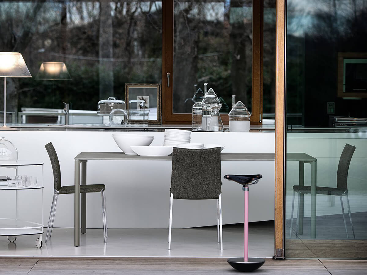 Lia is a chair with a sophisticated and essential design, capable of adapting to the needs of the modern home, where spaces perform not only aesthetic but also utility functions. Lia is a modern seat whose aluminum structure binds perfectly to the removable cover in fabric or leather. Lia 2086 and Lia 2088 are variations of the same chair, created to accommodate armrests and different finishes. The beauty of this Zanotta product arises not only from the attention to detail, but also from the extreme quality of the materials used.