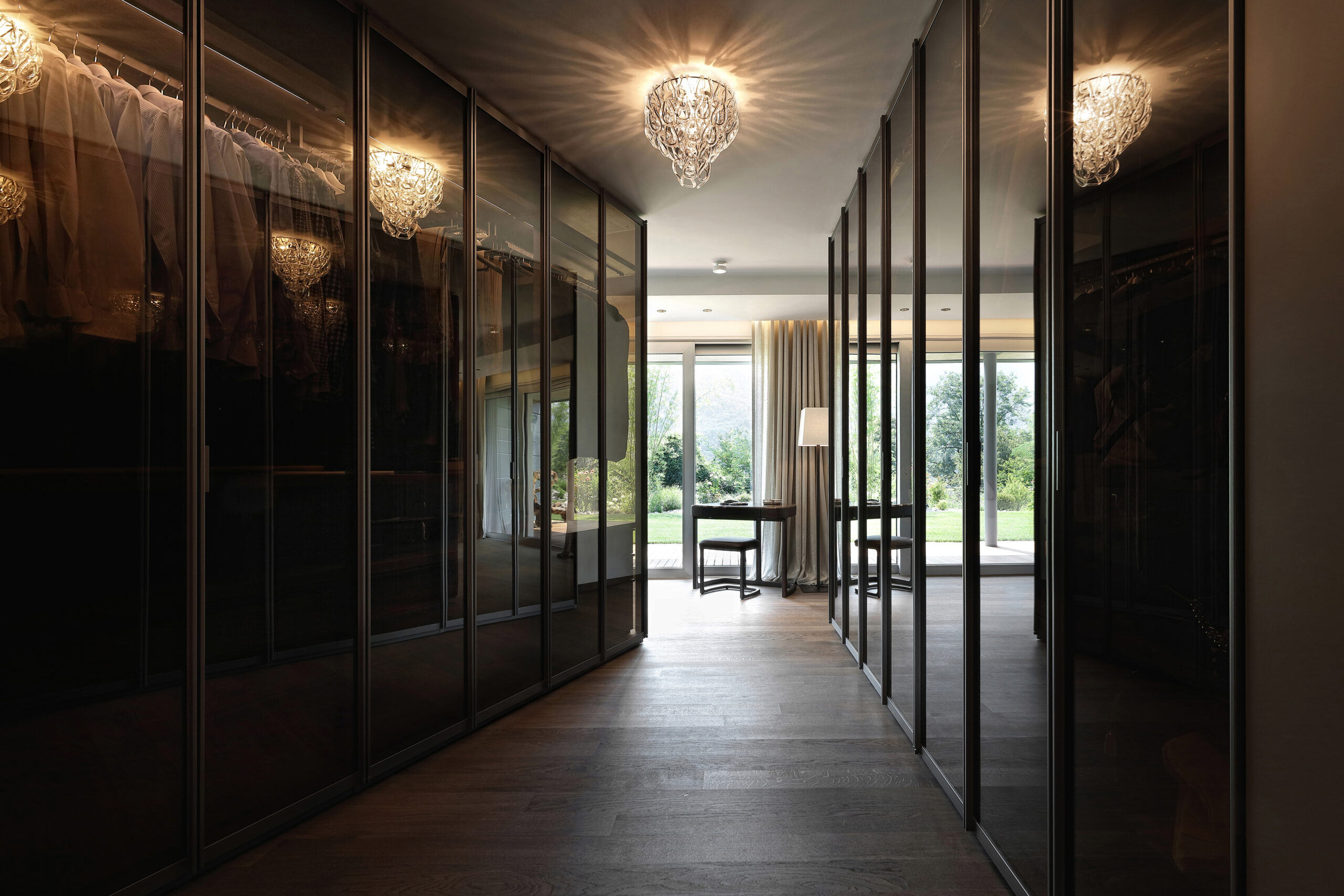 There is no lack of distinctive elements such as Porada’s vanity with Maskara pouf or Cattelan Italia’s Qwerty desk, perfect for giving a final touch to the environment. The large Ego wardrobe by Poliform and the Glo Ball lamps by Flos complete this assortment of spaces, unique also thanks to the choice to turn to an artisan for the match of the beds.