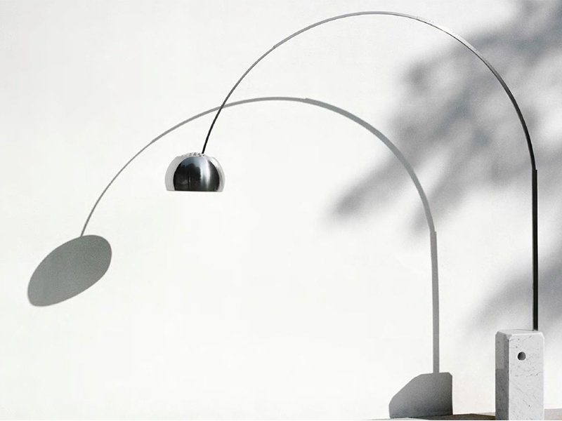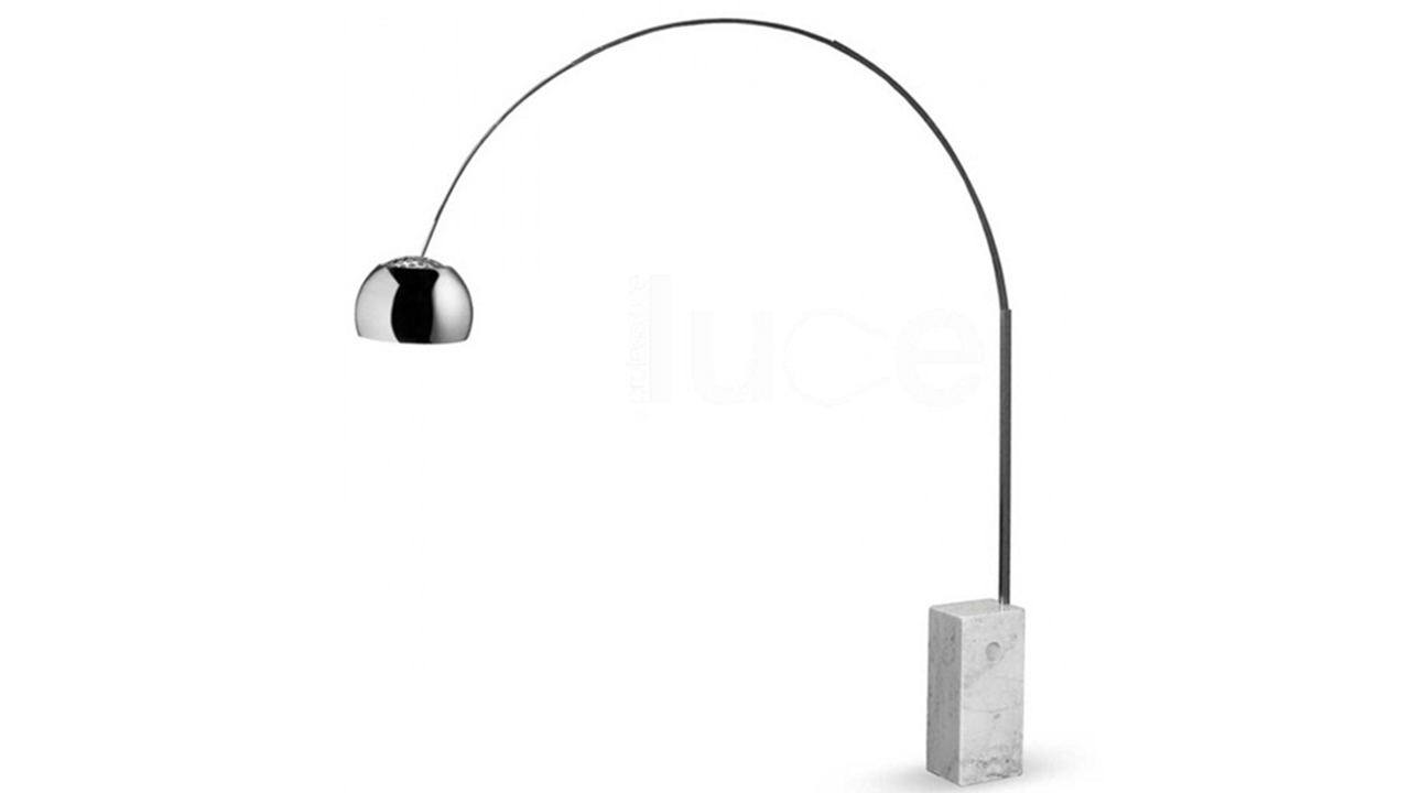 La lampada da terra Arco, prodotta da Flos a partire dal 1962, è probabilmente l’arredo di illuminazione più famoso al mondo. L’idea su cui si basa è estremamente semplice: fornire una fonte di luce sospesa perpendicolarmente sopra il punto da illuminare senza doverla ancorare al soffitto. Questo scopo viene raggiunto tramite una struttura funzionale e completamente priva di fronzoli, dove da una solida base in marmo si innalza un arco metallico che culmina con la cupola in cui è alloggiata la lampadina.