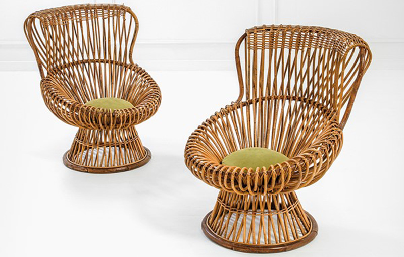 Con Margherita Albini realizza quasi un omaggio alla tradizione dell’artigianato popolare, elevando un materiale tradizionalmente povero e rendendolo partecipe di una ricerca formale in linea con le sperimentazioni condotte oltreoceano dagli Eames o da Eero Saarinen. Mentre questi ultimi si concentravano sulla plastica, che per il suo stampaggio necessitava di costosi macchinari difficili da reperire in un’Italia da poco uscita dalla Seconda Guerra Mondiale, Albini recuperava invece la tradizionale tecnica manuale dei cestai coniugandola però con raffinati principi ingegneristici.
