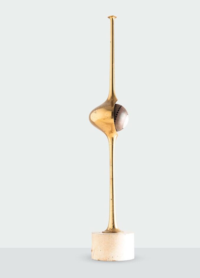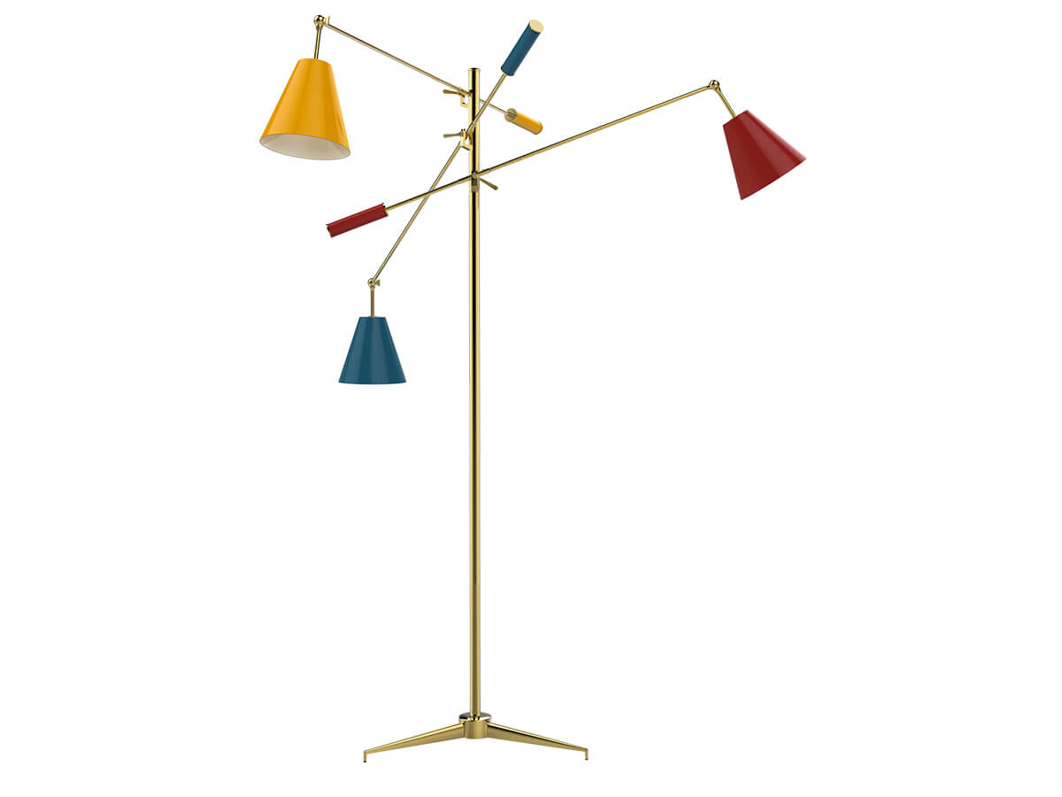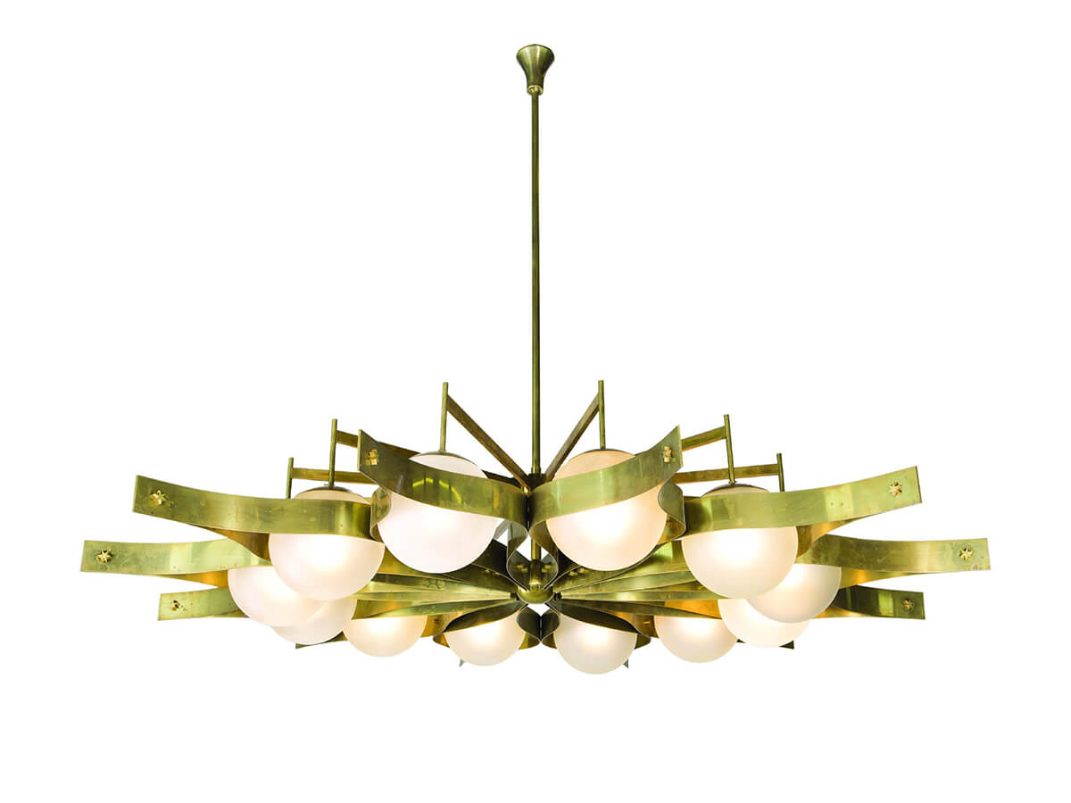 Arredoluce annovera nel proprio catalogo pezzi iconici come la lampada da terra Triennale di Angelo Lelii, presentata alla VII Triennale di Milano nel ’47 e da allora diventata archetipo della lampada italiana. Non meno rilevante è la lampada Stellina, disegnata nei primi anni ’50 e dotata di paralume smaltato che si alza e abbassa così da regolare l’intensità della luce. Una vera e propria opera di settore è però la lampada da soffitto Pavone, frutto del sodalizio fra Angelo Lelii e Gio Ponti e formata da due cerchi concentrici di sfere illuminanti sorretti da una complessa struttura a ogive d’ottone. Pavone è insieme gioiello e arte allo stato puro, un elemento che non passa inosservato in qualunque ambiente la si collochi. Rilevante anche la Cobra, a metà fra lampada e scultura dal plastico verticalismo. Argo nasce nel 1963 da un’ispirazione botanica. Il corpo centrale si compine di una sfera illuminante trattenuta da una struttura in ottone.