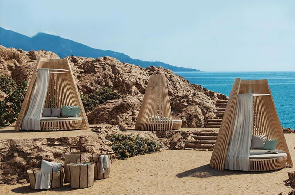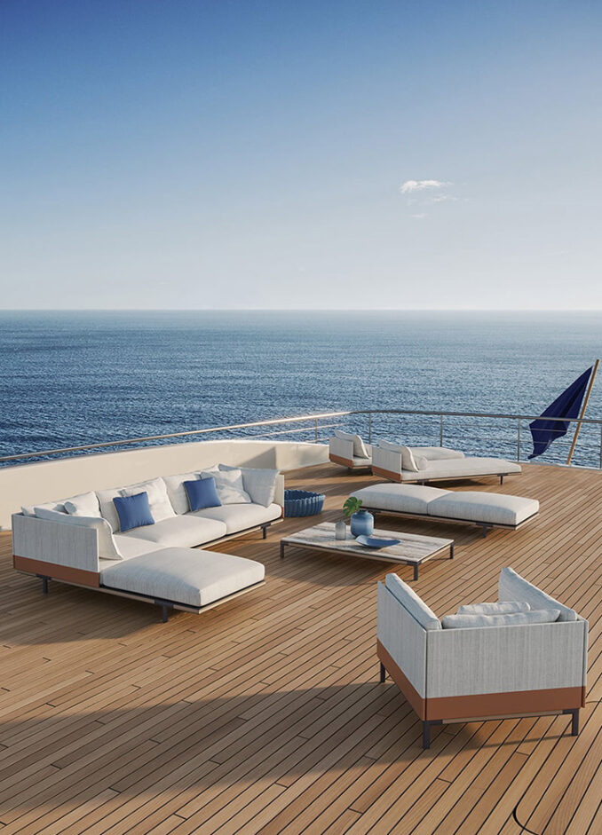 I materiali utilizzati da Ethimo variano a seconda dell’esigenza e dimostrano la grande capacità aziendale di adattare il proprio ciclo produttivo a gusti ed evenienze. Alluminio e teak si innestano a intrecci di corda e tessuti idroresistenti senza per trascurare pietra e marmi, plastiche e molto altro ancora, in un vero e proprio viaggio nella sperimentazione e nell’innovazione. Non meno rilevanti le varianti di gusto, che vivono di forme geometriche e arrotondate, di fibre sottili e spessorate a seconda dell’arredo scelto.