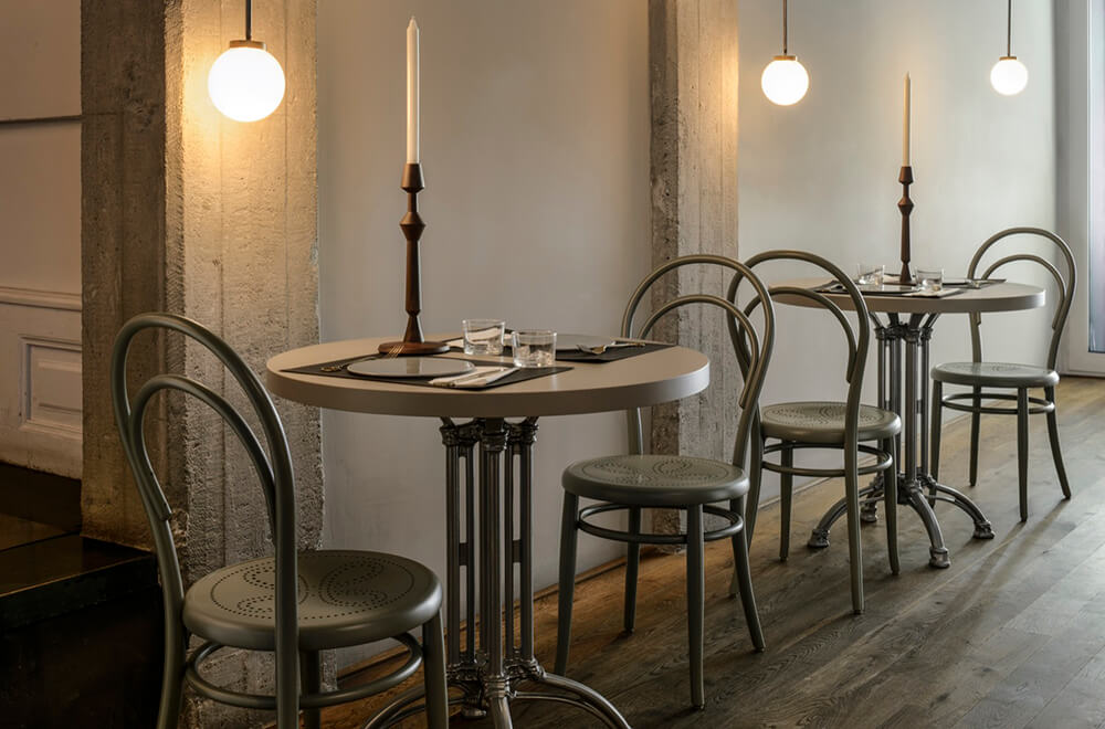 Il tradizionale legno curvato rimane al centro del catalogo Gebrüder Thonet Vienna, ma viene affiancato da sperimentazioni con nuovi materiali come il rivestimento in pelle delle sedie Twiggy. Il nuovo quartier generale ha sede a Torino e la maggior parte dei fornitori sono scelti in Friuli, terra già parte dell’impero austro-ungarico da cui provenivano molti storici collaboratori di Michael Thonet e dove vengono utilizzate tecniche di lavorazione sostanzialmente immutate rispetto a quelle dell’Ottocento.