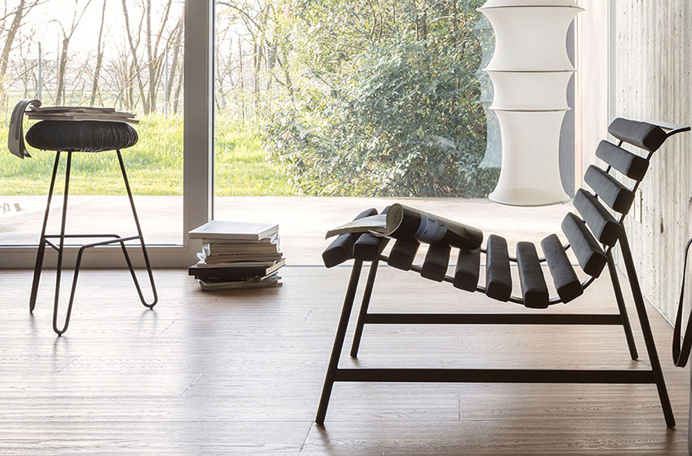 Fra le numerose proposte è doveroso citare il sapiente utilizzo che Mogg fa sia del legno che del metallo, dando vita a oggetti di incredibile bellezza che non trascurano mai un tocco ironico, un riferimento giocoso a geometrie o ispirazioni di altro genere come gli appendiabiti Match che ricordano dei fiammiferi o le lampade Madama che riproducono la silhouette di donne in abiti eleganti. Mogg però si spinge ancora oltre, proponendo elementi dal design che sfidano le convenzioni, come le librerie Mama’ e la cassettiera OrdinaryDay che ricorda una catasta di legna disposta su bancali.