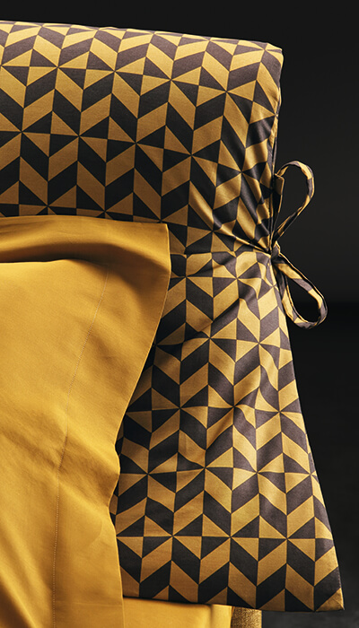 I rivestimenti sono stati scelti dalla palette “Antique Gold” della collezione rivestimenti/biancheria Flou 2018.