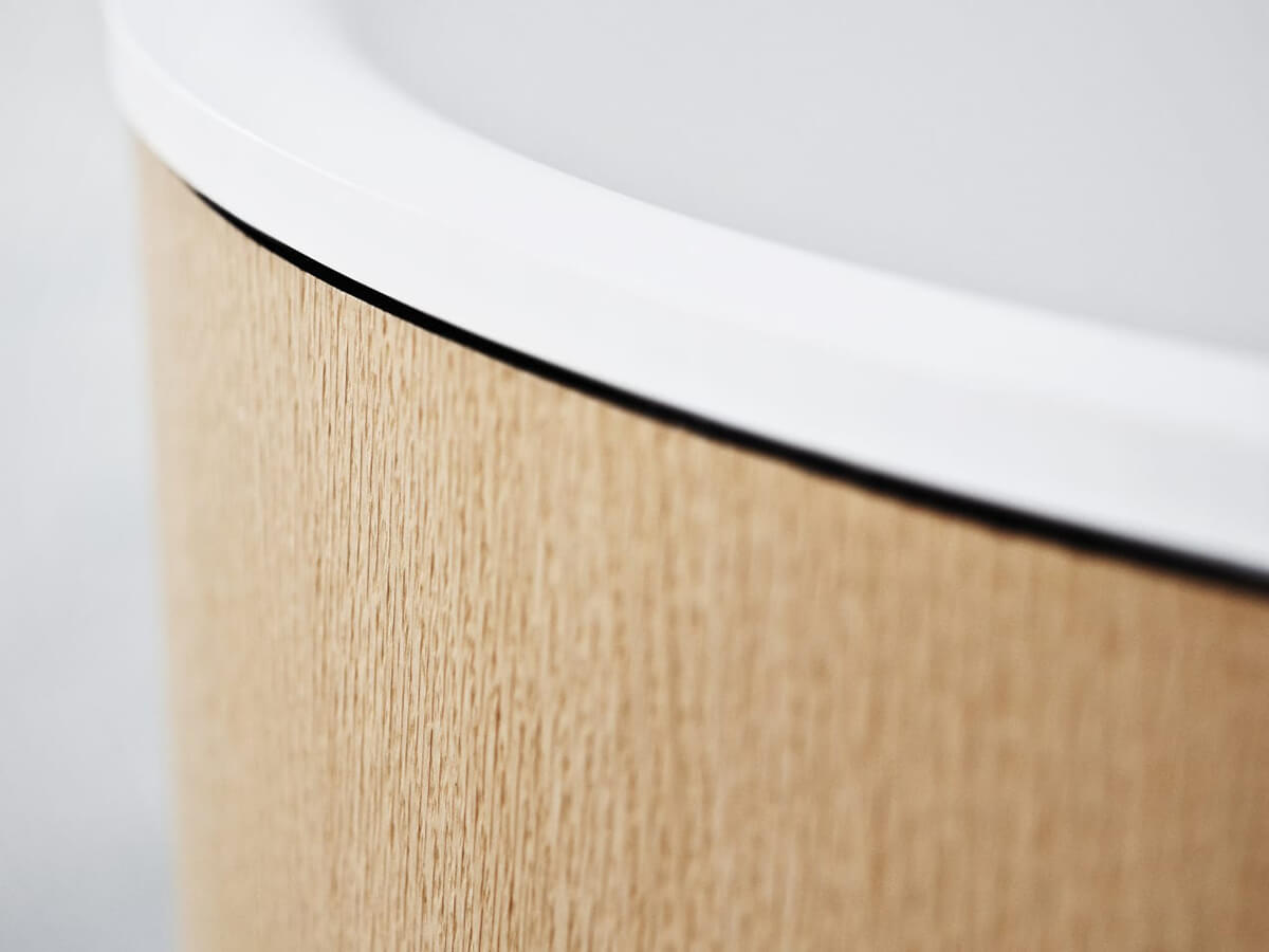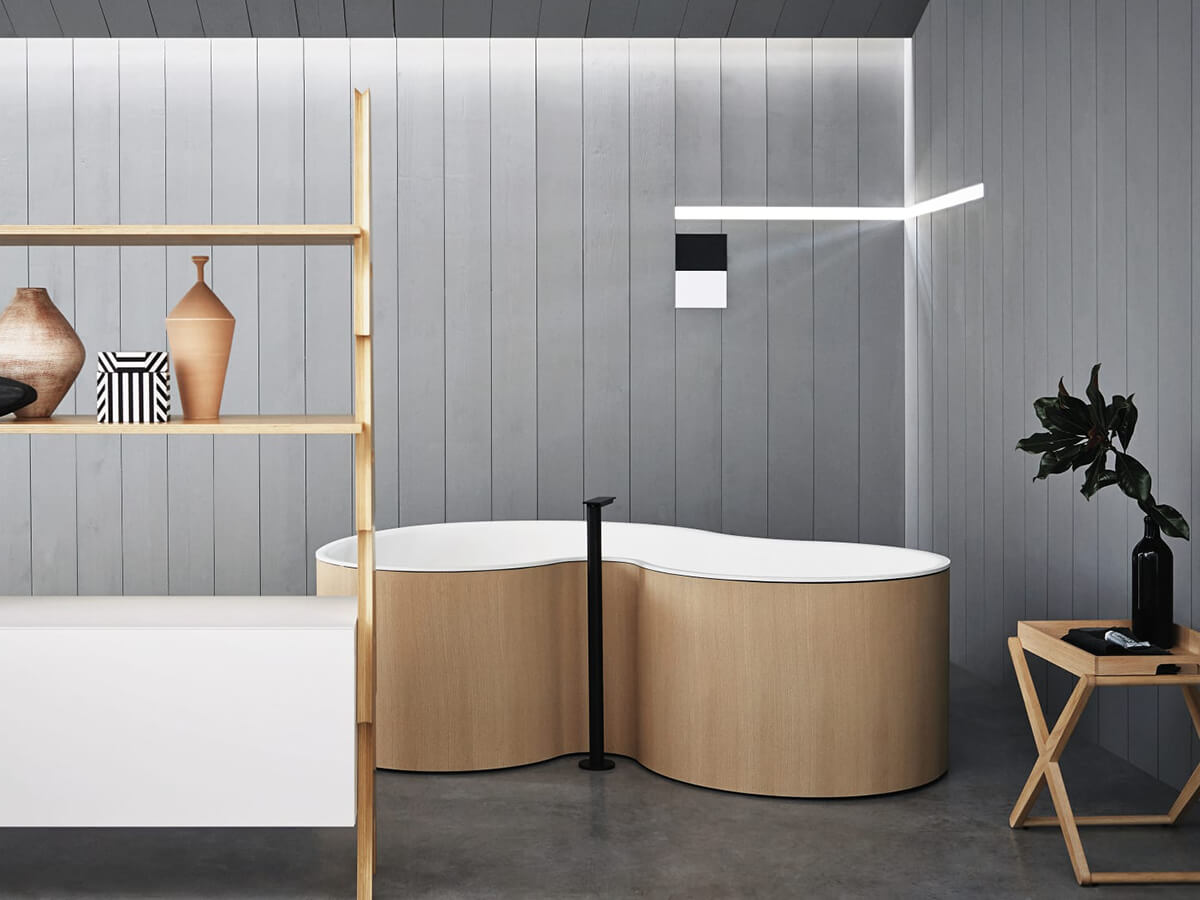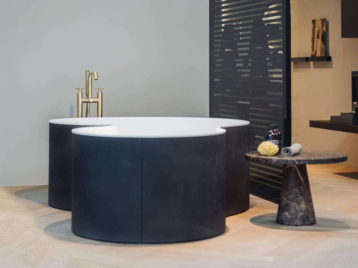 La vasca DR, firmata per Agape dallo studio brasiliano M27 di Marcio Kogan e Mariana Ruzante, è composta da anse sinuose e imprevedibili che le conferiscono un aspetto organico e naturale, simile a una frastagliata linea di costa. Amichevole e accogliente, DR è disponibile in diverse configurazioni: può essere infatti presentata ad incasso nel pavimento, con un effetto fortemente scenografico, oppure in una configurazione self standing nella quale il bacino interno in Solid Surface è ricoperto all’esterno con del legno curvato. È inoltre disponibile anche nella versione DR Cemento, adatta per gli ambienti esterni, anche questa configurabile anche in una versione ad incasso che prende le forme di una piccola piscina.