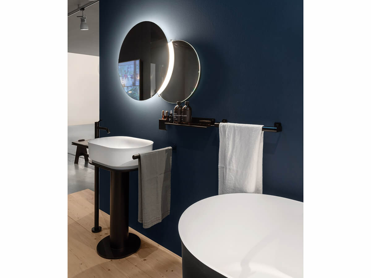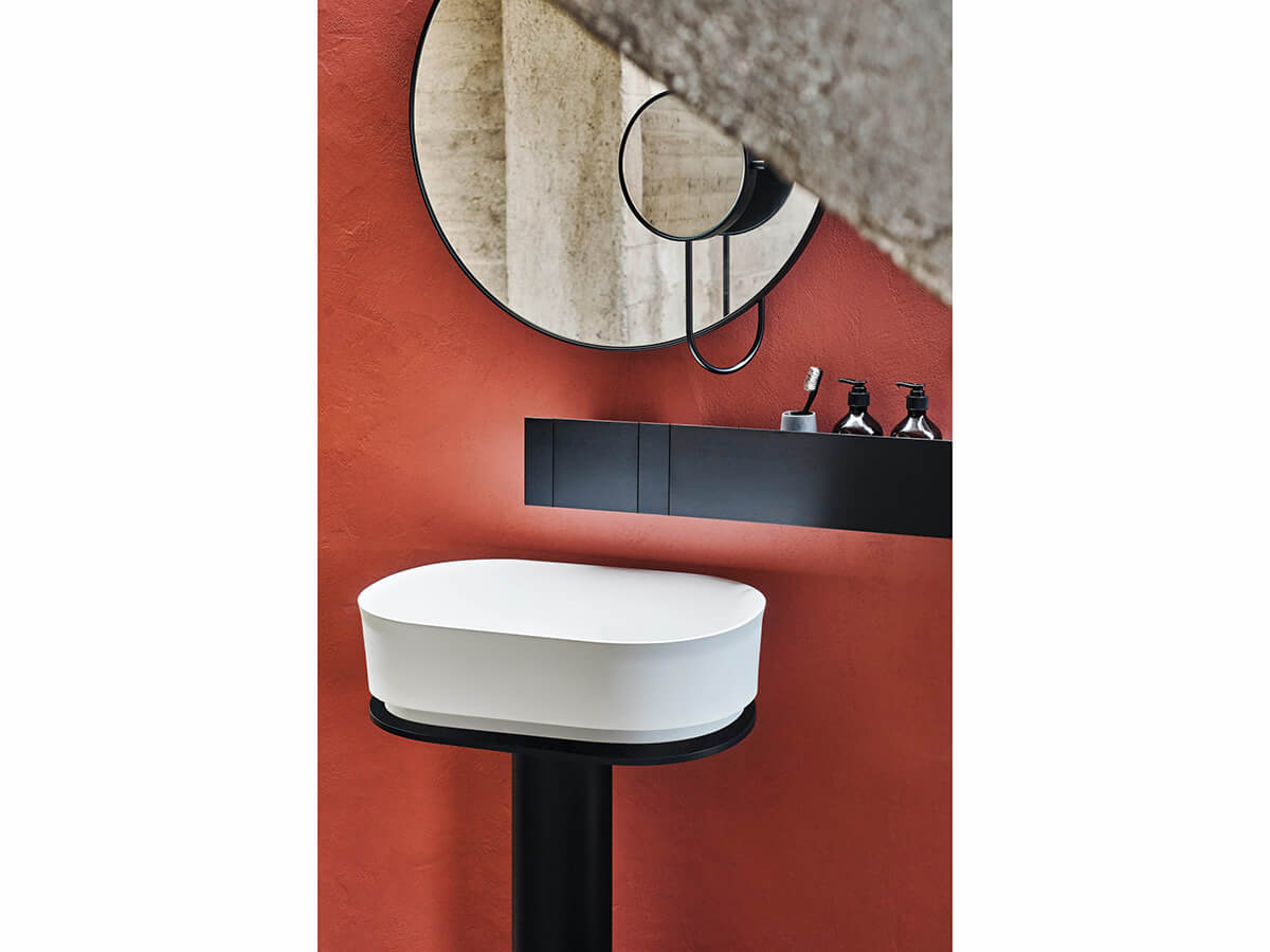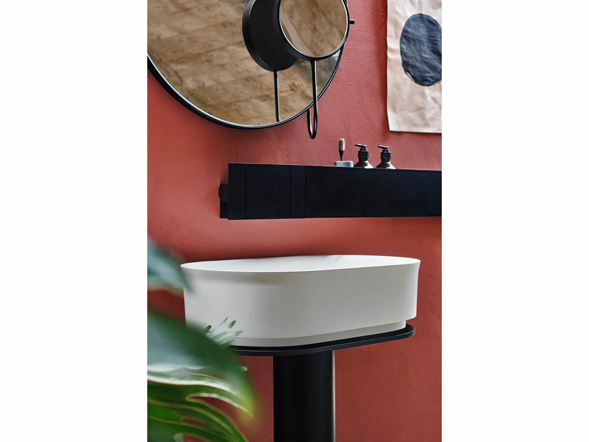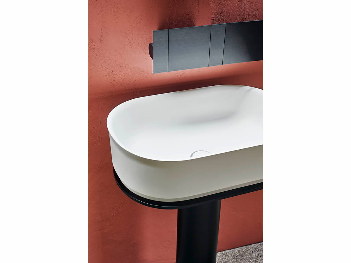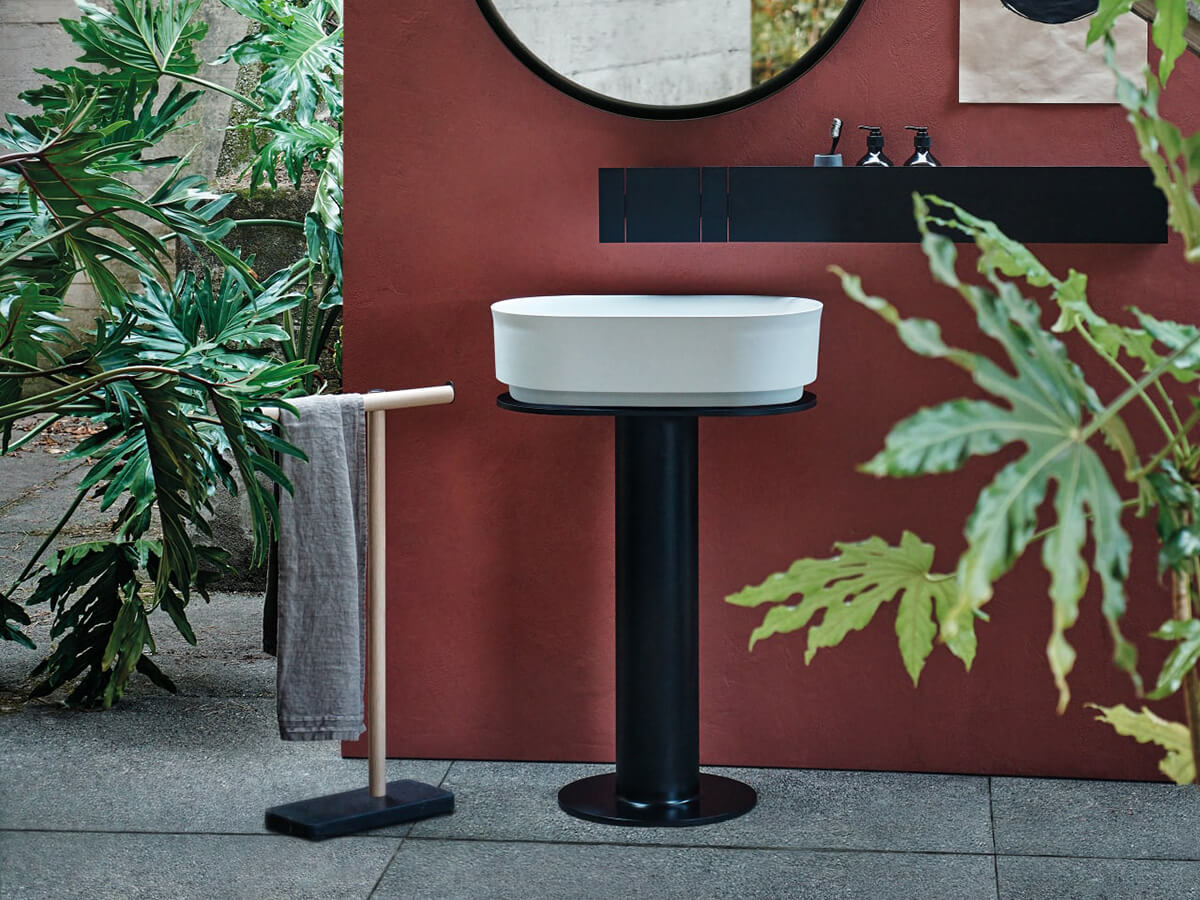 Il lavabo da terra Immersion di Agape è disegnato dallo studio cinese Neri&Hu, capace di infondergli una certa solennità quasi sacrale ma infusa di grazia, di gusto inconfondibilmente orientale. Il tutto racchiuso in un segno che rifugge ogni facile esotismo, ma anzi all’insegna di un design austero e minimalista rafforzato da una scelta cromatica giocata sul contrato fra il nero del pilastro di sostegno e il bianco (o il grigio) del bacino lavamani. Realizzato in un materiale pratico e resistente come il Cristalplant, presenta anche un ingombro limitato che lo rende adatto anche all’uso in ambienti di piccole dimensioni.
