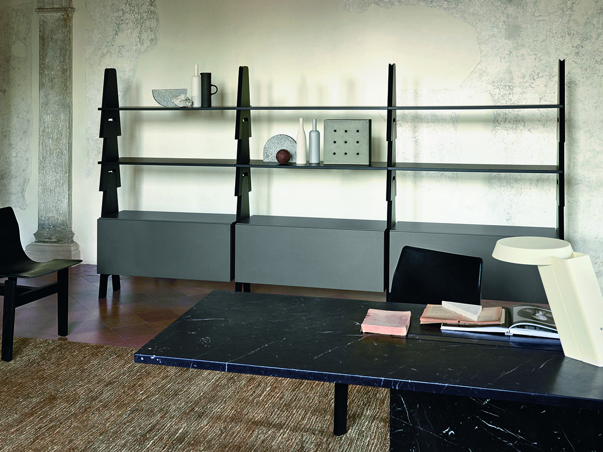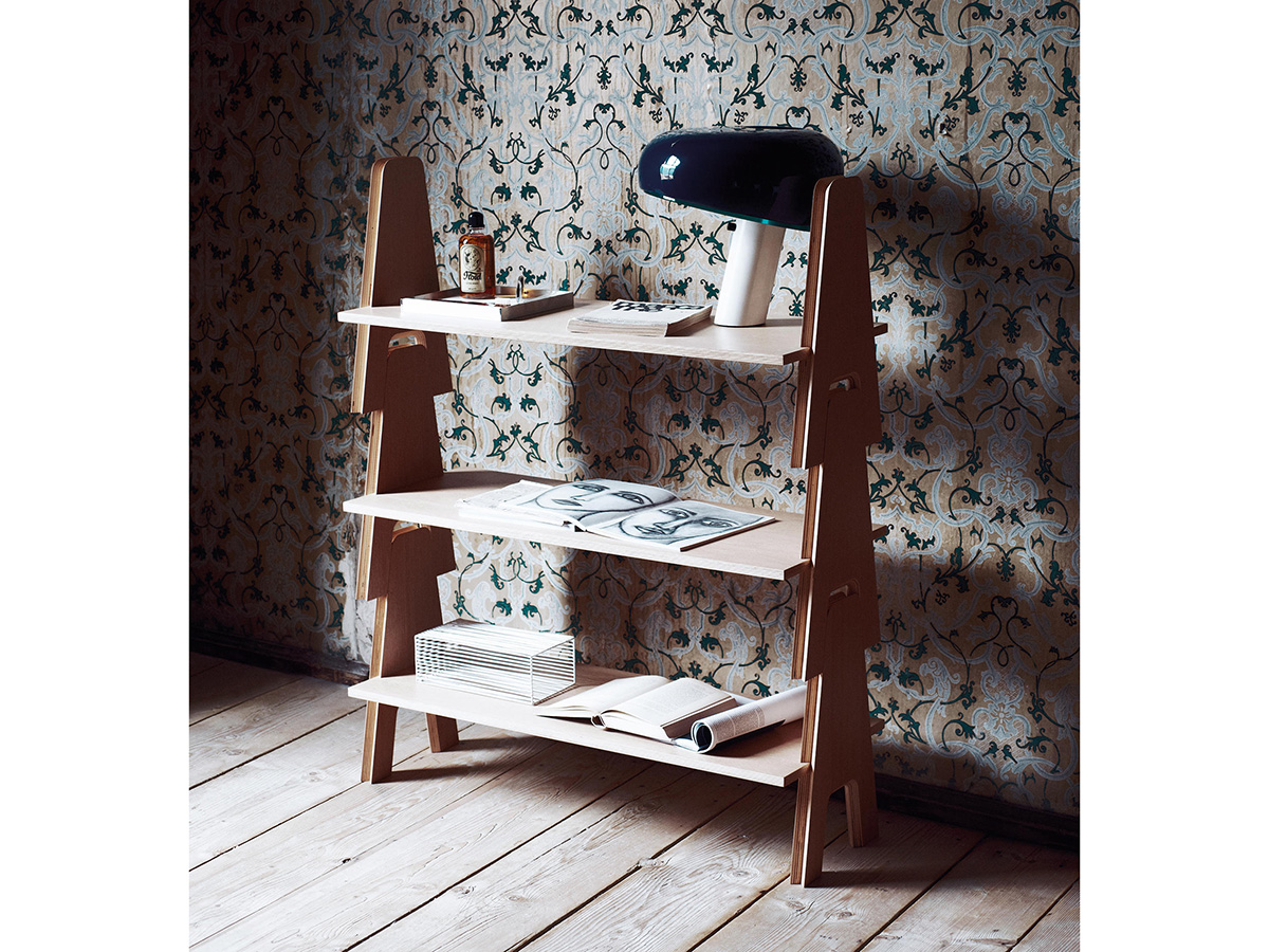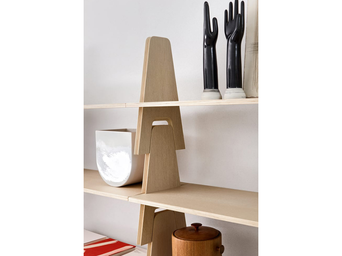 Un arredo che ben si adatta alle esigenze della casa moderna e del nostro vivere contemporaneo. Cavalletto è un sistema d’arredamento interamente realizzato in legno e immaginato con una capacità avveniristica che ancora oggi, cinquanta anni dopo il suo rilascio sul mercato. non smette di stupire. Il modulo caratteristico di Cavalletto è un elemento a dalla particolare forma a V rovesciata, sovrapponibile mediante un semplice giunto a gravità che può accogliere piani per librerie o contenitori chiusi. L’incastro è a coda di rondine, ideale per distribuire il peso e rendere agevole il montaggio. La peculiarità di questa libreria è ancora oggi apprezzata in diversi ambienti della casa e situazioni contract.