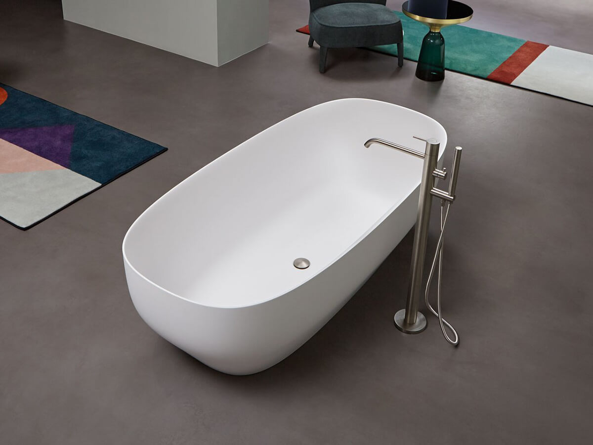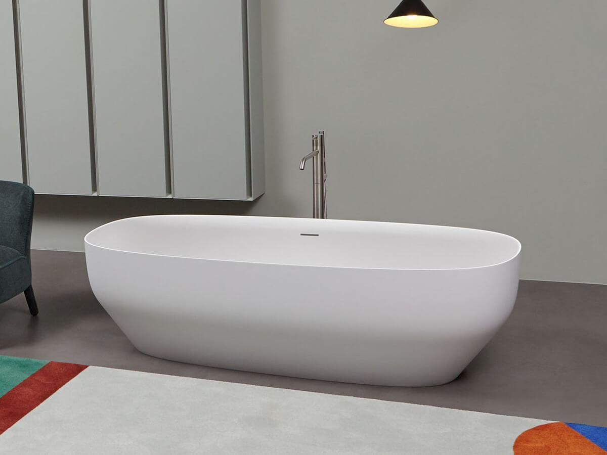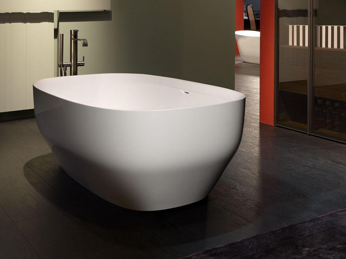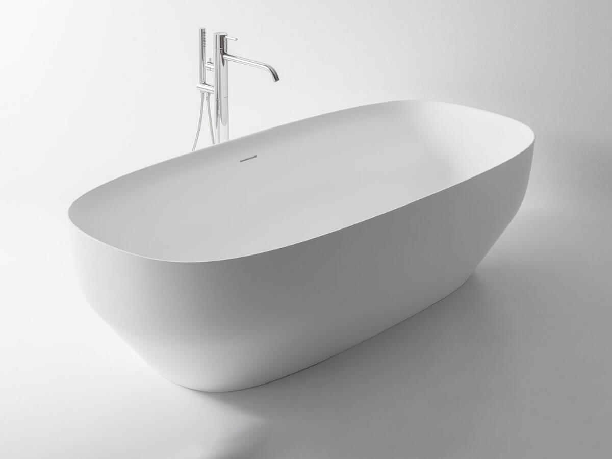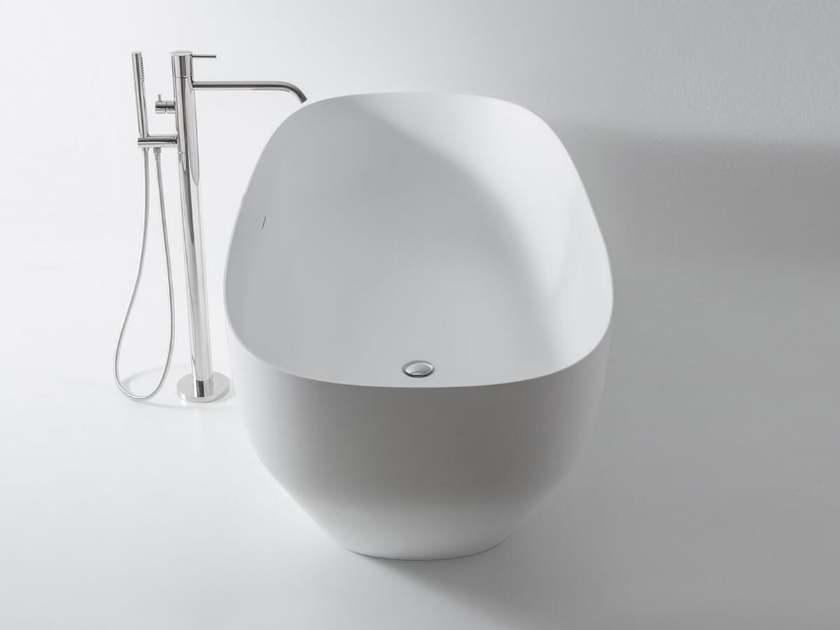 La vasca Ago di Antoniolupi basa il suo fascino sulla plasticità scultorea delle forme. I sottili profili delle pareti partono da una base più ristretta per poi allargarsi gradualmente, andando a definire un bacino centrale ampio ed accogliente. Ago porta la firma del designer Mario Ferrarini ed è realizzata in Cristalplant bianco, verniciabile esternamente in tutti i colori del campionario Antoniolupi. È completa di una completa di piletta con sistema di scarico a pressione clik clak, unico elemento metallico della composizione che va a spezzare il rischio di monotonia dell’uniforme total white dell’invaso. La vasca è fornita completa anche di sifone e tubo flessibile.