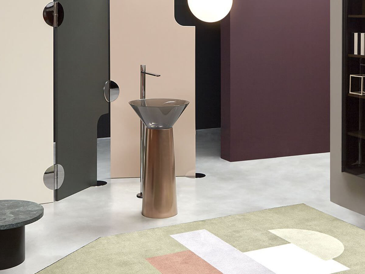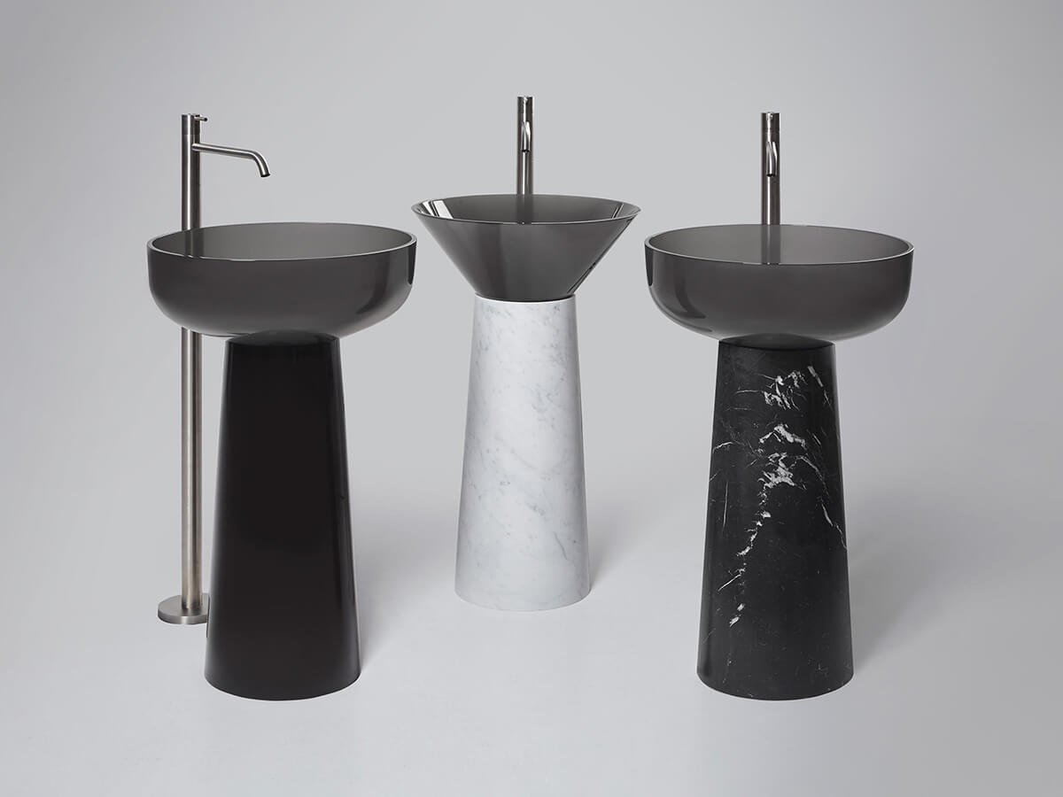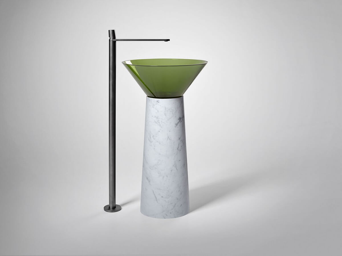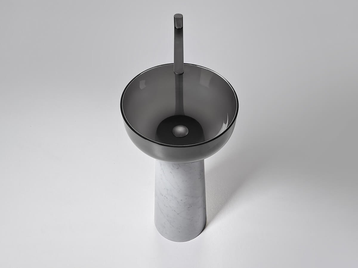 Nel lavabo freestanding Albume disegnato per Antoniolupi da Carlo Colombo, il grande protagonista è il colore. In contrasto con i tipici ambienti bagno asettici dominati dalle tinte bianche, Albume si propone come un’esplosione di delicate nuance raffinate e ricche di fascino. Si compone di due elementi, in fecondo dialogo cromatico fra loro: un solido basamento di sostegno, che può essere realizzato in marmo, in metallo, in legno o in resine colorate come il Cristalmood e il Flumood, sormontata dal bacino del lavabo vero e proprio, a sua volta disponibile in vari colori e in due forme diverse (una più slanciata a sezione di cono e l’altra dalle rotondità più accentuate). Un sapiente accostamento di materiali può permettere di dare ad Albume le interpretazioni più diverse: da giocoso divertissement colorato monocromatico a più lussuoso protagonista dell’ambiente con scintillanti sostegni in bronzo o in ottone, o ancora solido volume scultoreo dalla base in marmorea e molto altro ancora.