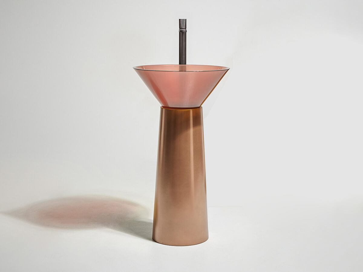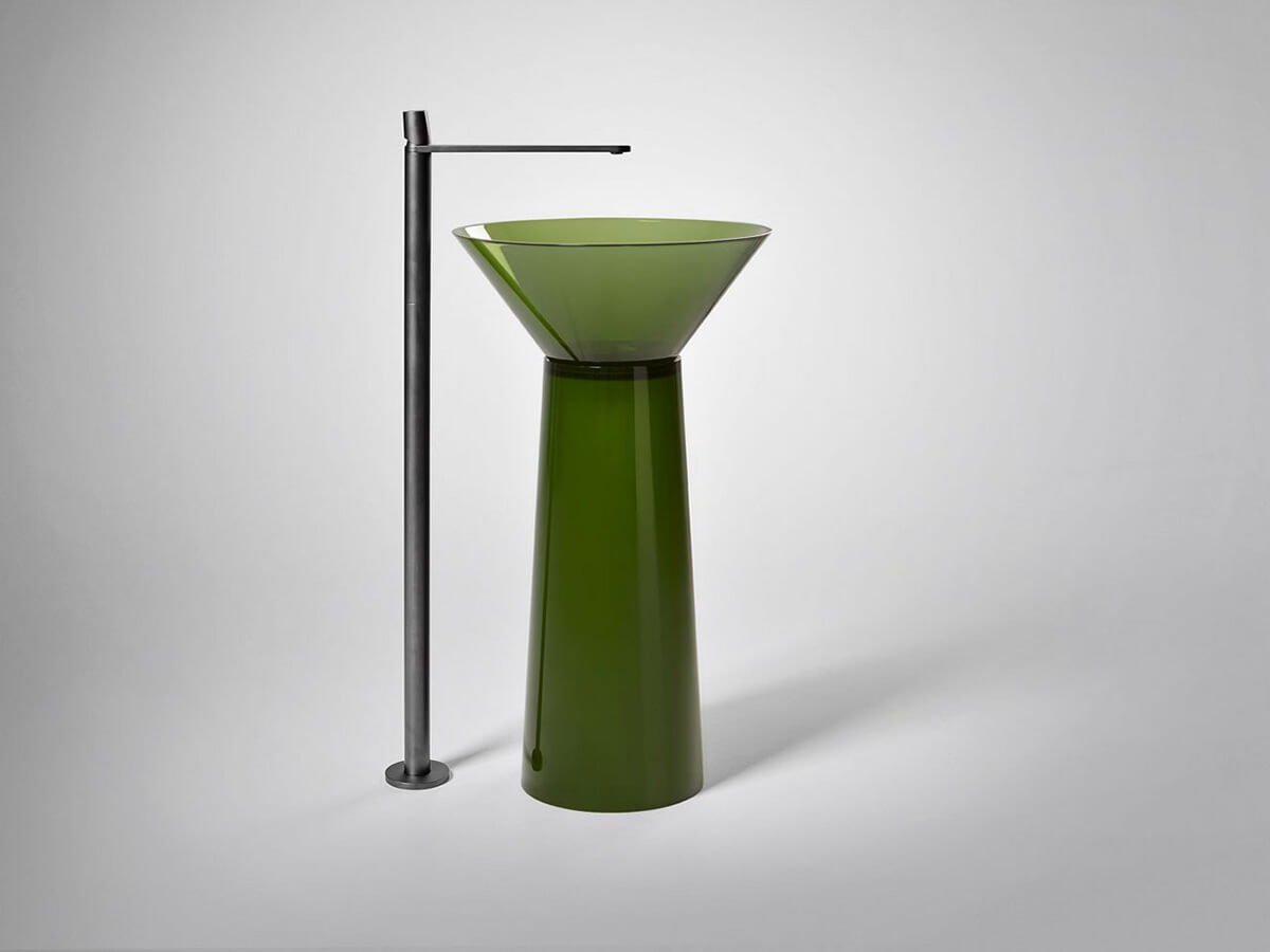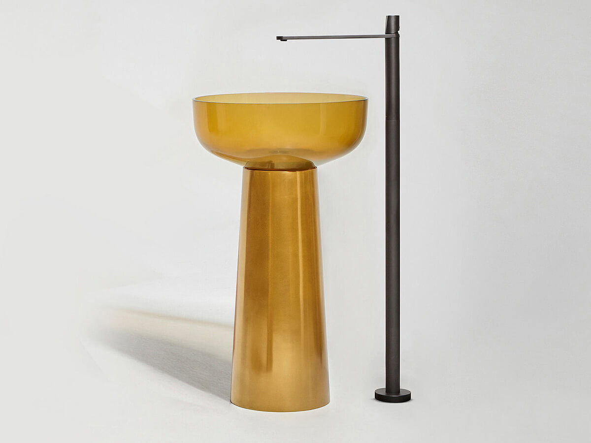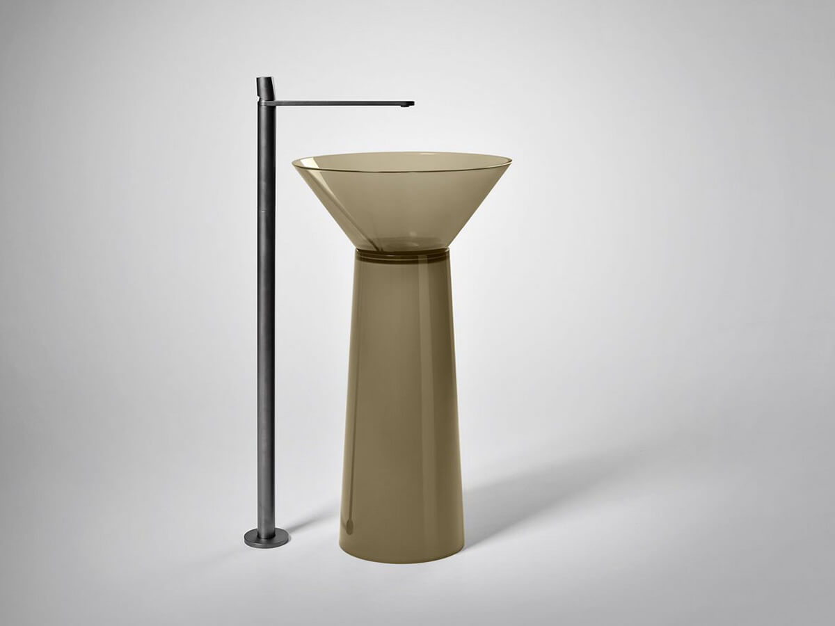 Nel lavabo freestanding Albume disegnato per Antoniolupi da Carlo Colombo, il grande protagonista è il colore. In contrasto con i tipici ambienti bagno asettici dominati dalle tinte bianche, Albume si propone come un’esplosione di delicate nuance raffinate e ricche di fascino. Si compone di due elementi, in fecondo dialogo cromatico fra loro: un solido basamento di sostegno, che può essere realizzato in marmo, in metallo, in legno o in resine colorate come il Cristalmood e il Flumood, sormontata dal bacino del lavabo vero e proprio, a sua volta disponibile in vari colori e in due forme diverse (una più slanciata a sezione di cono e l’altra dalle rotondità più accentuate). Un sapiente accostamento di materiali può permettere di dare ad Albume le interpretazioni più diverse: da giocoso divertissement colorato monocromatico a più lussuoso protagonista dell’ambiente con scintillanti sostegni in bronzo o in ottone, o ancora solido volume scultoreo dalla base in marmorea e molto altro ancora.