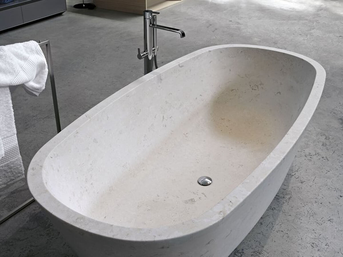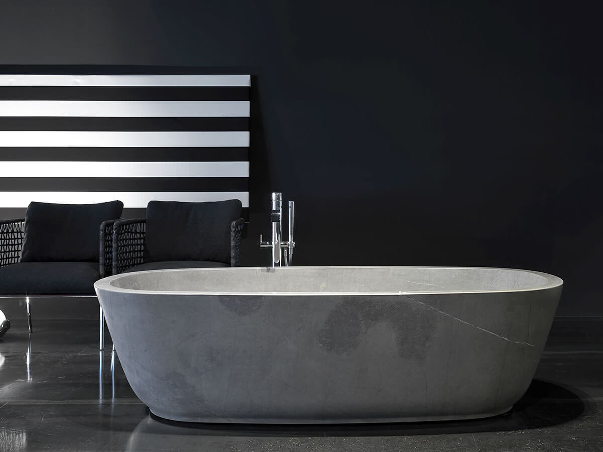 La vasca Baìa è uno dei grandi bestseller di Antoniolupi. Firmata dal designer Carlo Colombo, con le sue forme armoniose e solide è perfetta per essere inserita in bagni di ogni genere. Minimalista ed elegante, è priva di curve brusche o di volumi troppo sottolineati, puntando tutto il suo fascino sugli spessori sottili e il fine equilibrio dell’insieme. È realizzata in Cristalplant bianco e può essere verniciata esternamente con tutti i colori del campionario Antoniolupi, ottenendo effetti briosi e vivaci dal tocco molto personale. È disponibile anche in una variante in pietra, nella quale gli spessori si allargano e l’impatto estetico diviene più lussuoso, senza però perdere il grande senso della misura che era il punto di forza del progetto originario. Baìas è invece la versione in dimensioni rimpicciolite, con una lunghezza di soli 170 cm che le permette di essere inserita anche in ambienti di dimensioni più ristrette.