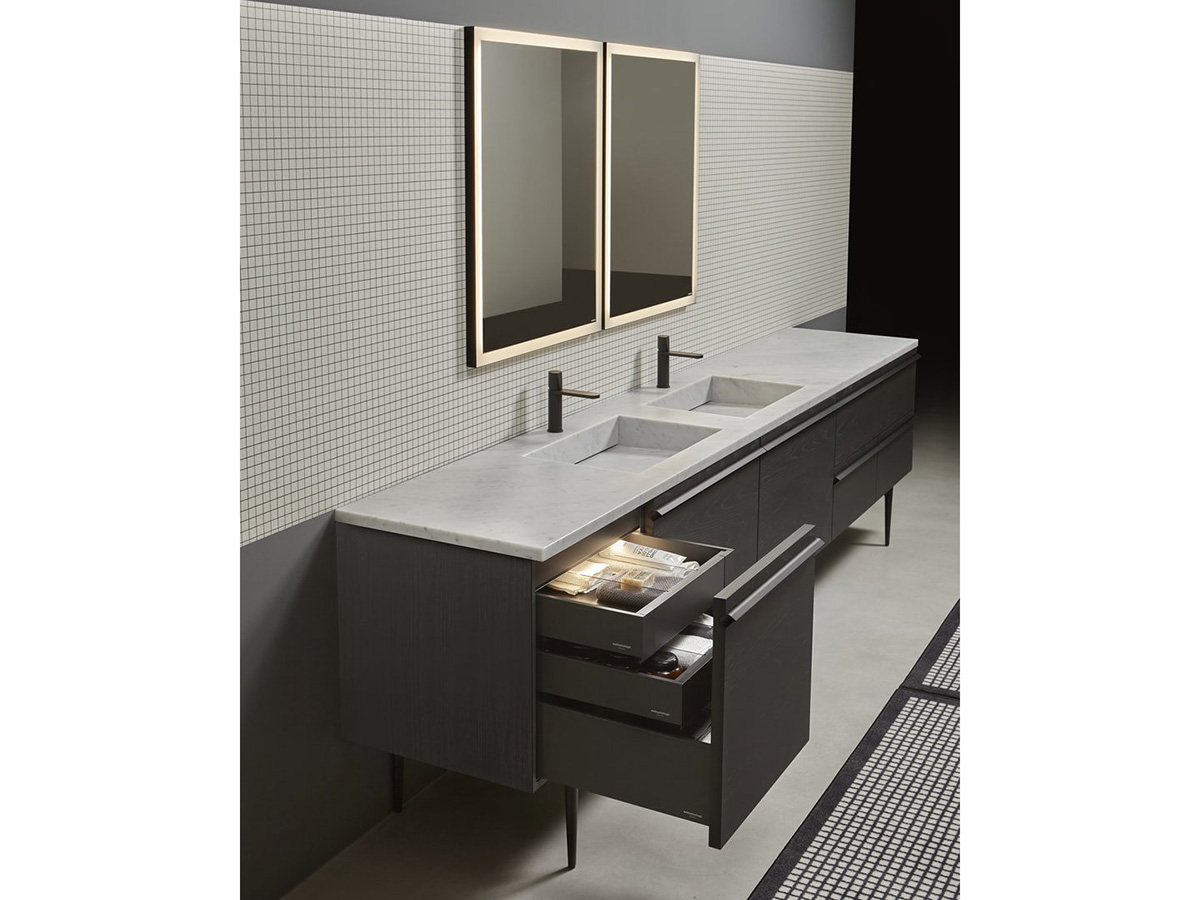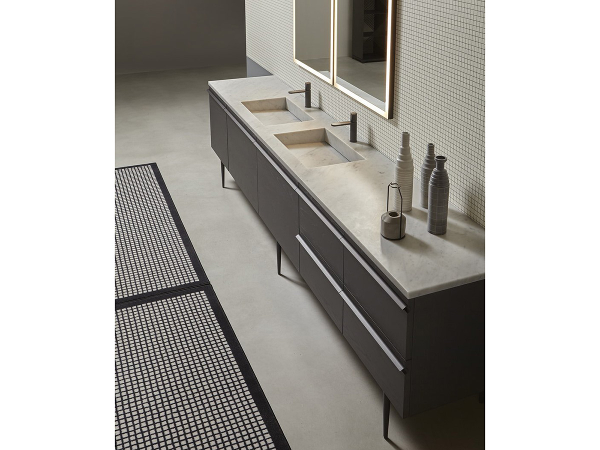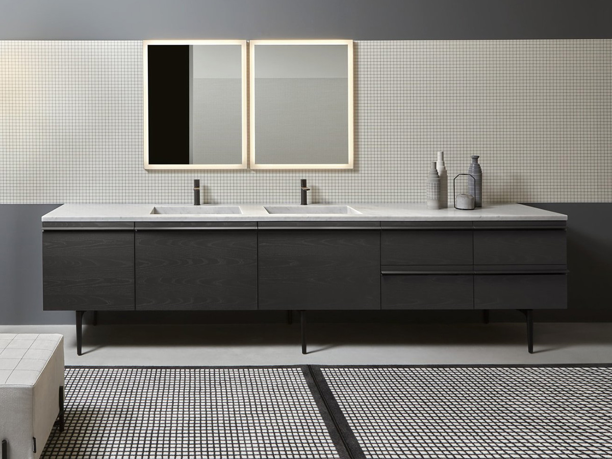 Un elemento d’arredo per il bagno di grande rilevanza, capace di unire il gusto dell’azienda Antoniolupi alla capacità artigianale da sempre dimostrata nel creare spazi unici e soluzioni materiche a forte rilevanza stilistica. Borderline nasce come mobile solido e stabile, liberamente componibile per finiture e dimensioni, che non trascura di dare ampio spazio alla zona dei lavelli e degli ampi cassetti pensati per essere colmati dalle più diverse oggettistiche del bagno. Antoniolupi ha disegnato questo elemento pensando ai diversi stili della casa, dai più ai meno raffinati, e alle esigenze contemporanee dello spazio bagno.
