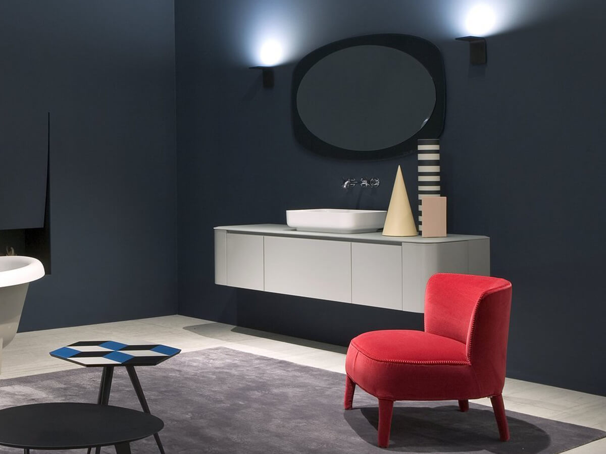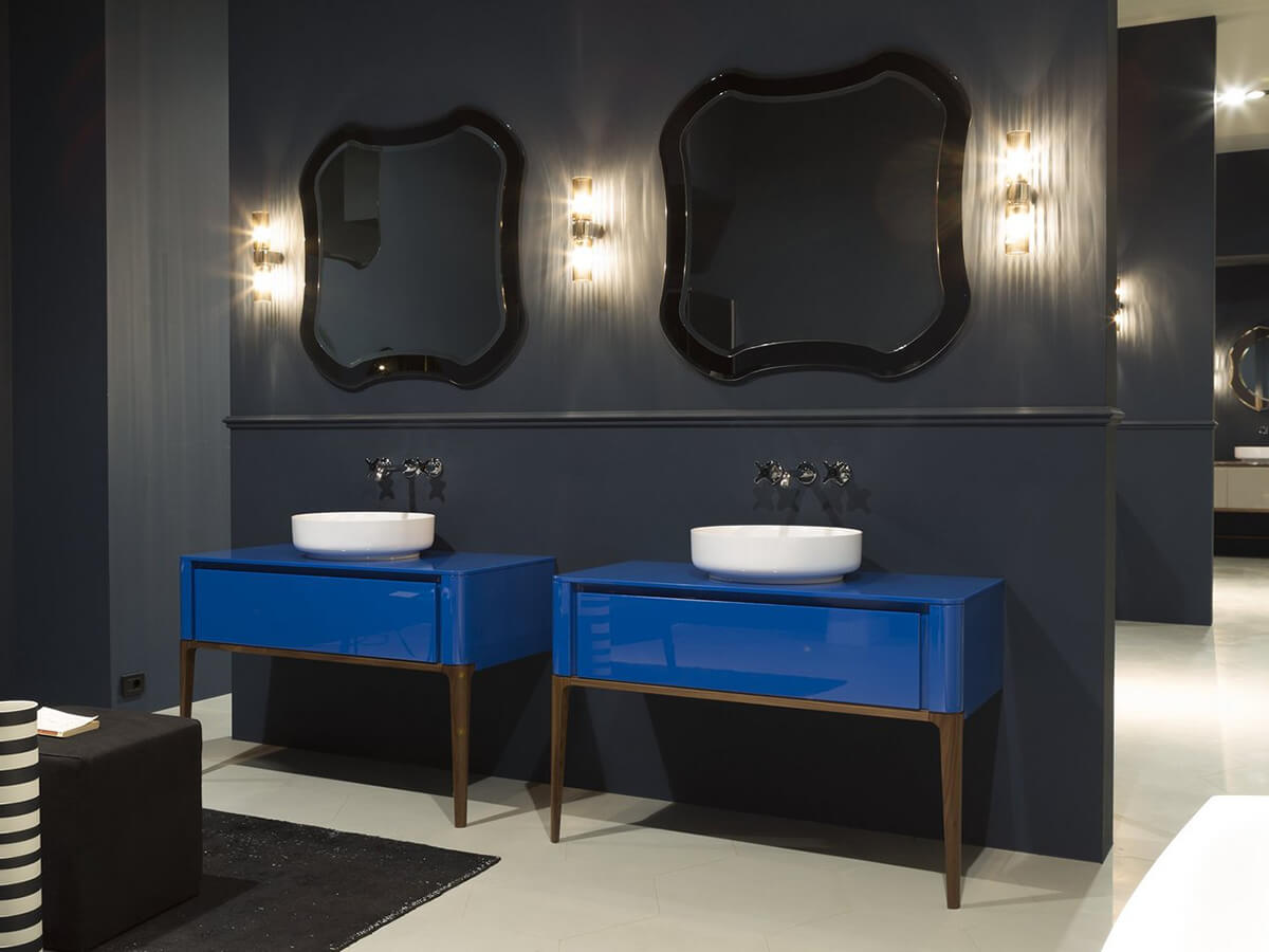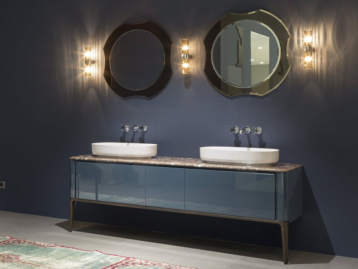 Nell’esclusiva collezione “IlBagno”, firmata da Roberto Lazzeroni, Antoniolupi deroga eccezionalmente ai suoi consolidati principi di modernissima purezza per proporre una linea deliziosamente retrò, dal segno borghese e fortemente decorativo. Un omaggio al “bagno dei nonni” che, pure nel gusto delle citazioni passatiste, non rinuncia comunque a cercare un equilibrio sottile fra memorie e presente, senza poi perdere di vista la massima funzionalità. Ne nasce coì una linea variegata, in cui le composizioni sospese presentano dolci angoli fortemente stondati ma non presentano maniglie o altri orpelli inessenziali, limitandosi a una sobria apertura a gola. Le basi possono poggiare anche su due sottili puntali o in legno o in metallo o su basi più strutturate che rendono autoportanti le composizioni.