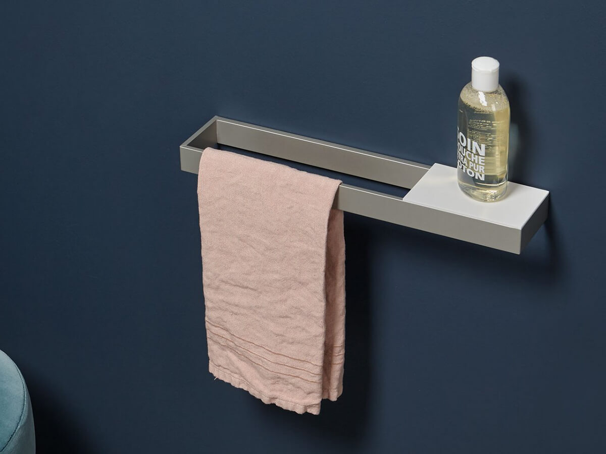 La serie di accessori per il bagno Play di Antoniolupi fonda il proprio fascino su forme semplici e geometrie pure che arricchiscono l’ambienti bagno con una serie di complementi funzionali e discreti, capaci di integrarsi armoniosamente con il contesto senza generare effetti cacofonici. Ciò è possibile anche grazie all’ampia scelta di finiture tra cui optare, dal tradizionale acciaio inox lucido a sei diversi colori di alluminio. Oltre alla barra portasalviette con aggancio a prete qui proposta, attrezzabile anche con l’aggiunta di un pianetto portasapone, la serie Play si compone anche di numerosi accessori quali scopini, mensole, piantane, porta spazzolini e molto altro ancora.