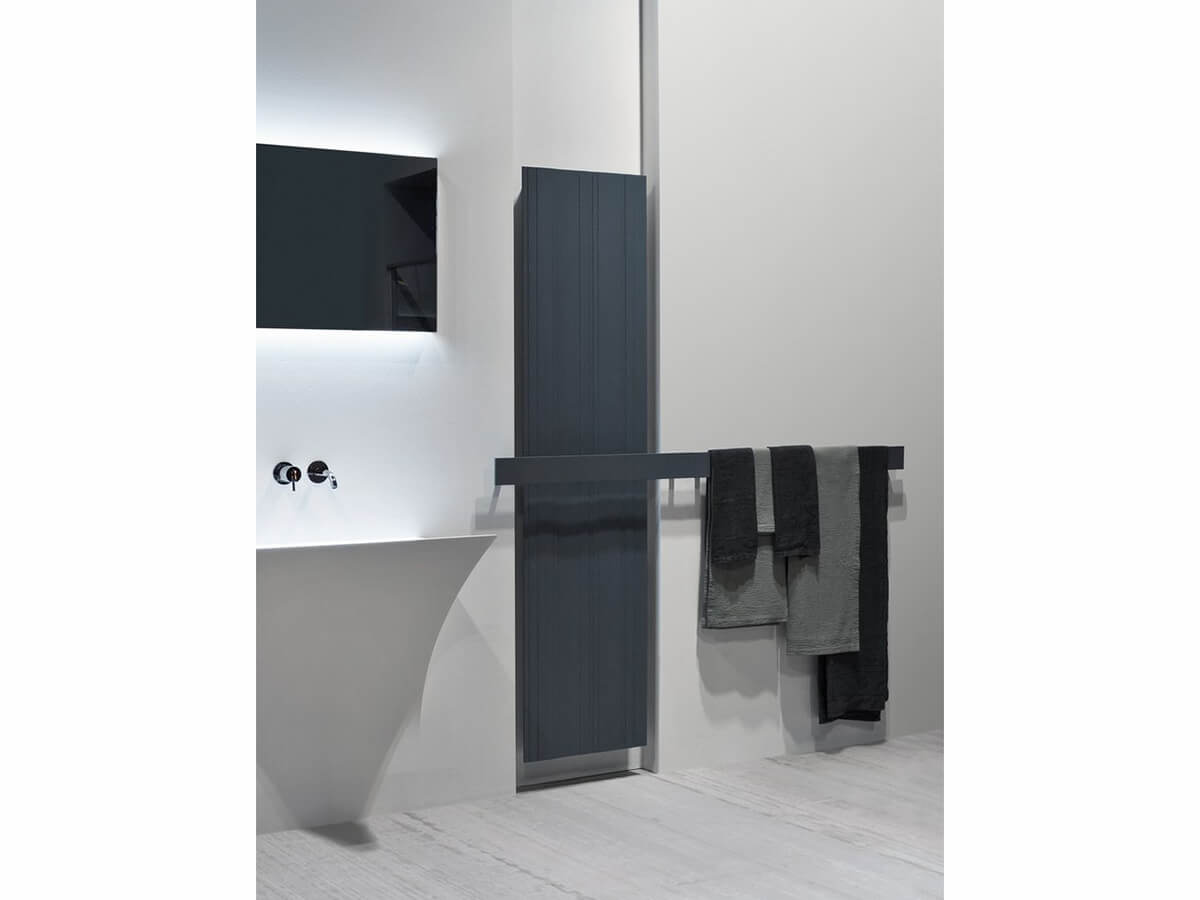 La serie di termo arredi Bit e Bitlight di Antoniolupi porta il raffinato design tipico del brand anche nel mondo dei radiatori. Oltre a emettere calore, il termo arredo diviene così una vera e propria elegante decorazione per l’ambiente arricchita da un’equilibrata sequenza di doghe di diverse dimensioni che ne scandiscono verticalmente tutta la superficie. Bit e Bitlight sono realizzati interamente in alluminio riciclato, materiale ecologico che rispetto all’acciaio non presenta il rischio di ruggine e che può vantare una conducibilità termica dieci volte migliore. Sono entrambi disponibili sia in versione elettrica che in versione ad acqua e possono essere attrezzati frontalmente anche con Bitbarra, comoda barra portasciugamani aggettante. Entrambi disponibili in varie misure, Bit e Bitlight si differenziano per particolari tecnici e dimensioni. Sono entrambi verniciata nei diversi colori del campionario Antoniolupi, con Bit che parte da una base in alluminio bianco e Bitlight da una base in alluminio. Bitlight è disponibile anche in una più leggera variante a sviluppo orizzontale, utilizzabile anche sospesa. Caratteristiche tecniche: Bitlight orizzontale è disponibile solo in versione elettrica ed è completo di portasalviette e cronotermostato