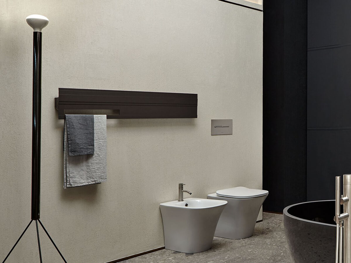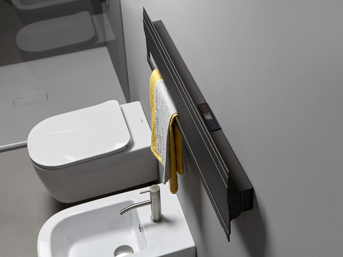 La serie di termo arredi Bit e Bitlight di Antoniolupi porta il raffinato design tipico del brand anche nel mondo dei radiatori. Oltre a emettere calore, il termo arredo diviene così una vera e propria elegante decorazione per l’ambiente arricchita da un’equilibrata sequenza di doghe di diverse dimensioni che ne scandiscono verticalmente tutta la superficie. Bit e Bitlight sono realizzati interamente in alluminio riciclato, materiale ecologico che rispetto all’acciaio non presenta il rischio di ruggine e che può vantare una conducibilità termica dieci volte migliore. Sono entrambi disponibili sia in versione elettrica che in versione ad acqua e possono essere attrezzati frontalmente anche con Bitbarra, comoda barra portasciugamani aggettante. Entrambi disponibili in varie misure, Bit e Bitlight si differenziano per particolari tecnici e dimensioni. Sono entrambi verniciata nei diversi colori del campionario Antoniolupi, con Bit che parte da una base in alluminio bianco e Bitlight da una base in alluminio. Bitlight è disponibile anche in una più leggera variante a sviluppo orizzontale, utilizzabile anche sospesa. Caratteristiche tecniche: Bitlight orizzontale è disponibile solo in versione elettrica ed è completo di portasalviette e cronotermostato