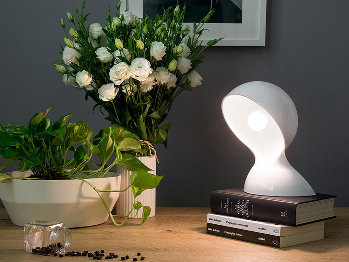 Un design accattivante unito alla sapiente maestria nella lavorazione di materiale termoplastico stampato. Dalù è una lampada da tavolo moderna, progettata con linee tondeggianti appositamente studiate per creare una risultante estremamente elegante e innovativa. La base convessa sostiene una mezza sfera nella quale viene collocata la lampadina. La nicchia riflette e modula il fascio luminoso, creando un effetto molto delicato nell’area circostante. Nelle sue numerose varianti di colore e dimensioni, Dalù è un elemento che ben si adatta ai diversi ambienti dello spazio domestico, donando a ognuno un tocco di ricercatezza e innovazione. Interessante è la scelta minimal delle finiture, semplici come a voler lasciar spazio all’oggetto in sé.