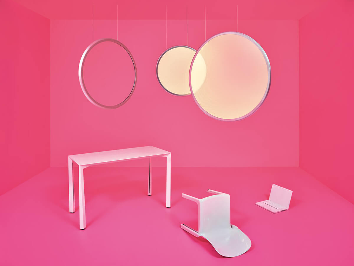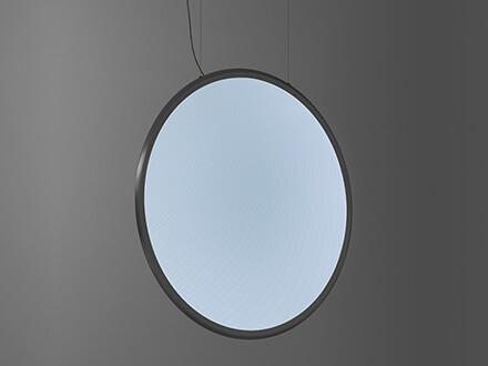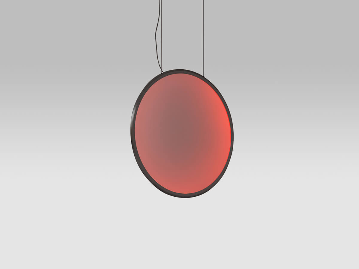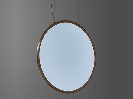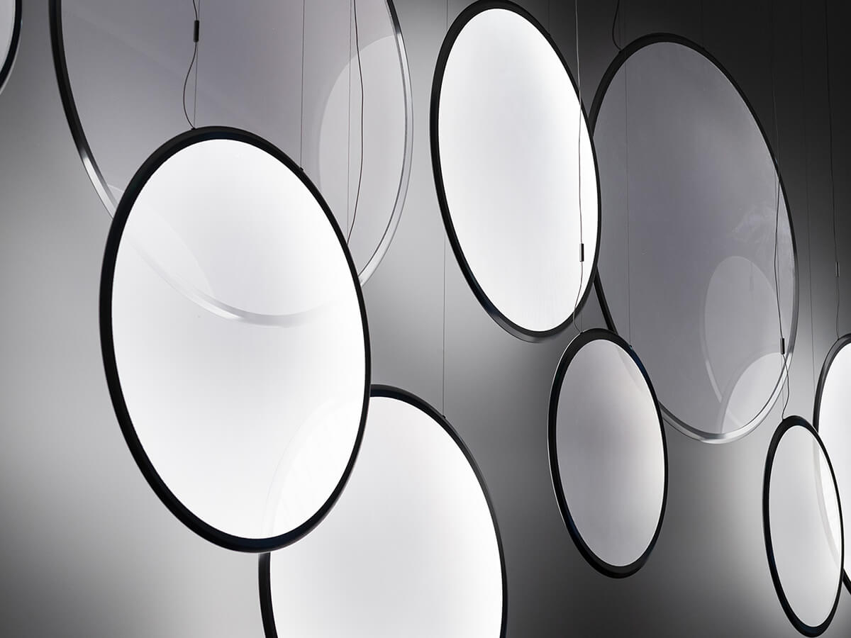 Discovery fa parte di una famiglia di lampade dalla geometria essenziale, studiata per sfruttare le potenzialità della materia in armonia con le proprietà intrinseche della luce. Da questa fortunata fusione nasce Discovery, una gamma di proposte che ben si adattano a qualunque ambiente domestico e non, offrendo una scelta di gusto fuori dal comune. Discovery sfrutta la tecnologia Led unita a superfici di PMMA trasparente e lavorato per meglio rifrangere lo spettro luminoso. Da spenta questa lampada a sospensione appare come un semplice cerchio vuoto, disegnato da un sottile bordo in alluminio. Da acceso il piano interno si trasforma da trasparente a opacizzato, regalando eleganti sfumature di luce nello spazio circostante.