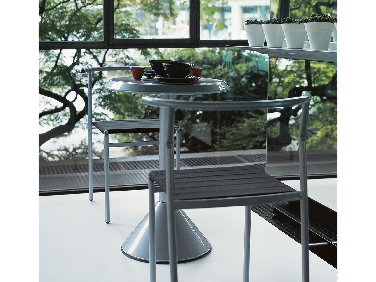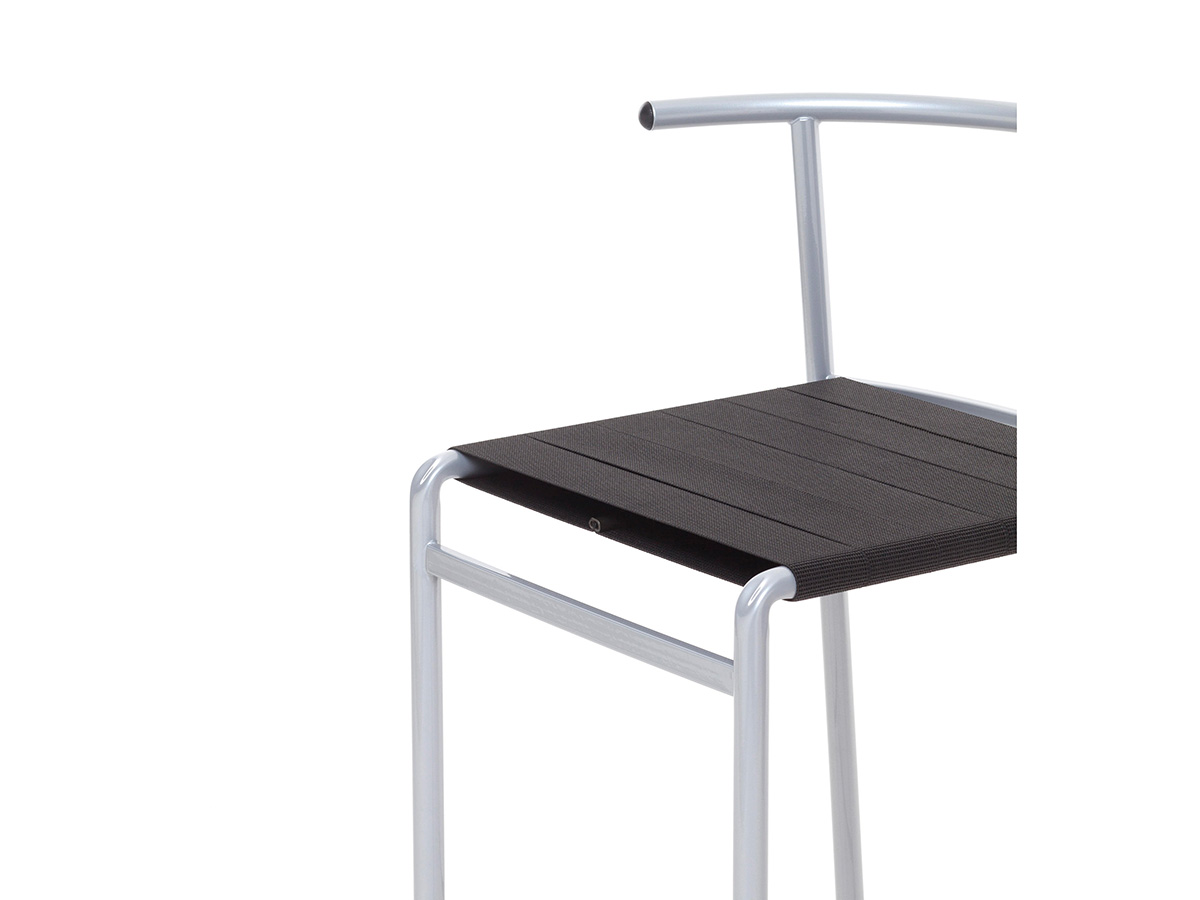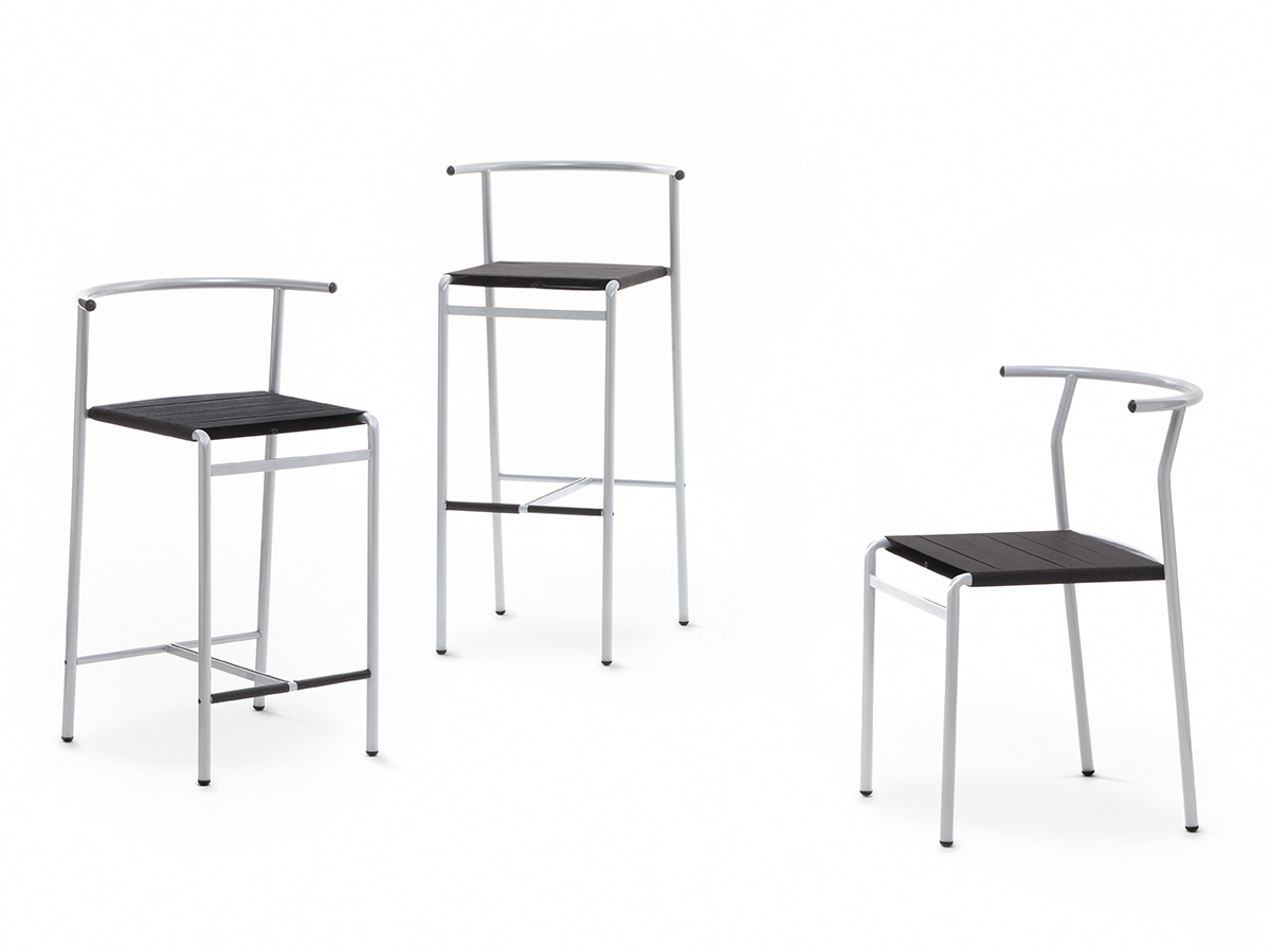 Il talento artistico di Philippe Starck e la sapienza artigianale di Baleri Italia si uniscono nel creare la Café Chair, elemento essenziale che sembra fare della linea la sua più esaustiva espressione. Disegnata nel 1984 per l’allora più famoso Caffè francese, il Café Costes a Parigi, è divenuta nel tempo icona di bellezza e funzionalità, diffondendosi in tutto il mondo come esempio di stile contemporaneo. Questa sedia è impilabile, oltre che solida e confortevole. La collezione prevede anche uno sgabello e uno sgabello da bar, utilizzabili in ambiti contract. La struttura è in tubo di acciaio verniciato con polveri epossidiche in argento metallizzato o nero opaco.