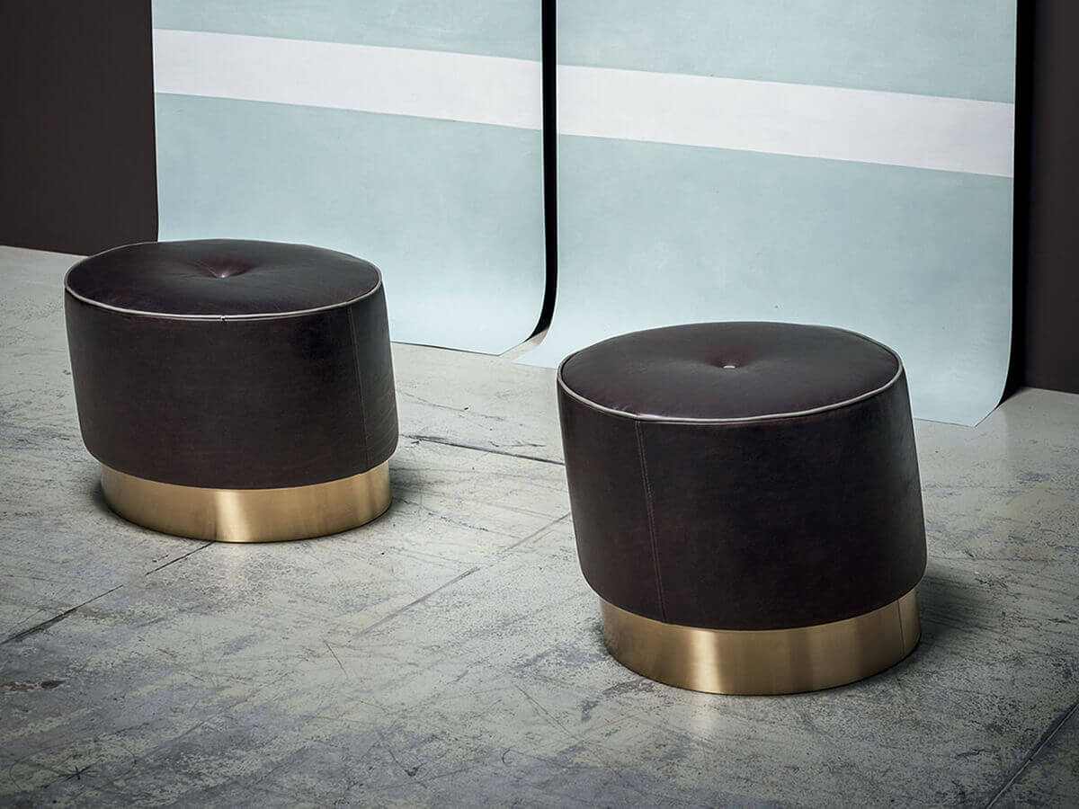 La collezione Anais di Baxter Made in Italy comprende numerose proposte per l’arredo della zona giorno fra cui poltroncine e pouf. L’estrema eleganza di questa linea si distingue per il prezioso basamento rivestito in ottone satinato, metallo brunito spazzolato o altro ancora che ne arricchisce e impreziosisce la figura. Non meno rilevanti sono però i rivestimenti in cuoio e pelle impreziositi da profilo decorativo e bottone della medesima tonalità. La struttura in multistrato di faggio viene ingentilita dall’imbottitura in poliuretano espanso a densità differenziata. Ideale per qualunque ambiente della casa, il pouf Anais si adatta a diversi gusti e stili, risultando al contempo moderno e sofisticato.