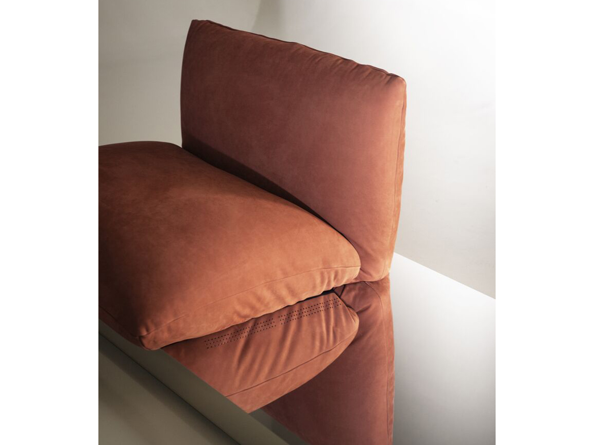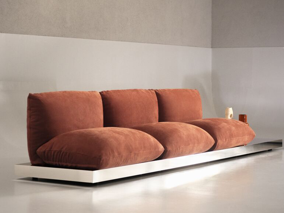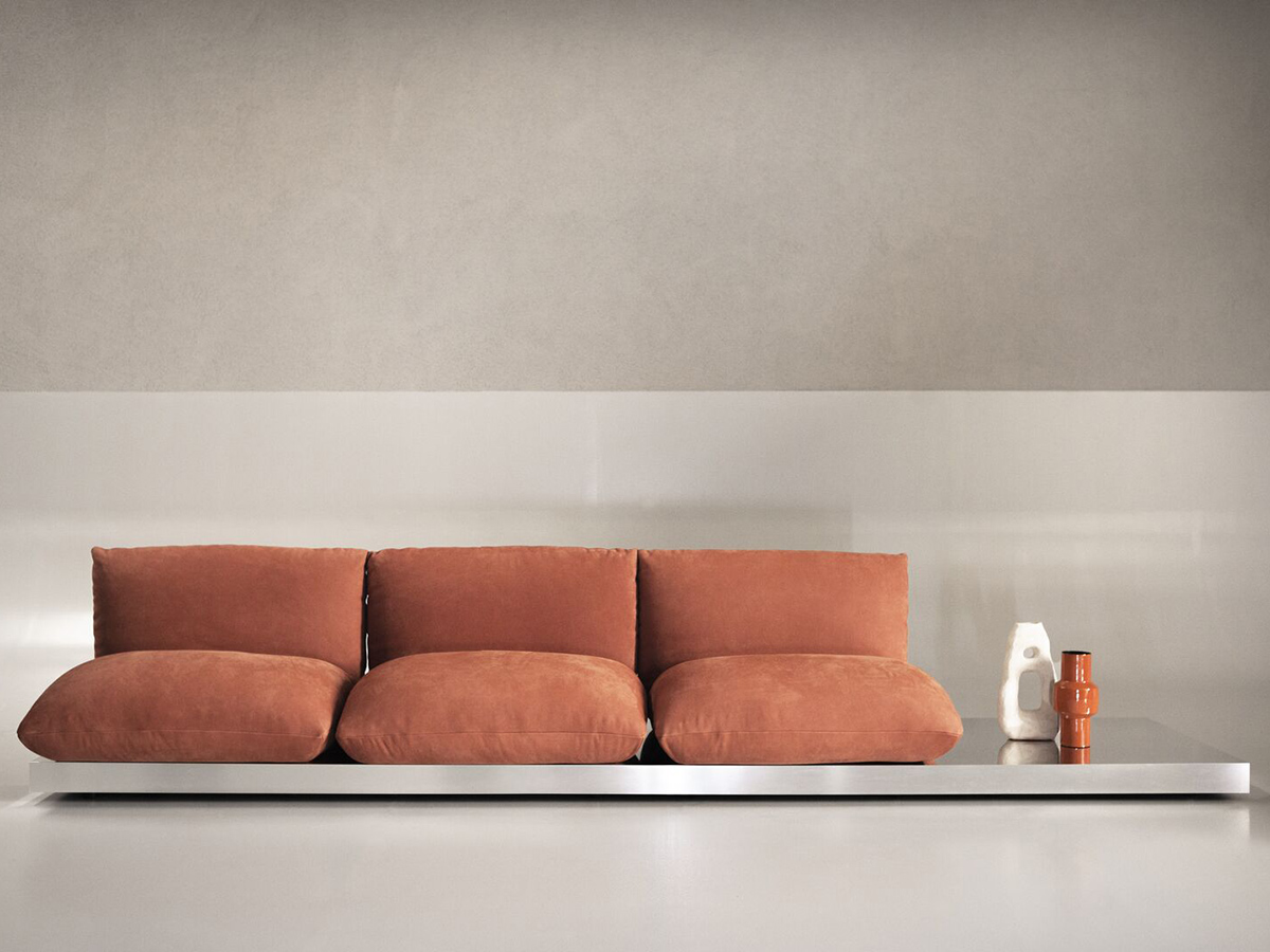 Aura nasce dalla visione di Baxter e Hannes Peer che insieme hanno concepito un nuovo imbottito modulare in pelle dal design estremamente riconoscibile e sofisticato. La linea di Aura è netta e decisa, esente da qualunque aggiunta che distrarrebbe non solo l’occhio, ma anche la percezione d’insieme. Aura si avvicina al glamour luminoso delle ville californiane, presentandosi con una solida base lievemente rialzata che funge anche da piano d’appoggio sulla quale vengono collocati degli ampi cuscini che fungono da seduta. Gli elementi di Aura sono modulari per offrire una massima personalizzazione in ogni ambiente living e non. La base è in acciaio lucidato e laccato, perfetto per esaltare la pelle sovrastante.