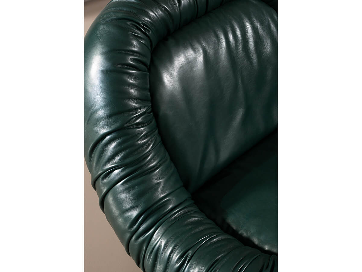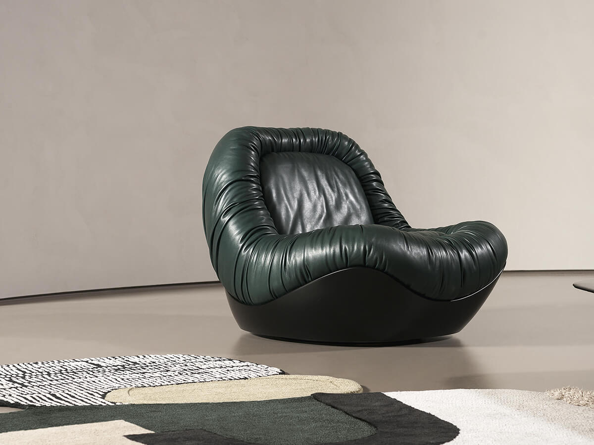 Richiama il design anni ‘70 la poltrona Barret progettata da Draga & Aurel per Baxter. È formata da un originale basamento girevole in metallo nero che accoglie una scocca rigida in polimex ecosostenibile. La generosa imbottitura in poliuretano espanso a densità differenziata con rivestimento in fibra acrilica aumenta il comfort mentre la pelle morbida cucita con effetto a pieghe dà carattere alla poltrona e ne definisce la forma. La poltrona Barret è un elemento dal gusto classico che, rivisitato in chiave contemporanea dai designer, sa dare stile all’arredo di una casa moderna creando un angolo lettura rilassante o un luogo accogliente per la conversazione.