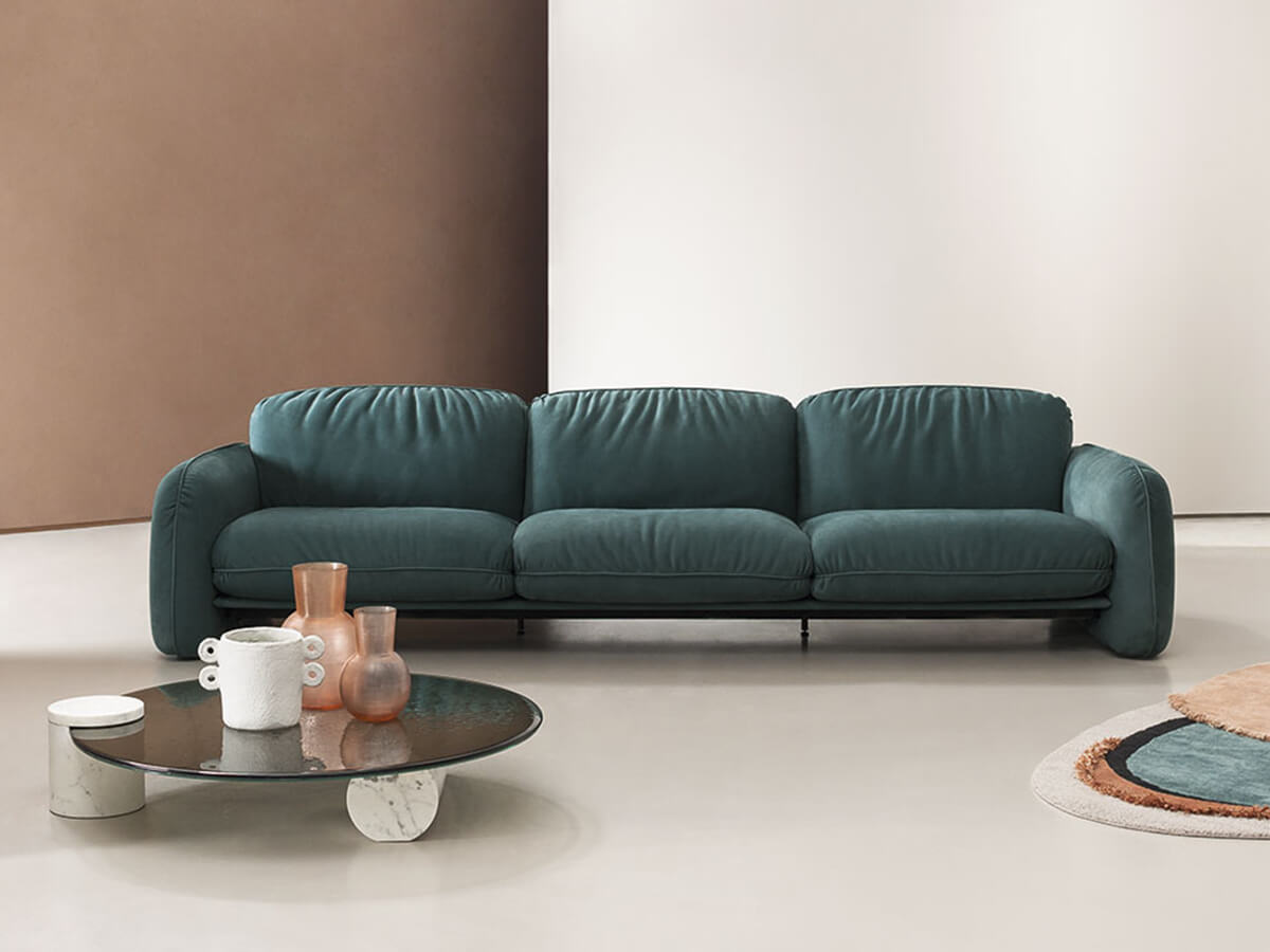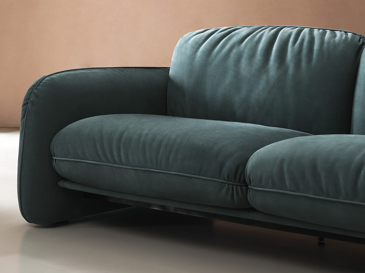 Il divano Brigitte di Draga&Aurel nasce dal delicato connubio fra geometrie ed estetica, una fortunata unione capace di creare un elemento d’arredo estremamente elegante e al contempo fuori dagli schemi, caratterizzante per qualunque ambiente della casa in cui si desideri collocarlo. La struttura in metallo e legno tamburato di abete e faggio dona a Brigitte una solidità funzionale, che ben si accosta allo schienale in multistrato di betulla curvato. Le morbide imbottiture in poliuretano espanso a densità differenziate assicurano il massimo comfort durante la seduta. Punta di diamante sono come sempre i rivestimenti, che per Baxter Made in Italy rappresentano l’eccellenza nella lavorazione della pelle.