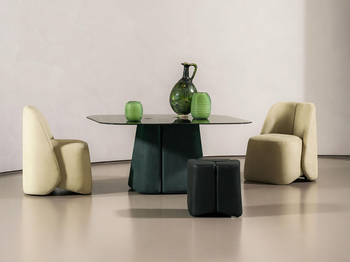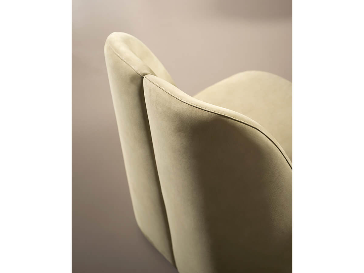Keren è l’innovativa poltroncina in pelle morbida progettata dall’eclettico Christophe Delcourt per Baxter. E’ formata da una struttura in multistrato di abete cileno e da un’imbottitura in poliuretano espanso a densità differenziata, rivestito in fibra acrilica. Il designer si ispira alle filosofie ecologiste e allo stile organico, utilizzando forme geometriche ad incastro , per realizzare una seduta dalle dimensioni equilibrate e contenute, perfetta per valorizzare il tavolo della sala da pranzo con il rigore e l’eleganza delle linee.