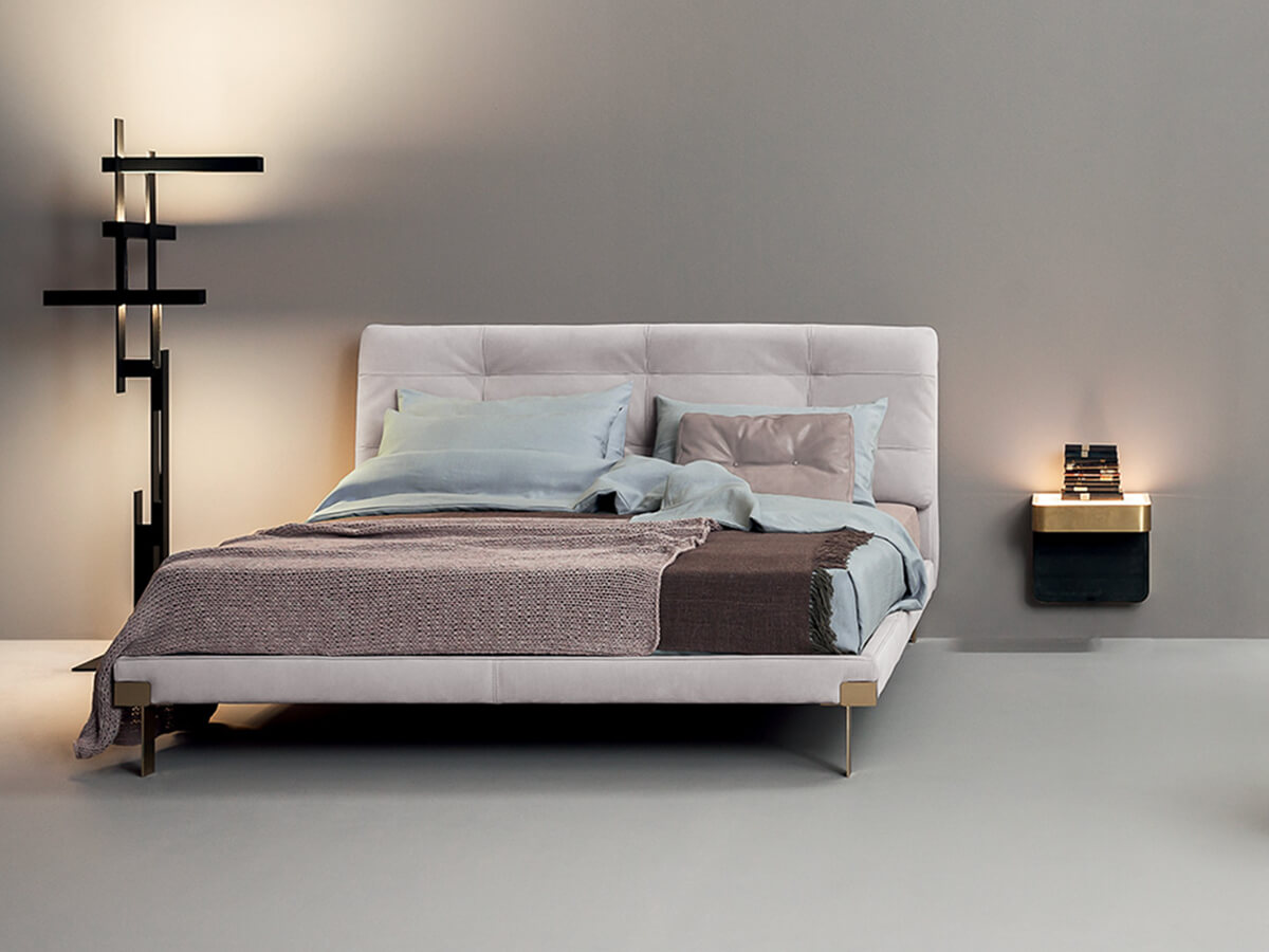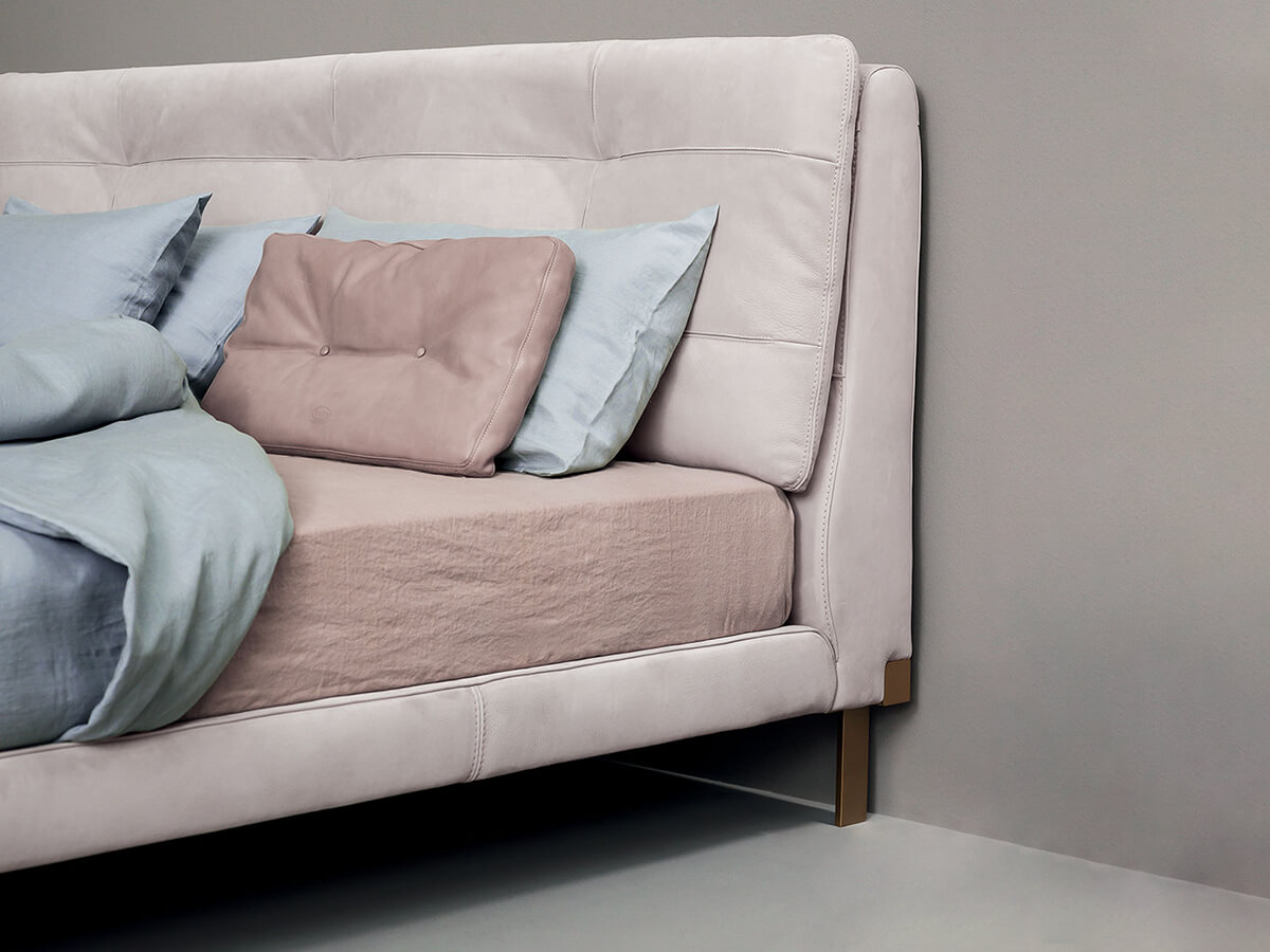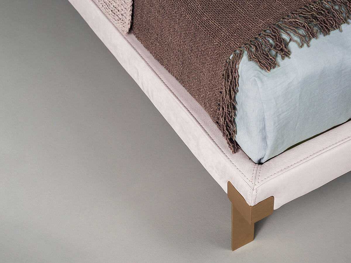 Nelle sue diverse declinazioni, la collezione Viktor comprende un elegante letto per la zona notte, elemento d’arredo fondamentale per il riposo e relax notturno. La struttura del giroletto è in legno di abete e metallo verniciato. La testata invece è in multistrato di pioppo. Viktor presenta un sommier diviso in due parti. L’imbottitura è in poliuretano espando a densità differenziata con rivestimento in fibra acrilica. La cuscinatura della testata, morbida e accogliente, presenta cuciture decorative e trapuntatura. Il rivestimento del giroletto è in pelle sfoderabile. Particolare di grande pregio sono i piedini in metallo, fondamentali per creare un punto d’attenzione visivo.