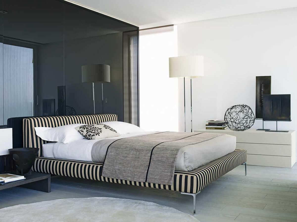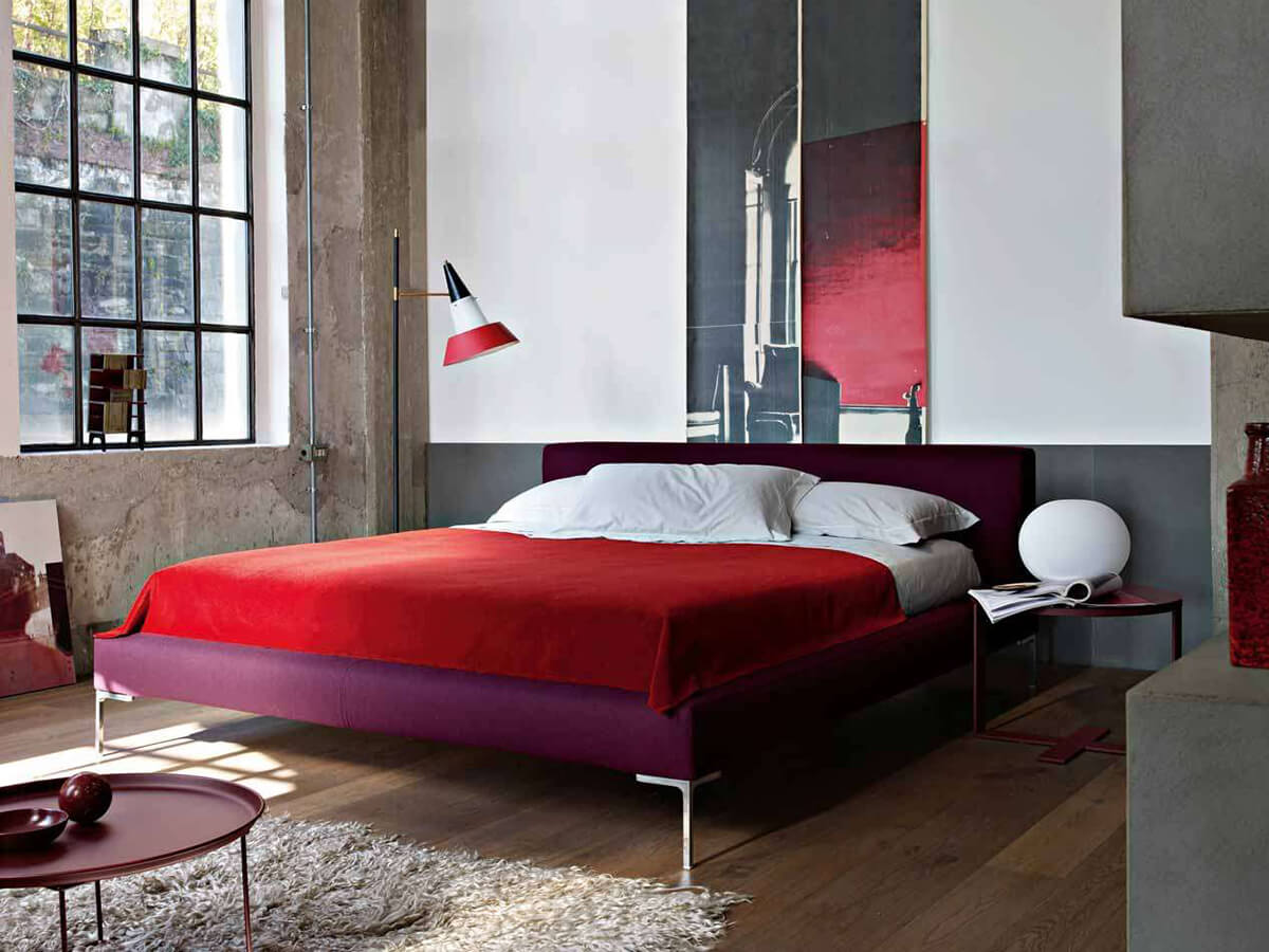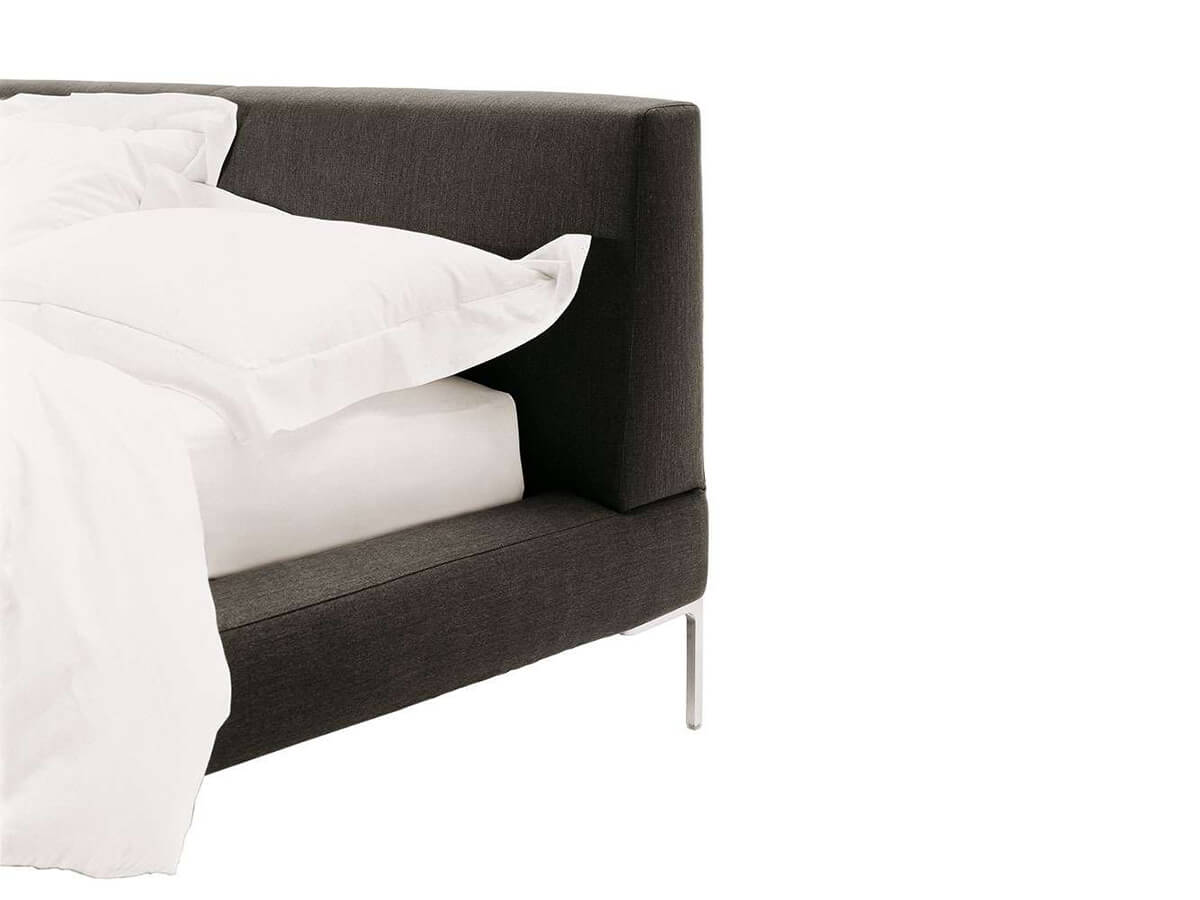 Il letto Charles esprime l’estetica di B&B nell’arredare qualunque ambiente della casa con gusto e dedizione al fine di assolvere a tutti gli aspetti della vita privata al meglio delle proprie possibilità. Il letto Charles nasce come derivazione dell’omonimo divano di cui condivide il piedino a “L” rovesciato in alluminio spazzolato, lucido o verniciato. L’estetica morbida ed essenziale lo accosta bene a spazi d’arredo contemporanei, pur risultando elegante anche in commistioni di gusto più diversificate. Nelle sue due più importanti versioni distinguiamo quella con fasce aggettanti rispetto al materasso leggermente incassato, e quella più semplice che vede le fasce a filo materasso. Inoltre è disponibile una variante con ruote.