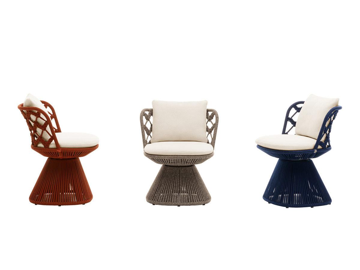 Da tempo B&B Italia si è cimentata nella creazione di elementi d’arredo pensati per l’esterno e soprattutto per coloro che amano trascorrere del tempo all’aria aperta in compagnia di amici, famigliari o anche da soli. Fra le molte proposte che si sono aggiunte al catalogo spicca la sedia Flair O, esempio di originalità strutturale grazie al telaio leggero in alluminio completamente ricoperto da un intreccio di nastri in polipropilene creato seguendo un meticoloso processo artigianale. In particolare, la schiena spicca per l’ampio schienale intrecciato su un apposito telaio di tessitura rivisitato in chiave contemporanea così da meglio accostarsi alle altre opere del marchio per l’esterno. Interessante la collaborazione con unPIZZO, studio di design specializzato nel recupero e sviluppo di tecniche di tessitura tradizionale e rivisitate in chiave contemporanea e applicate al settore dell’arredamento.