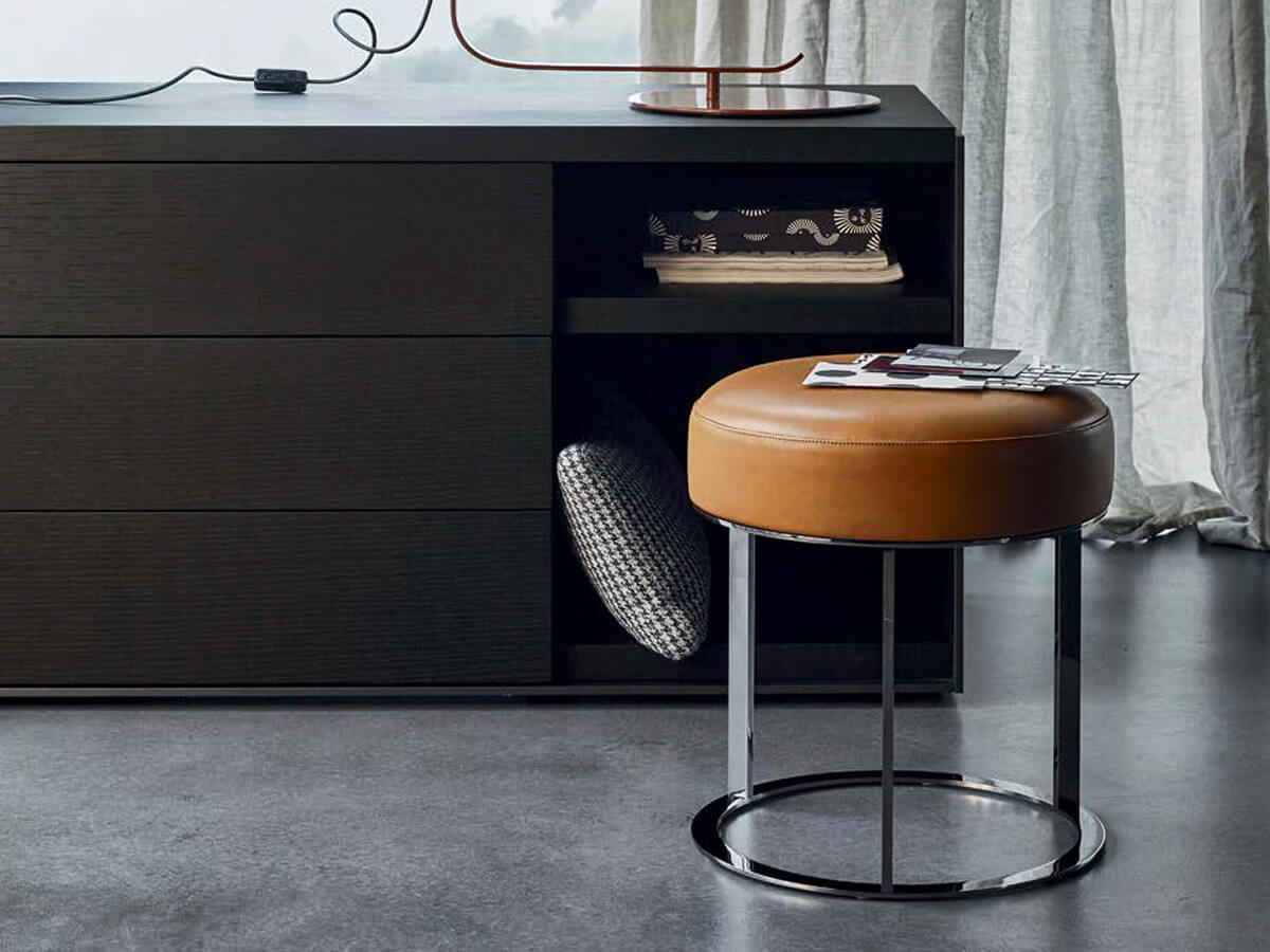 Un pouf versatile e adatto a diversi utilizzi in ogni ambiente della casa. Il disegno di Antonio Citterio dà vita a un complemento elegante, con struttura di profilati d’acciaio verniciato che sostengono un cuscino con imbottitura in multistrato di legno, poliuretano sagomato e fodera in fibra di poliestere. Tutti questi elementi concorrono a rendere Frank non solo comodo, ma anche durevole e resistente all’uso quotidiano. Adatto alla zona living e dining, trova una giusta collocazione anche negli spazi notte, donando un tocco peculiare a qualunque tipo di arredo.
