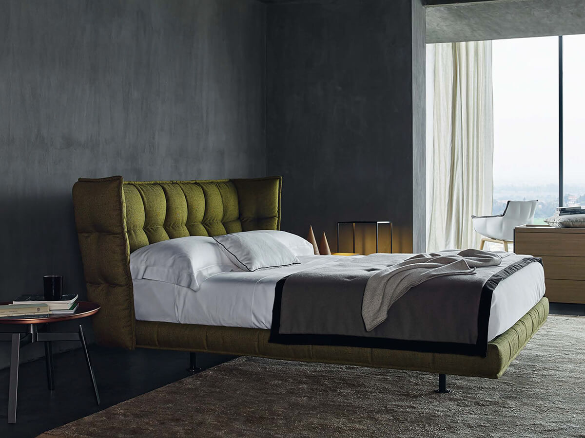 Il letto Husk fa parte della grande famiglia di imbottiti disegnati da Patricia Urquiola, caratterizzati da forme forti e non convenzionali capaci di spiccare in qualunque contesto abitativo. Come la celebre poltrona, il letto Husk presenta una testata caratterizzata, in un’unica misura, da un gioco di cuciture e trapunture particolarmente eleganti e accogliente, dove il corpo si può adagiare sia durante il riposo che in situazioni di semplice relax. Disponibile in diverse misure e colorazioni, questo letto si presta a rivestimenti in pelle o tessuto a seconda del gusto e dello stile utilizzati.