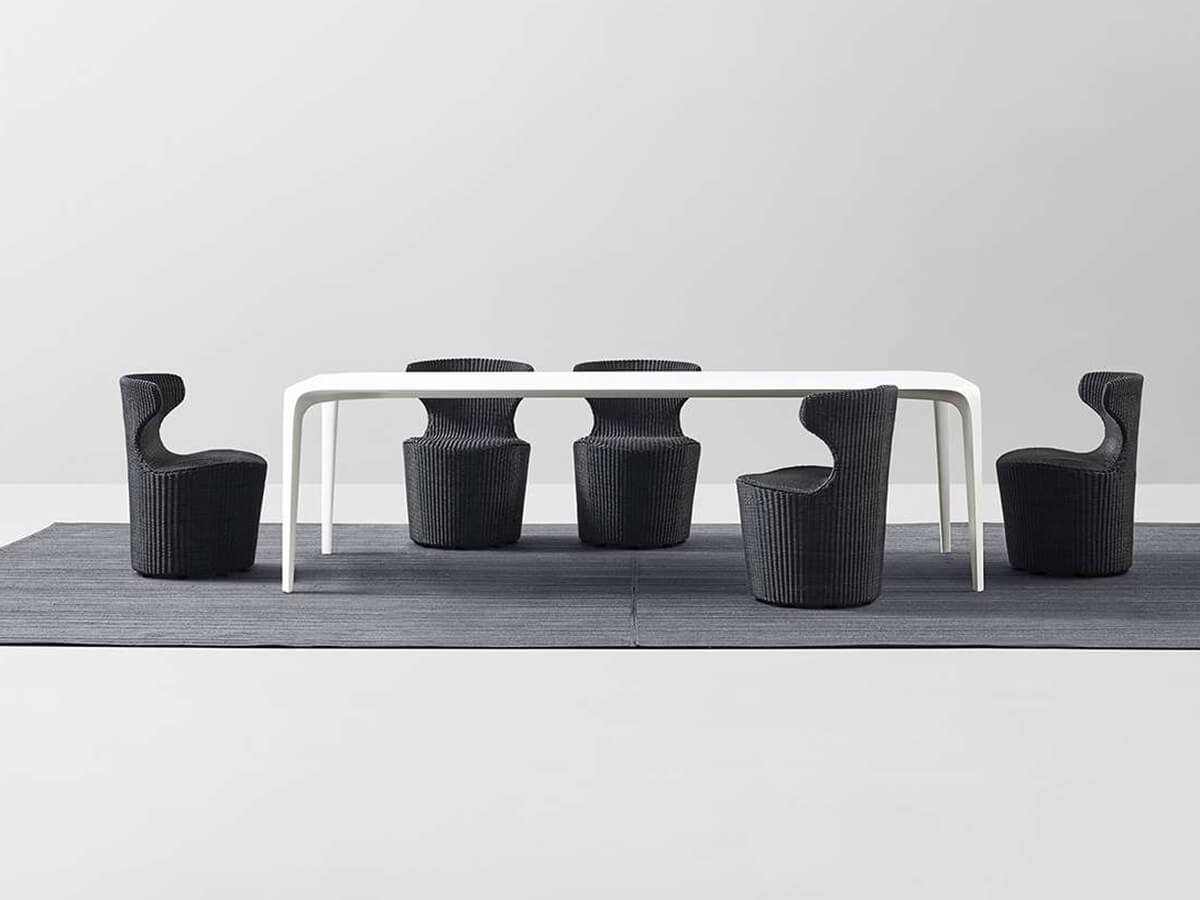 Il tavolo Link spicca nelle numerose proposte outdoor di B&B Italia per la sua struttura pulita ed elegante, priva di qualsiasi giunto ma plasmata in un’unica linea continua e di estrema morbidezza. La sensualità di Link lo colloca bene fra le numerose proposte per l’esterno del marchio, spiccando fra assortimenti per giardini, terrazze e spazi aperti nelle sue numerose colorazioni e finiture scelte. Link è realizzato in un unico stampo e non prevede l’utilizzo di agganci e giunture. La mescola in Cristalplant® di cui è costituito ne garantisce la durabilità anche in situazione di forte impatto ambientale. *Caratteristiche tecniche: la struttura ed il piano sono sempre in Cristalplant Outdoor Bianco