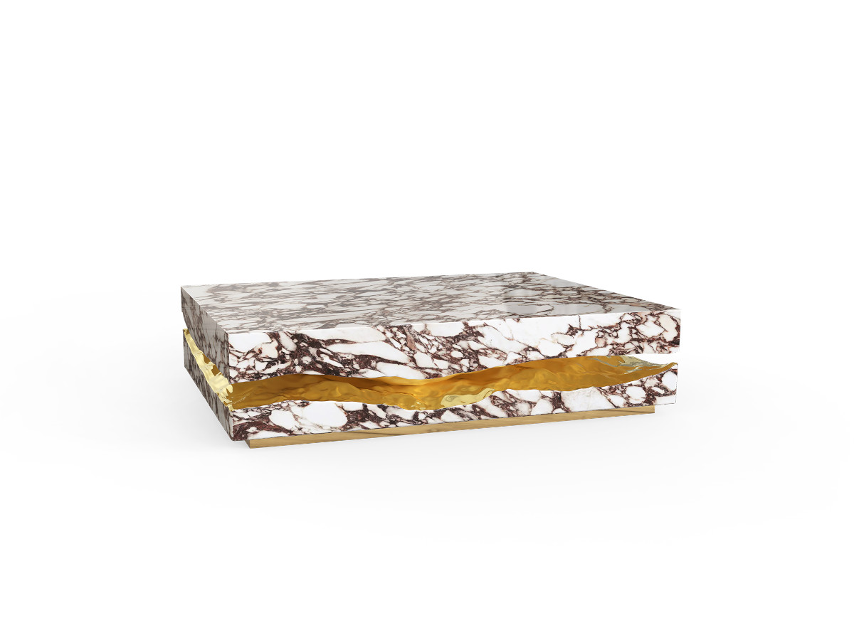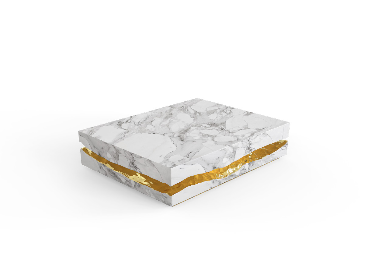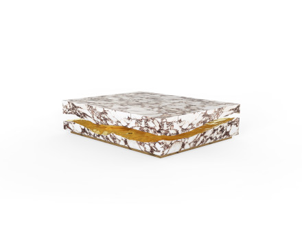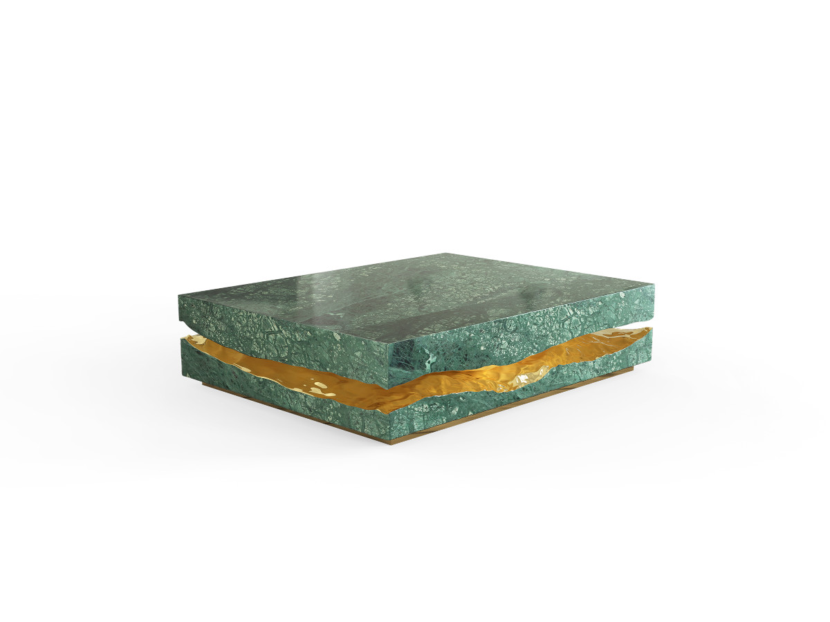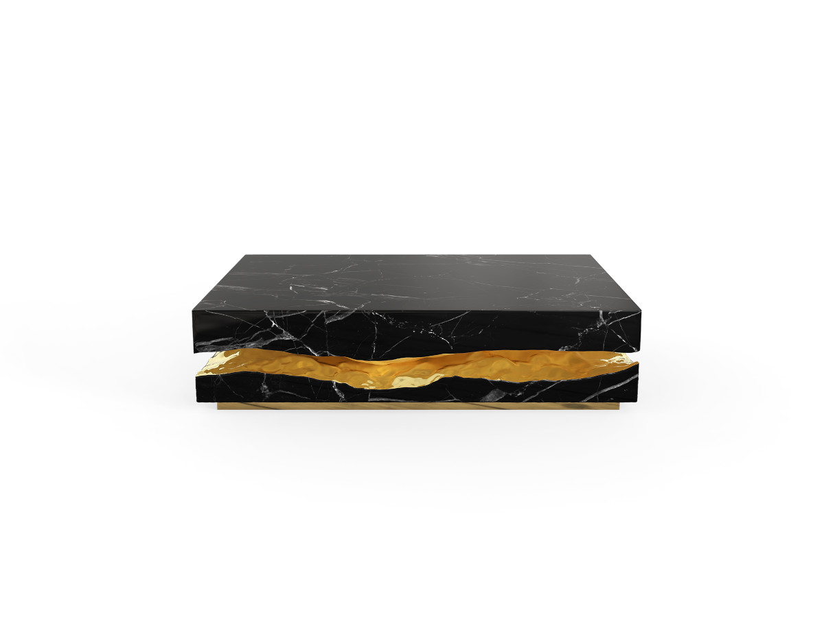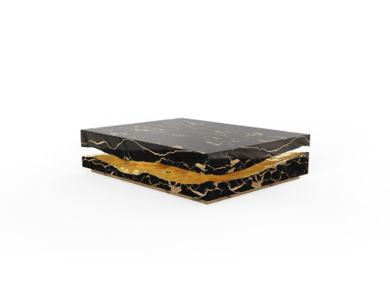 Un tavolino il cui design riporta un forte senso di materialità e autenticità. Uno spaccato di nuda pietra racchiude una vena d’oro fuso, scintillante e ricca, e con essa crea un piano d’appoggio che ben si colloca in spazi eleganti e raffinati, zone lounge e salotti di ampie levature. Quarry mira a raccontare l’eleganza organica, prendendo come materiale di riferimento il marmo la cui superficie mostra venature naturali uniche, impossibili da replicare. La struttura interna aggiunge una nota di armonia creando un contrasto con l’esterno. Grezzo e levigato. Naturale e artefatto. Insieme, le due metà offrono uno spunto sensoriale ed estetico di estremo livello.