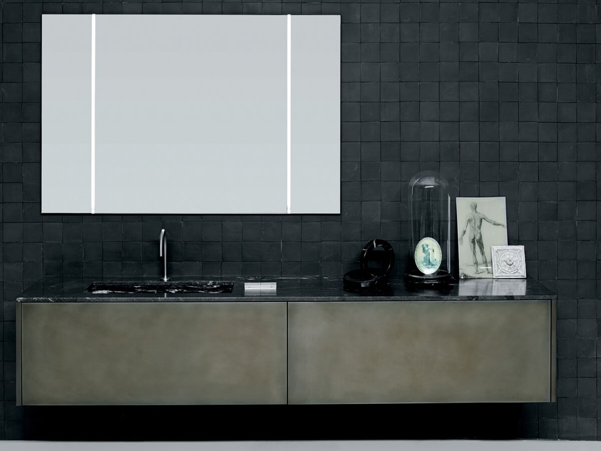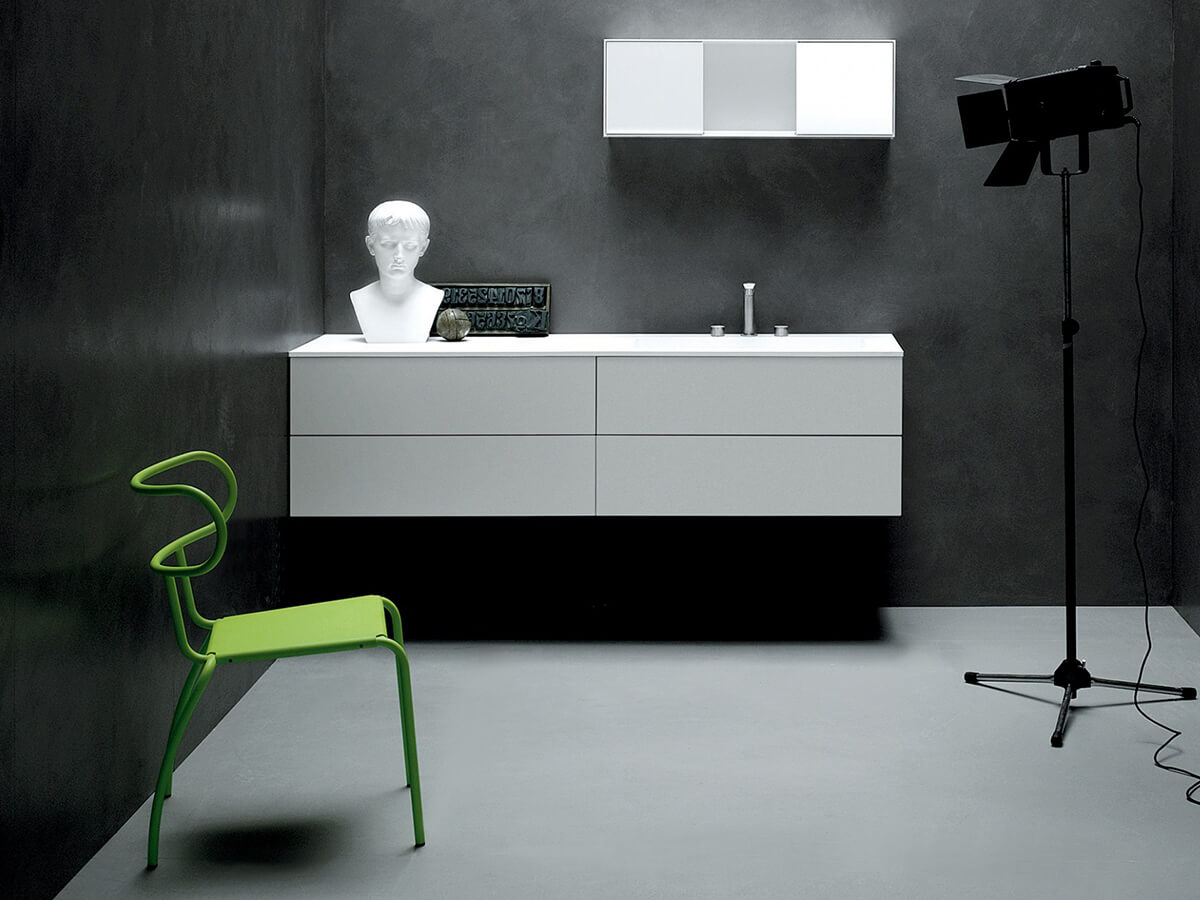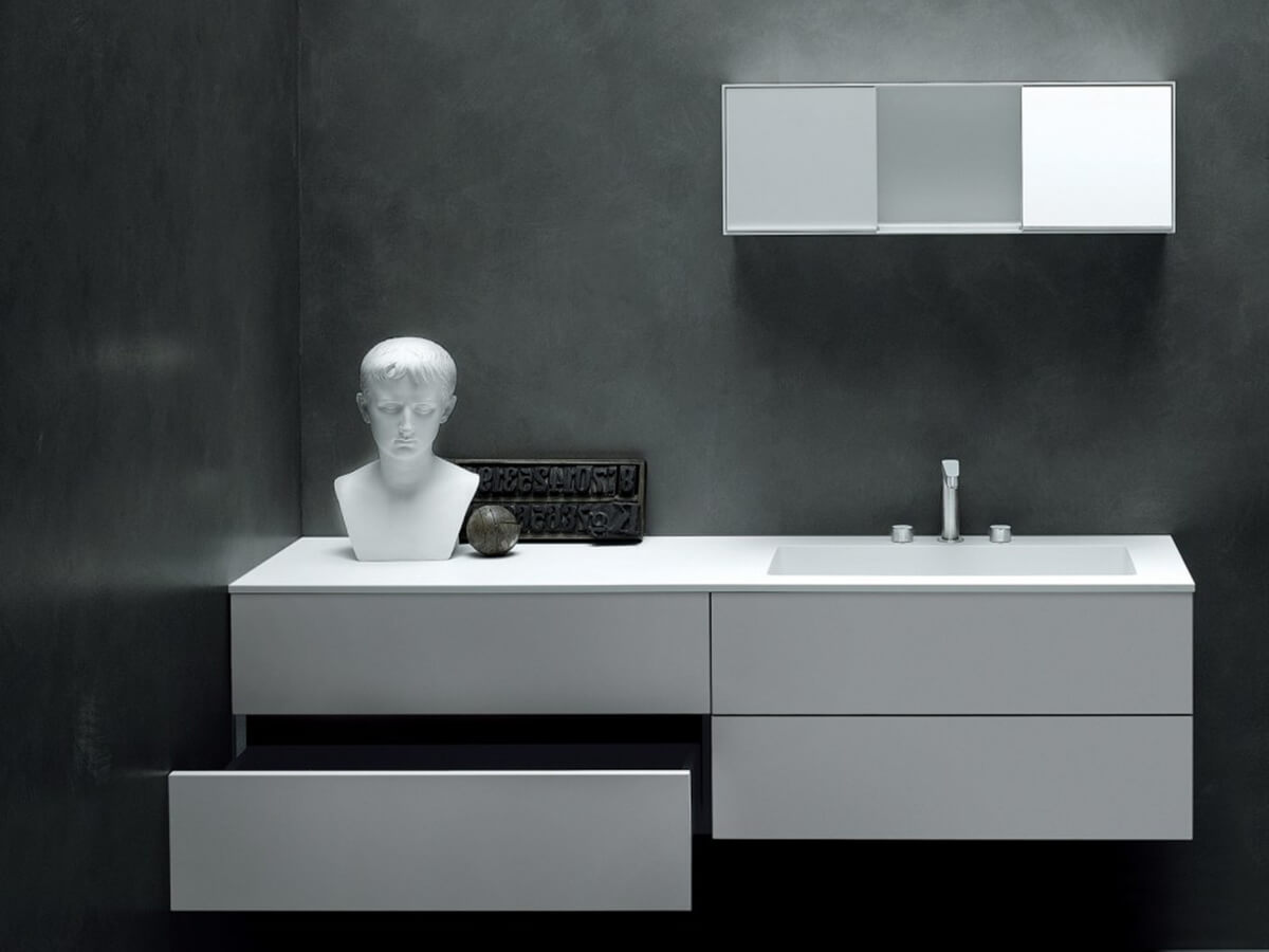 Come suggerisce il nome stesso, il mobile bagno Simple di Boffi fa del suo punto di forza l’estrema pulizia formale e la riduzione all’essenziale di ogni orpello decorativo. Uno stile reso celebre nel mondo dal suo progettista, Piero Lissoni, rinomato maestro di un’impeccabile “minimalismo all’italiana” che non vuol rinunciare a grazia ed eleganza. Le basi sono totalmente prive di maniglie, preservando la purezza della forma, e l’apertura di cassetti e frontali è garantita dal pratico sistema a pressione tip-on. La collezione Simple dispone di una vasta modularità e può andare a comporre sia colonne contenitive racchiuse da ante battenti sia basi di differenti proporzioni, attrezzabili con lavabi soprapiano, a filo oppure incassati.