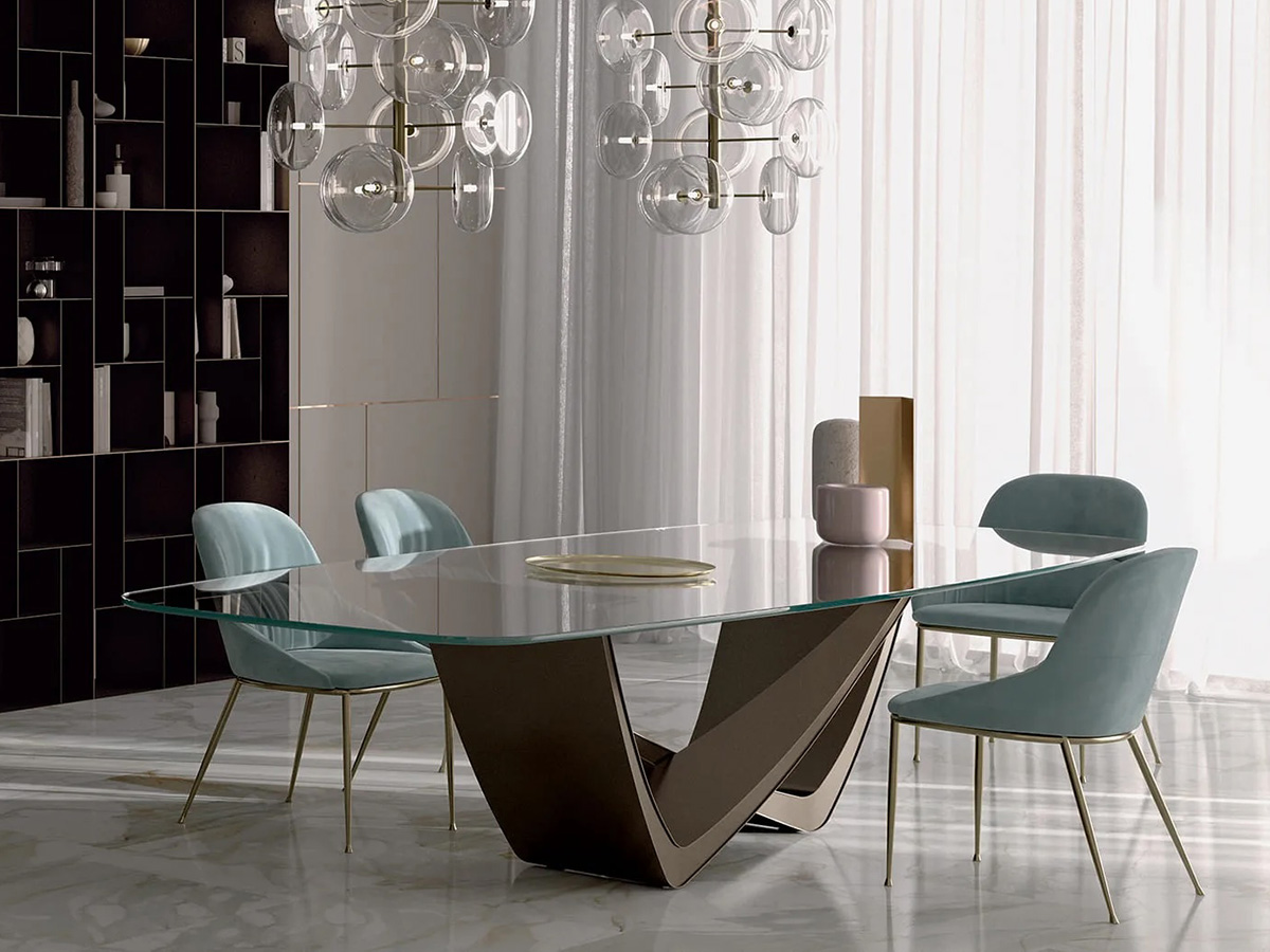 *Prezzo valido per la versione con piano a botte in L.200 x P.116 cm in cristallo trasparente fumé - base in acciaio laccato (cod. 53.75).