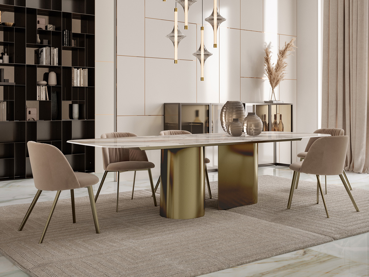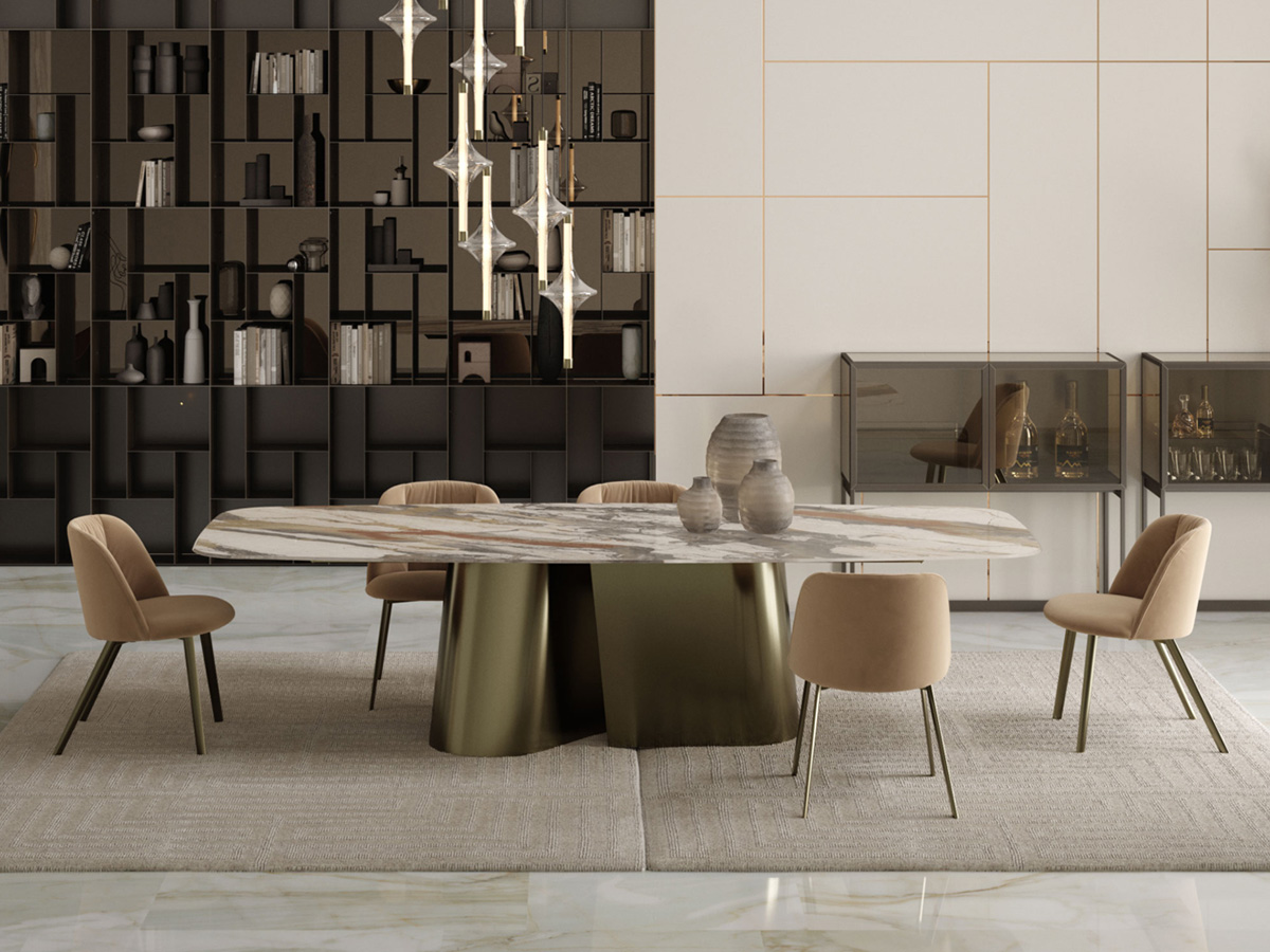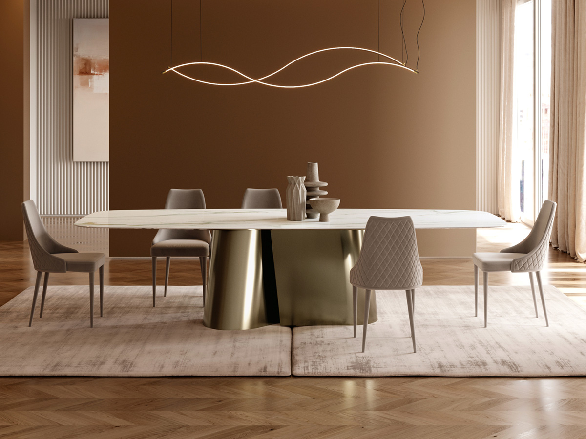Kimono è un tavolo pensato e progettato per l’ambiente living, un elemento ideale per pranzi e cene, ma anche riunioni o più semplicemente attimi da passare in compagnia. Per la sua funzione, Bontempi l’ha pensato in diverse dimensioni e finiture, creando ogni volta la scelta ottimale. Kimono può presentarsi sia in versione rettangolare che a botte, entrambi opzionabili in formato fisso o allungabile. La struttura è in acciaio laccato, solida a sufficienza da ospitare i piani sovrastanti, disponibili in diversi materiali. Bontempi presenta Kimono con piani in legno, cristallo, SuperMarmo e SuperCeramica, finiture indispensabili per adattarsi a contesti ed esigenze particolarmente diversi fra loro.