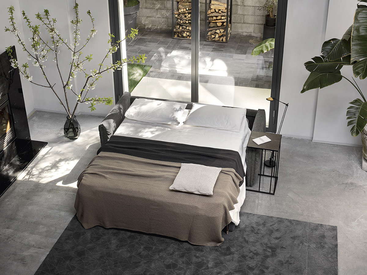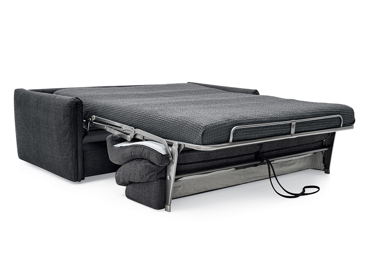 Un elemento di grande utilità e polivalenza funzionale. Il divano letto Darwin di Calligaris riprende i temi del divano Landa dell’azienda, riproponendo il cuscino ripiegato su sé stesso. Le dimensioni tutto sommato contenute di questo elemento d’arredo lo rendono facilmente collocabile negli ambienti anche più ridotti, dove sia necessario improvvisare uno spazio di riposo per gli ospiti. È dotato di un sistema semiautomatico per aprire e chiudere, ulteriormente migliorato dalla presenza di una fascia in tinta con il rivestimento e nascosta nello schienale.