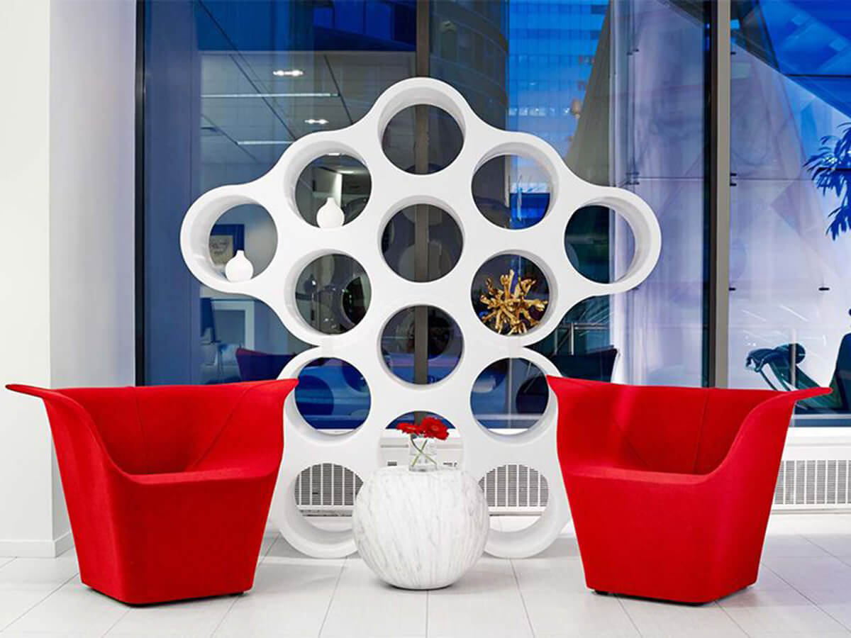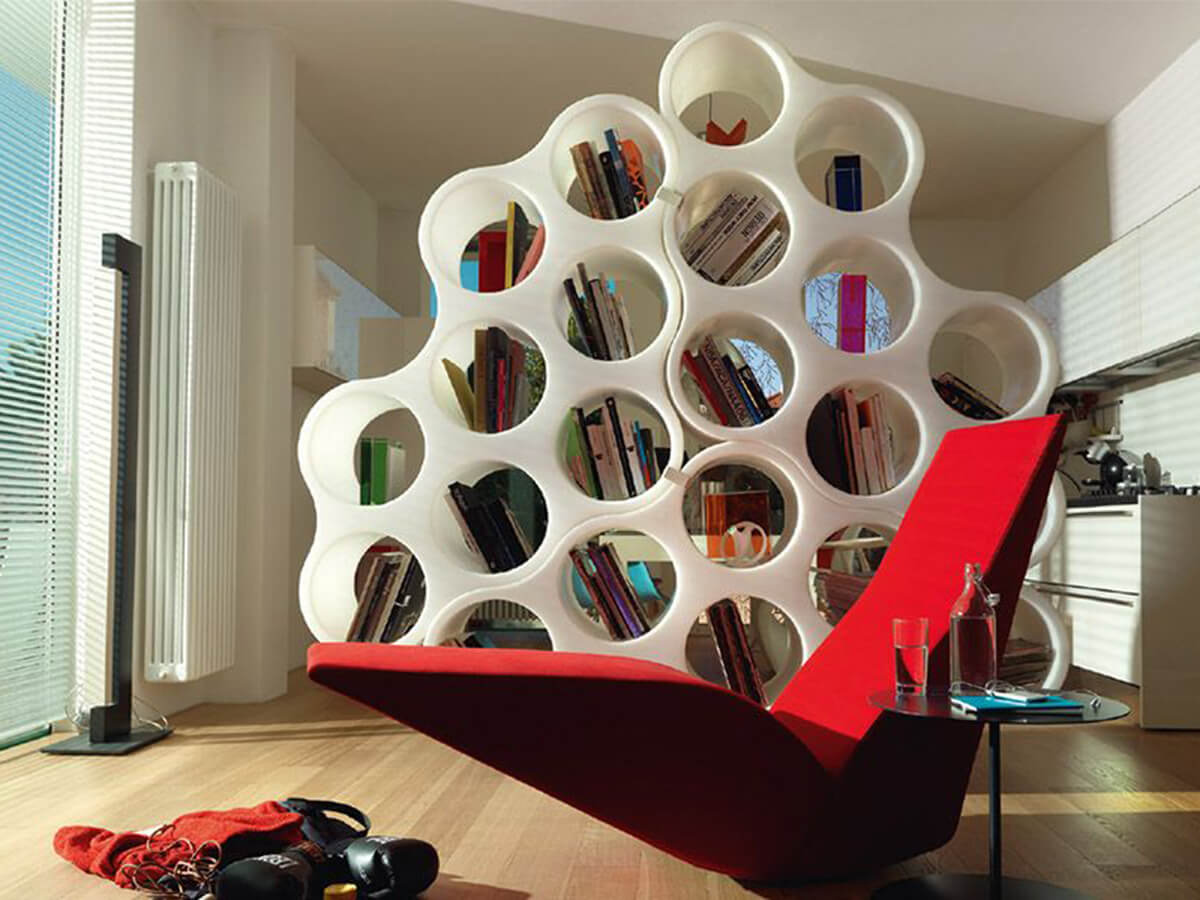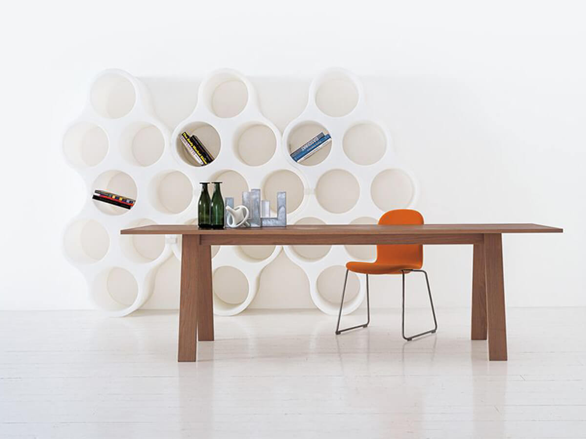 Iconica e stravagante, la libreria Cloud di Cappellini porta la firma di due dei più celebri designer francesi contemporanei, i fratelli Ronan & Erwan Bouroullec. Le sue forme morbide e arrotondate ricordano quelle di una nuvola e permettono un sistema di aggancio creativo dei diversi moduli, tenuti insieme da clip a pressione, che dà vita a fantasiose composizioni “ad alveare” sempre diverse l’una dall’altra. Cloud è una libreria bifacciale costellata di ampi vani circolari e può essere posizionata sia a ridosso della parete che a centro stanza con funzione di divisorio. È realizzata con la tecnologia dello stampaggio rotazionale in polietilene bianco, materiale che la rende adatta anche all’uso in ambienti esterni.Caratteristiche tecniche: libreria modulare bifacciale – moduli aggregabili tramite clips