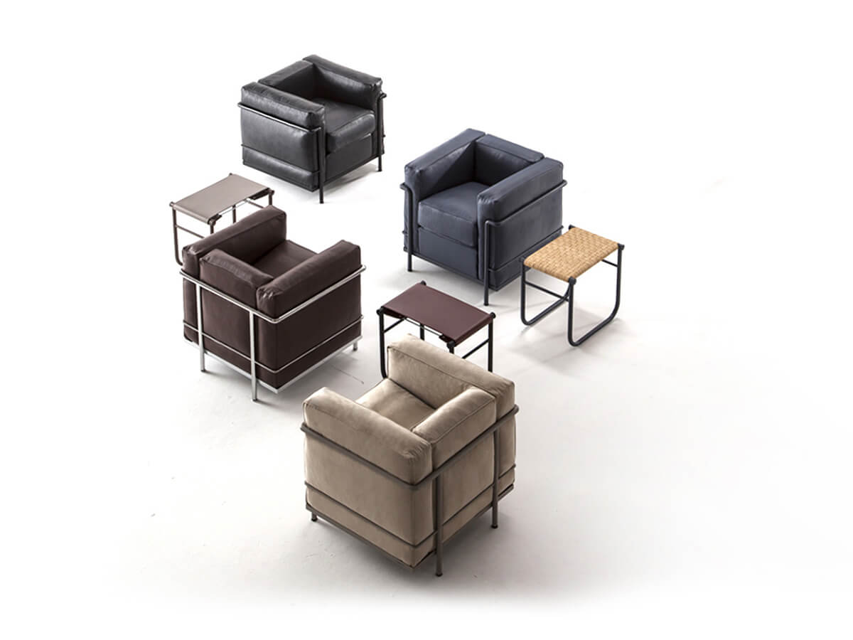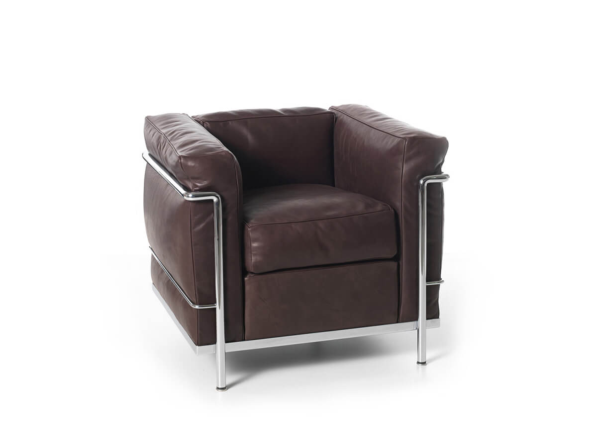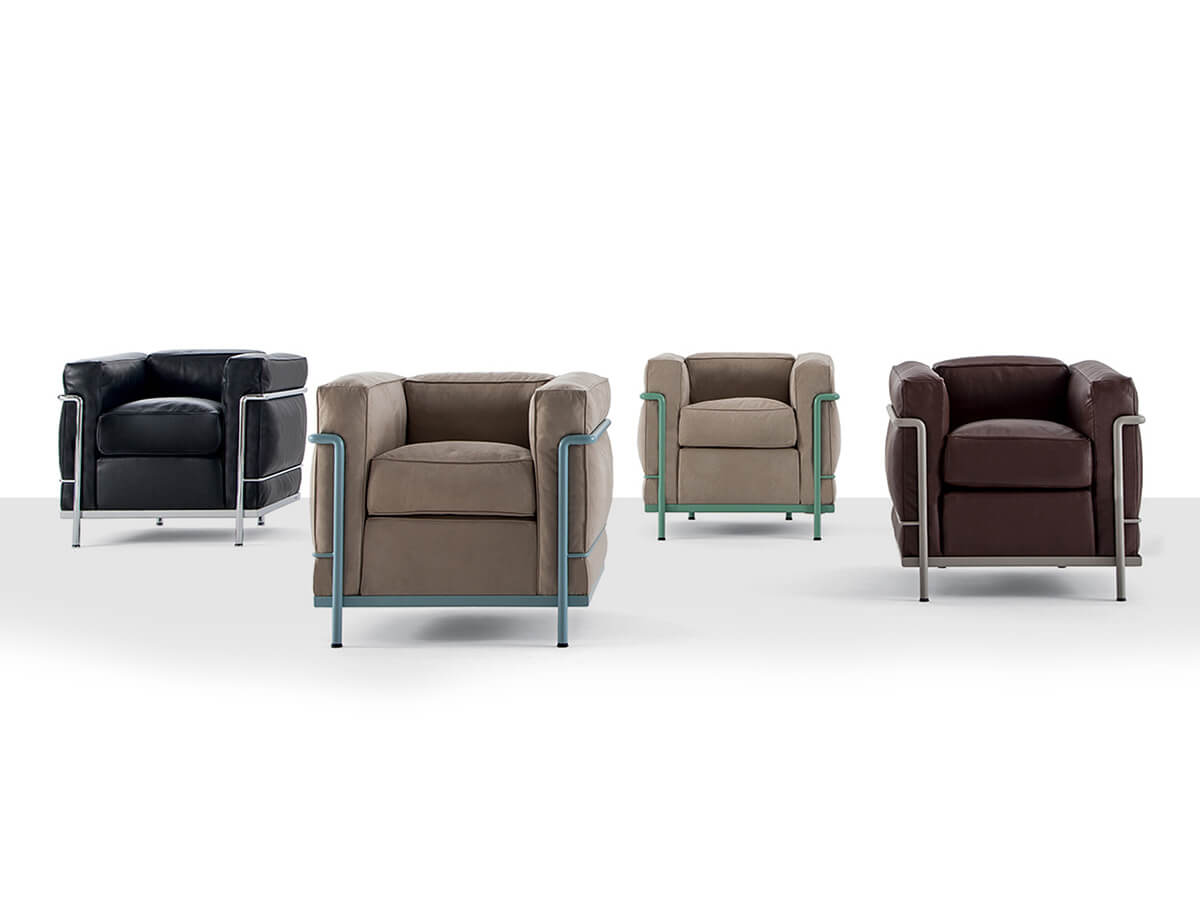 Disegnata nel 1928 ed esposta al Salon d’Automne a Parigi nel 1929, la poltrona 2 Fauteuil Grand Confort Petit Modèle rappresenta l’archetipo della poltrona in quella concezione di arredi intesi come “attrezzature domestiche”. Rieditata da Cassina e prodotta in esclusiva a partire dal 1964, la poltrona 2 Fauteuil Grand Confort Petit Modèle esprime la logica del razionalismo, così come la logica della produzione industriale. L’equilibrio tra forma e funzione nasce qui da uno studio approfondito di Le Corbusier, Pierre Jeannaret e Charlotte Perriand sulla postura del corpo e linguaggio matematico connesso alle proporzioni dell’armonia universale. Un oggetto senza tempo, capace di resistere alle mode per attestarsi ancora oggi un must degli ambienti più ricercati e distintivi.