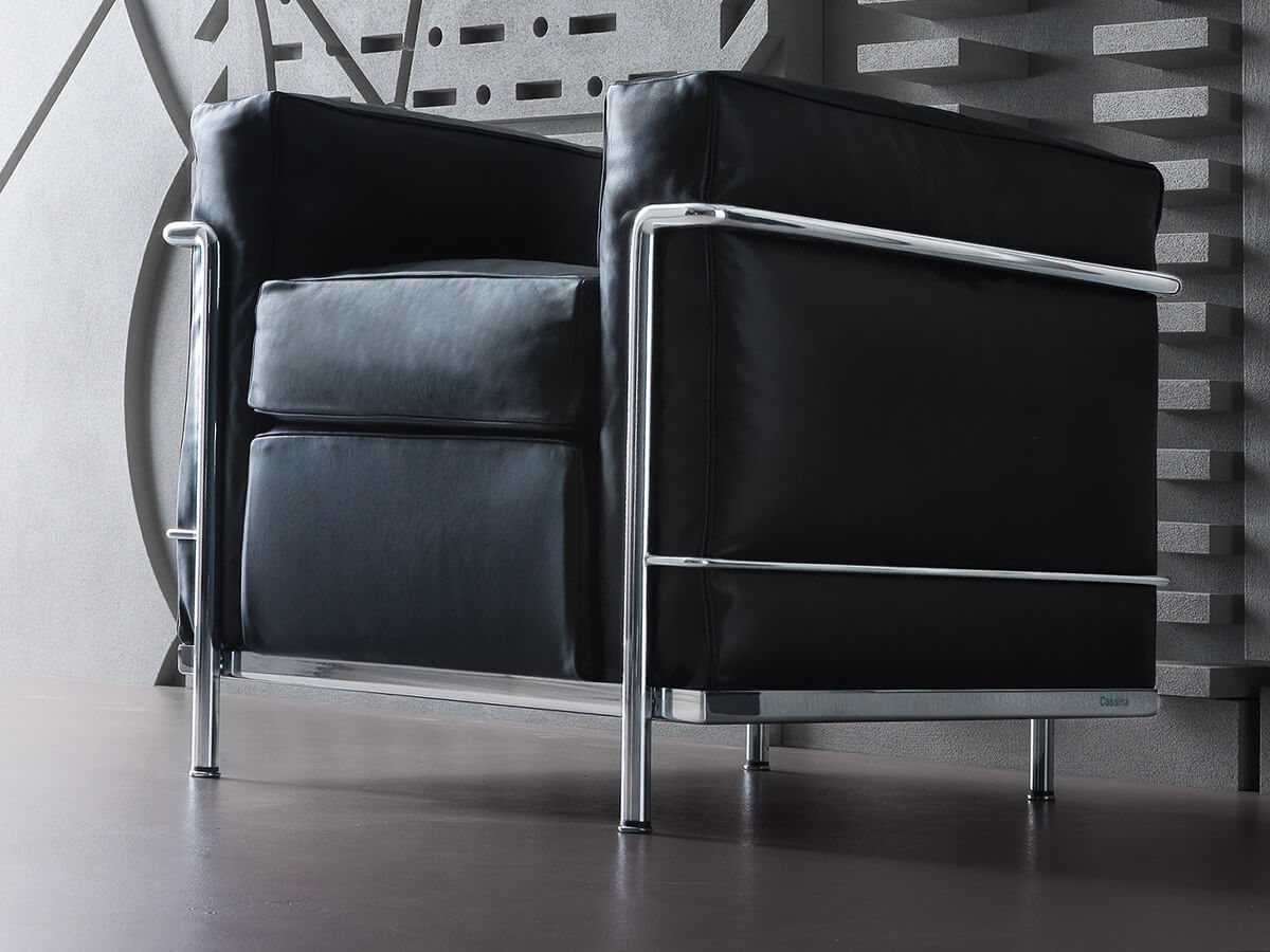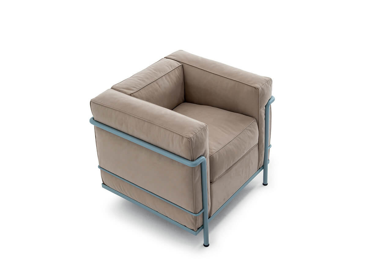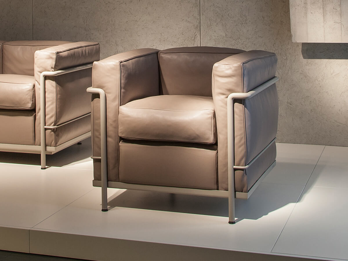 Disegnata nel 1928 ed esposta al Salon d’Automne a Parigi nel 1929, la poltrona 2 Fauteuil Grand Confort Petit Modèle rappresenta l’archetipo della poltrona in quella concezione di arredi intesi come “attrezzature domestiche”. Rieditata da Cassina e prodotta in esclusiva a partire dal 1964, la poltrona 2 Fauteuil Grand Confort Petit Modèle esprime la logica del razionalismo, così come la logica della produzione industriale. L’equilibrio tra forma e funzione nasce qui da uno studio approfondito di Le Corbusier, Pierre Jeannaret e Charlotte Perriand sulla postura del corpo e linguaggio matematico connesso alle proporzioni dell’armonia universale. Un oggetto senza tempo, capace di resistere alle mode per attestarsi ancora oggi un must degli ambienti più ricercati e distintivi.
