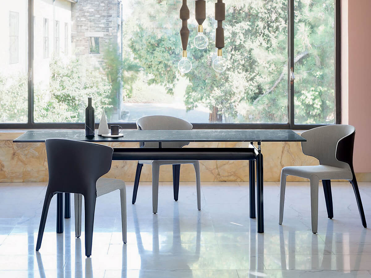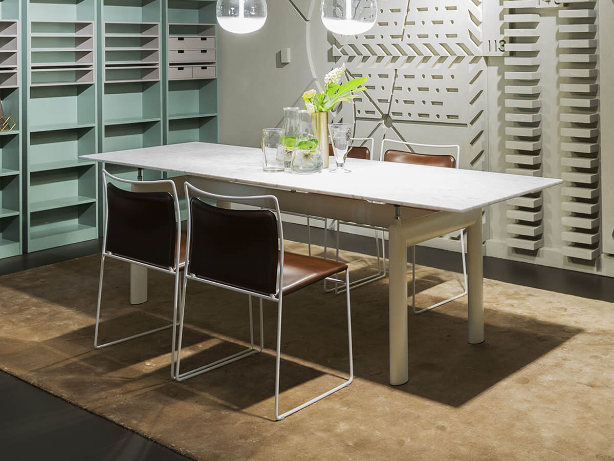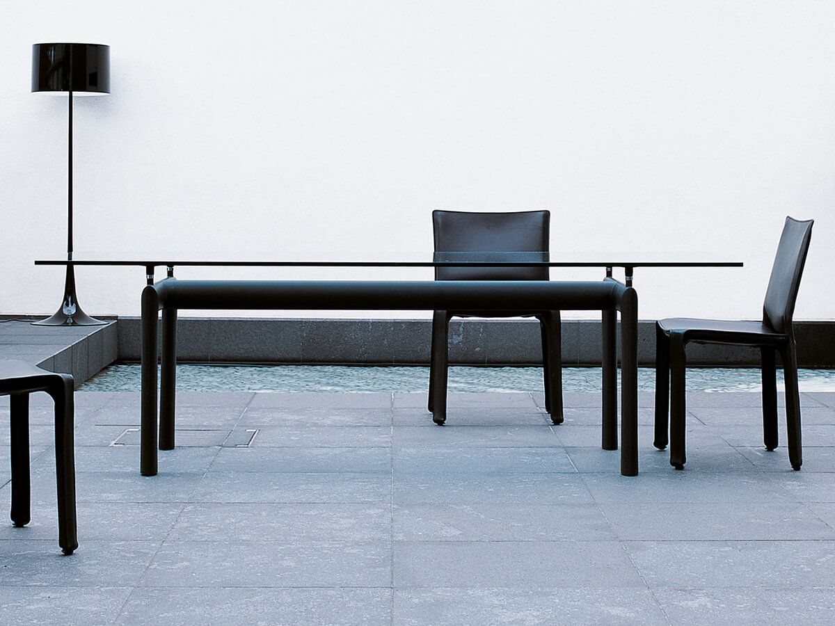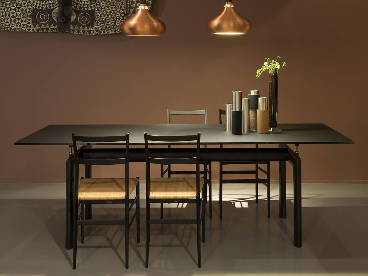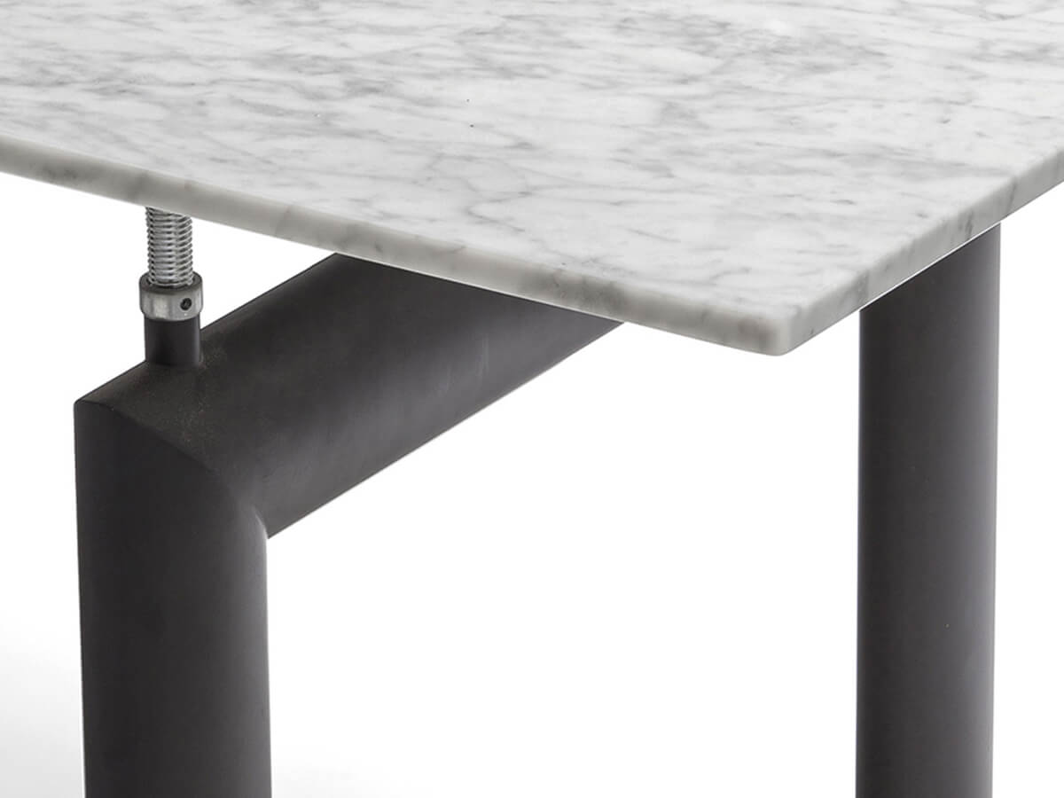Il Tavolo 6 Table Tube d’Avion fa parte della collezione I Maestri, e deve la sua nascita al trio di designer formato da Le Corbusier, Pierre Jeannaret e Charlotte Perriand. L’idea alla base di questo modello presentato nel 1929 al Salon D’Automne risiede nella distinzione tra elemento portante ed elemento portato, ossia tra le parti che compongono il basamento e il piano. L’autonomia delle due parti si evidenzia nei quattro sostegni intermedi che fungono tanto da regolatori quanto da distanziatori fra il supporto e le linee del piano. Nota di pregio: il basamento fu disegnato nel 1928 facendo riferimento ai profili ovoidali utilizzati nel settore aereonautico per separare le ali dei biplani.