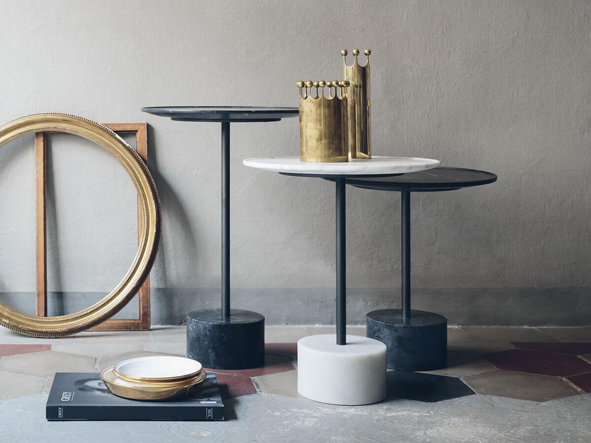 *Prezzo valido per la versione bassa con piano in alluminio e vetro colore rosso mattone in ø 70 x H.28 cm con stelo in finitura antracite – base in marmo bianco carrara (cod. 194 VM 31).