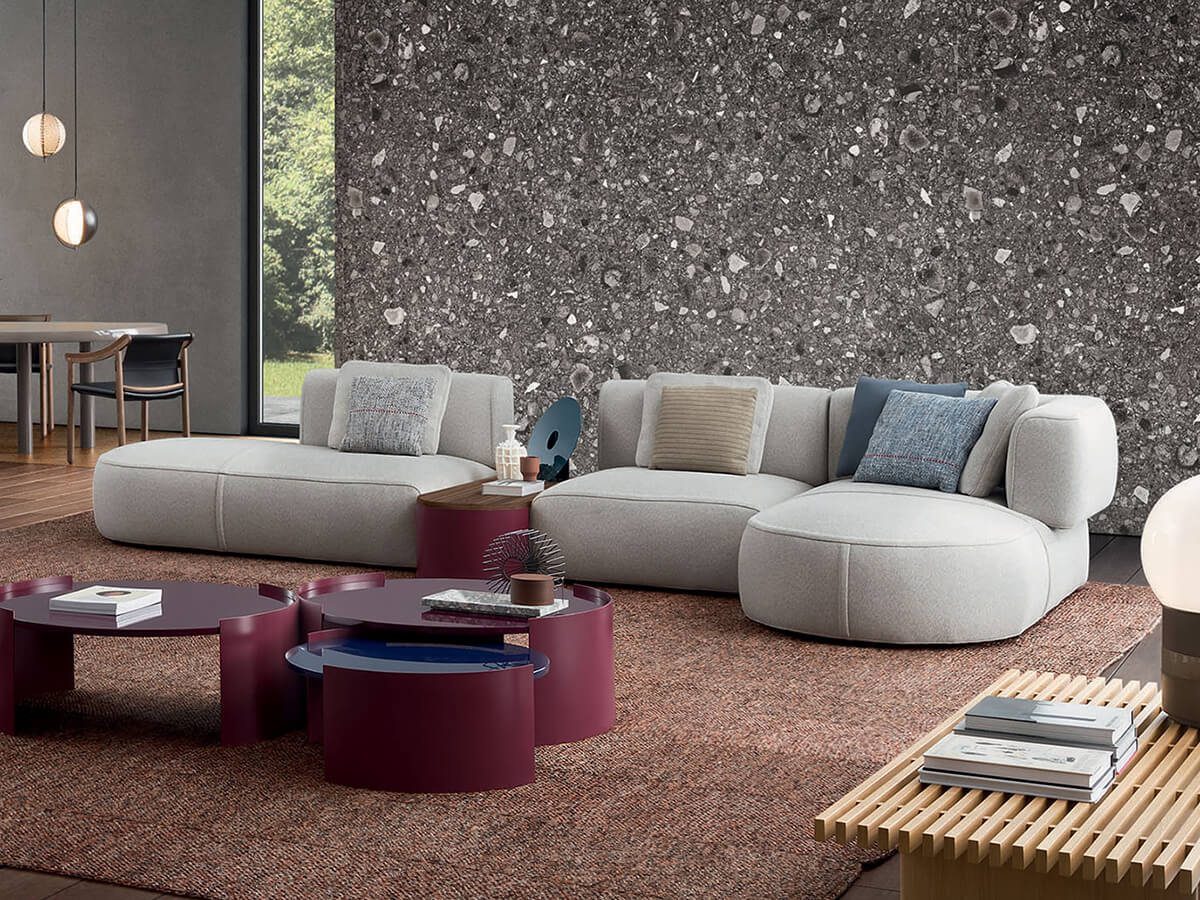 Il divano Bowy disegnato da Patricia Urquiola per Cassina presenta un design di ispirazione fortemente anni ’70, con forme morbide e tondeggianti capaci di delineare un profilo di leggerezza e solida combinabilità. L’idea alla base della sua struttura è che ogni modulo funzioni come una piccola scultura da utilizzare anche separatamente. Tanti i dettagli disponibili, come le cuciture imbottite, i braccioli tondeggianti e gli schienali sporgenti. L’ispirazione anni ’70 si ritrova anche nella proposta associata di tavolini, progettati come elementi sovrapponibili e intersecabili all’imbottito, capaci di rompere lo schema della seduta o di vivere singolarmente nello spazio in quanto elementi singoli. Un considerevole catalogo di tessuti e finiture arricchisce in ultimo l’offerta del divano Bowy, garantendo una personalizzazione senza eguali.